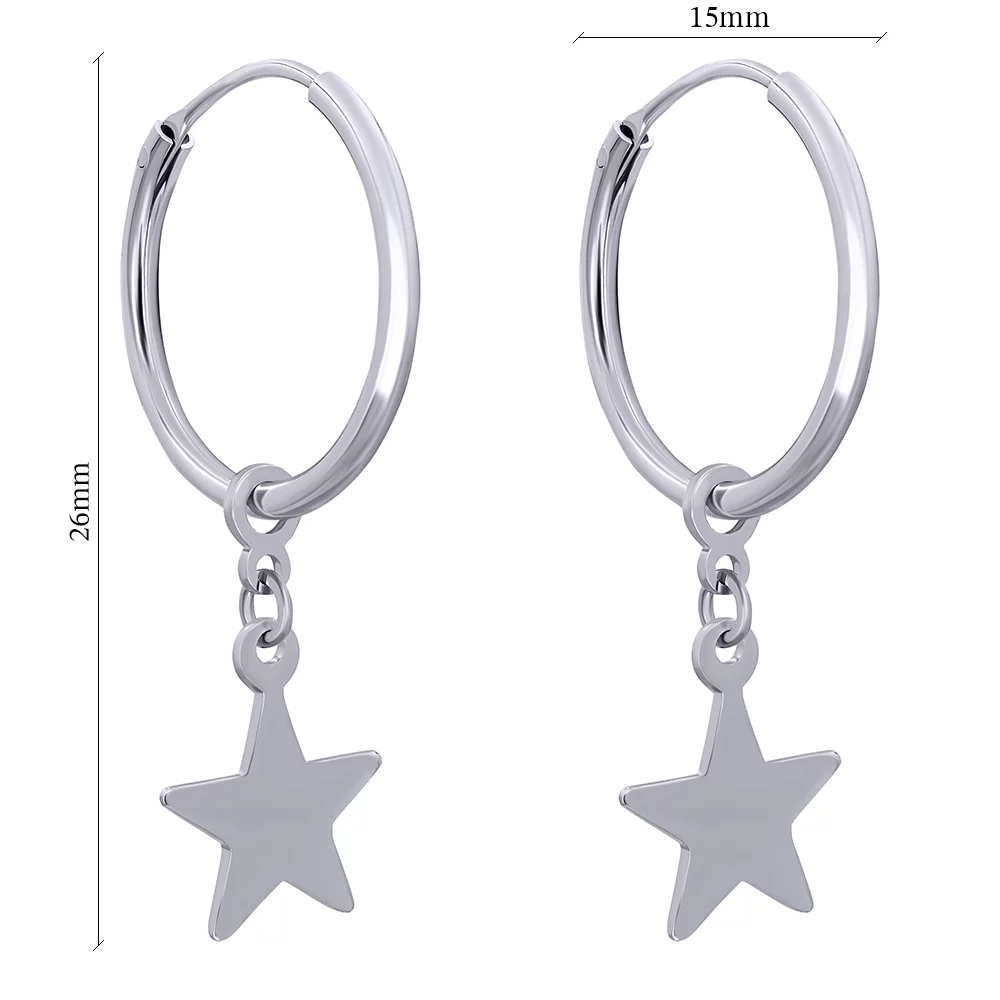 Сережки-кольца серебряные с подвесками "Звезды" - 886242