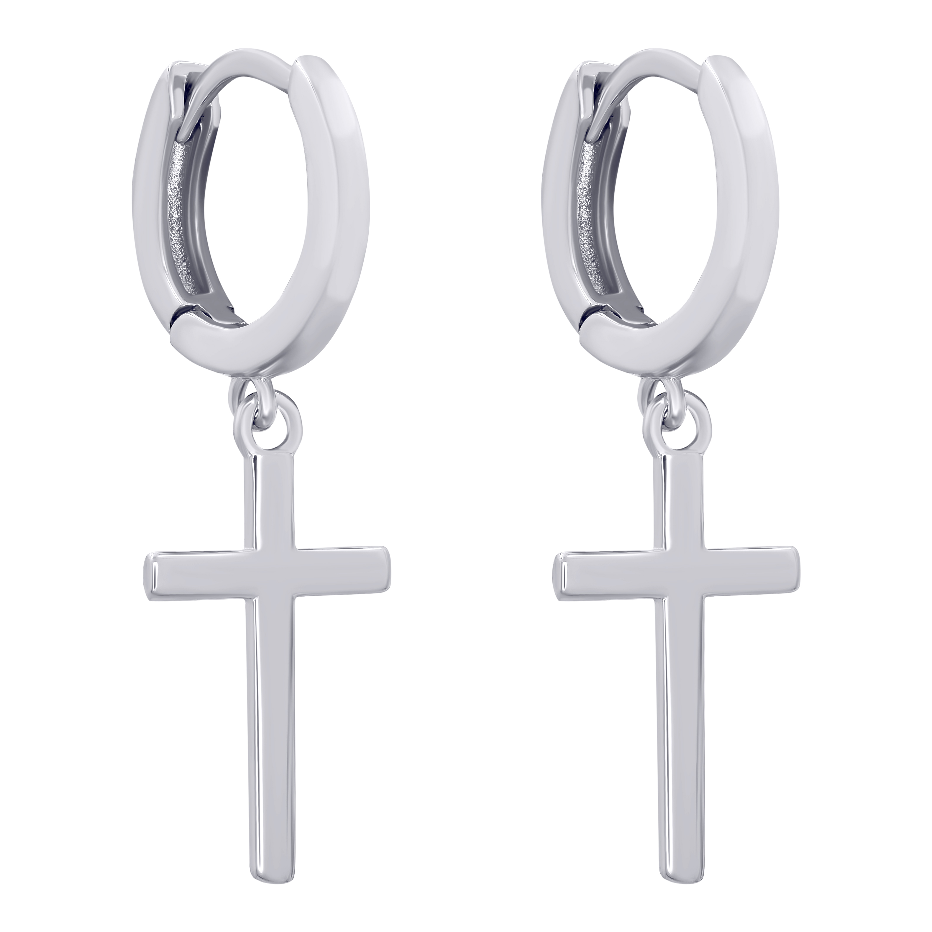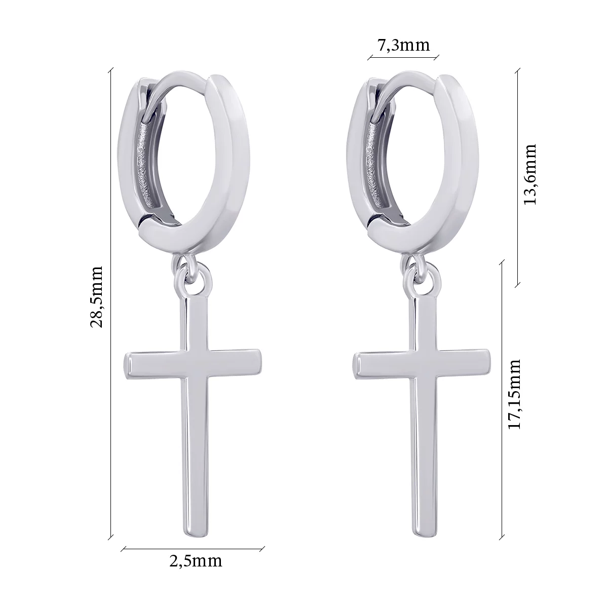 Сережки-кольца серебряные с подвесными крестиками - 896666