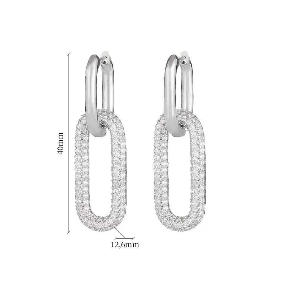 Сережки-кольца серебряные с фианитом - 973339