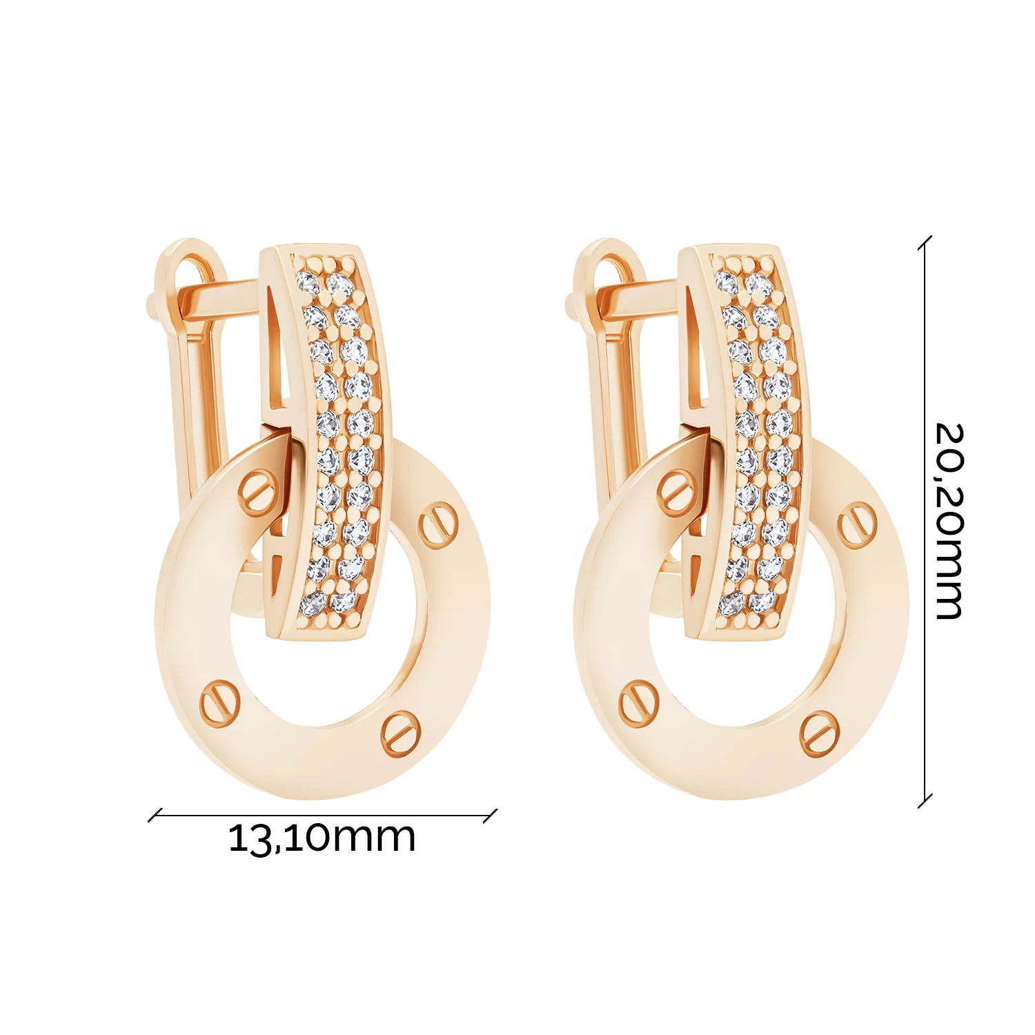 Сережки с подвесками "Гвоздь" из красного золота с фианитами - 1612881