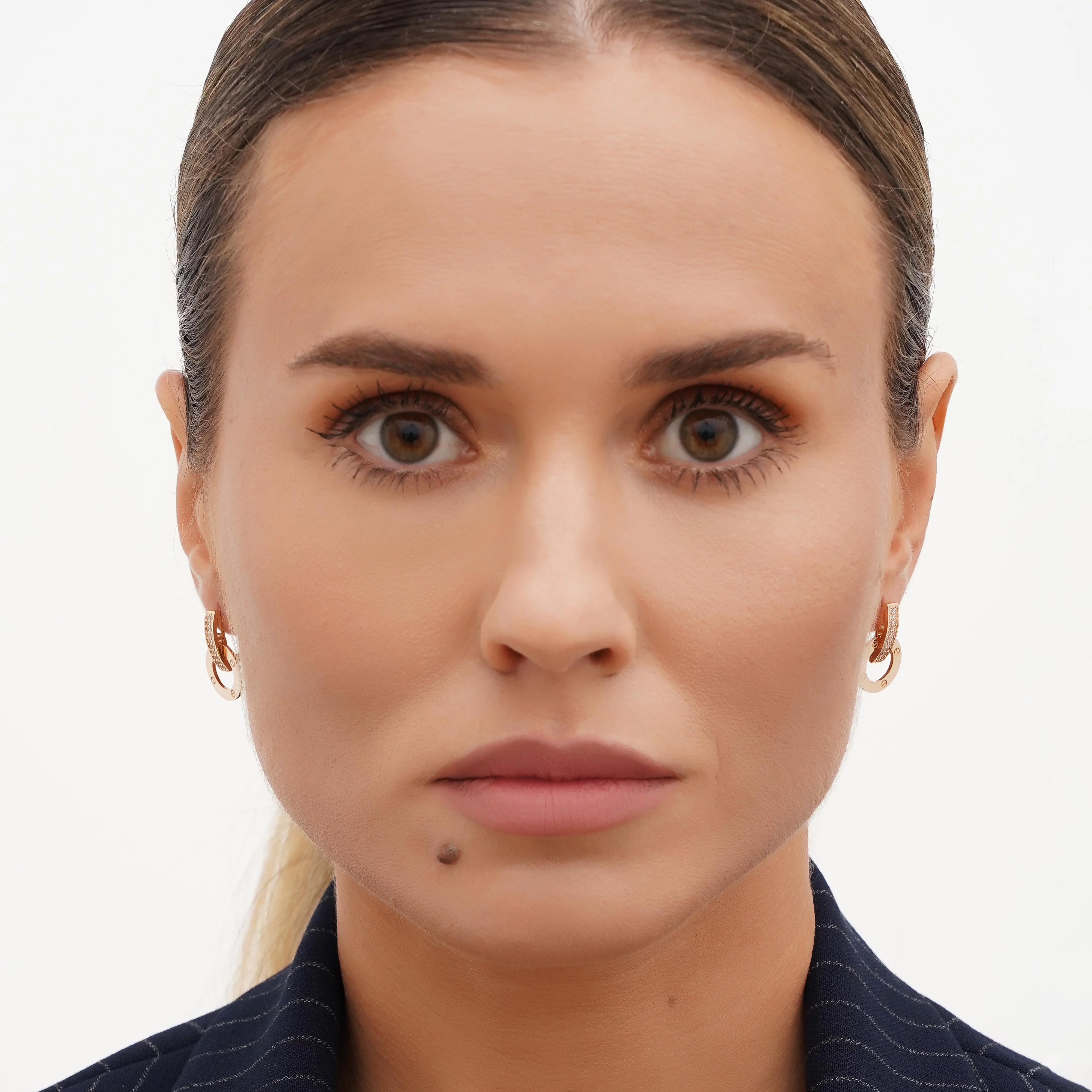 Сережки-кольца из красного золота с подвесами "Пантера" с фианитом - 1476753
