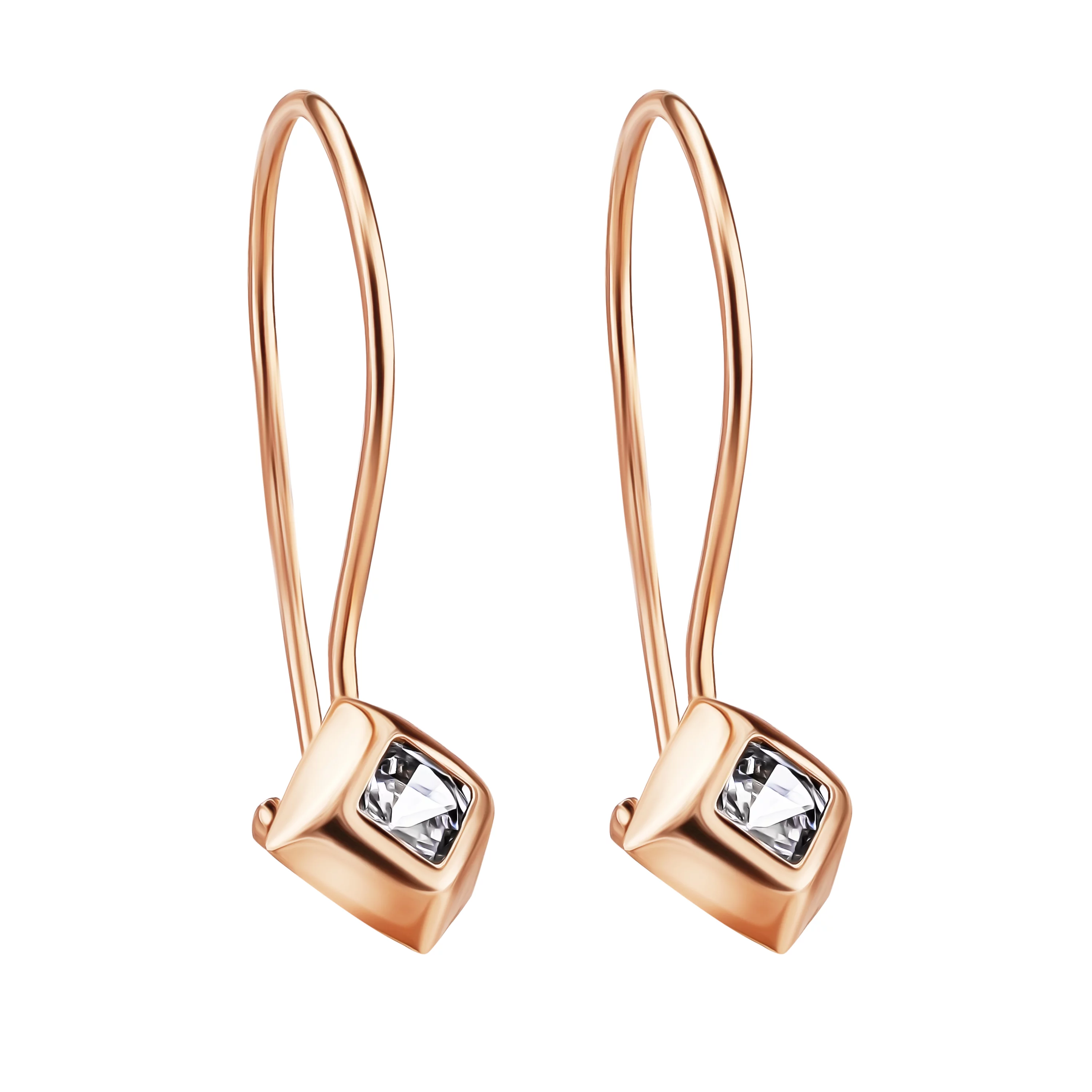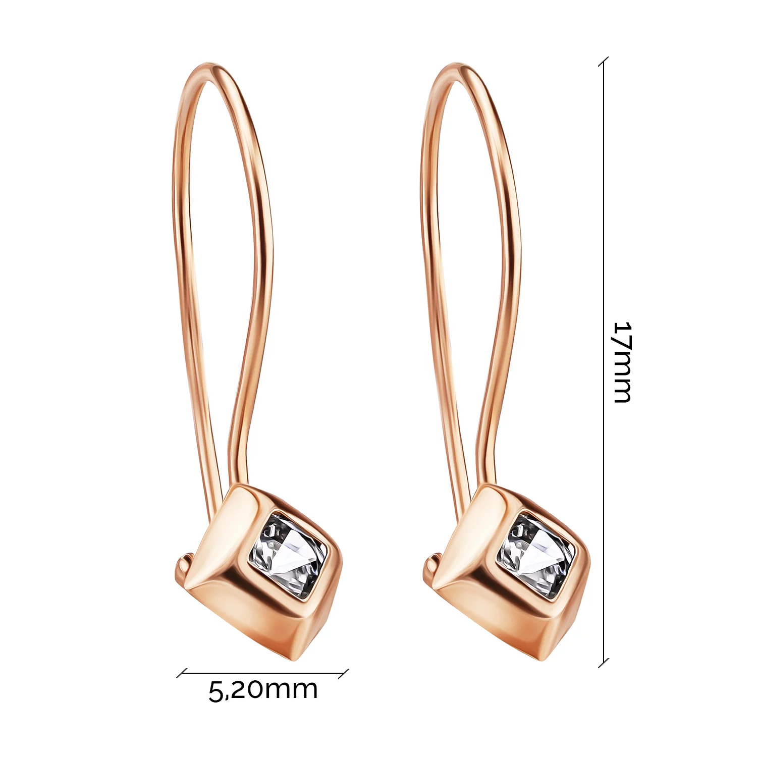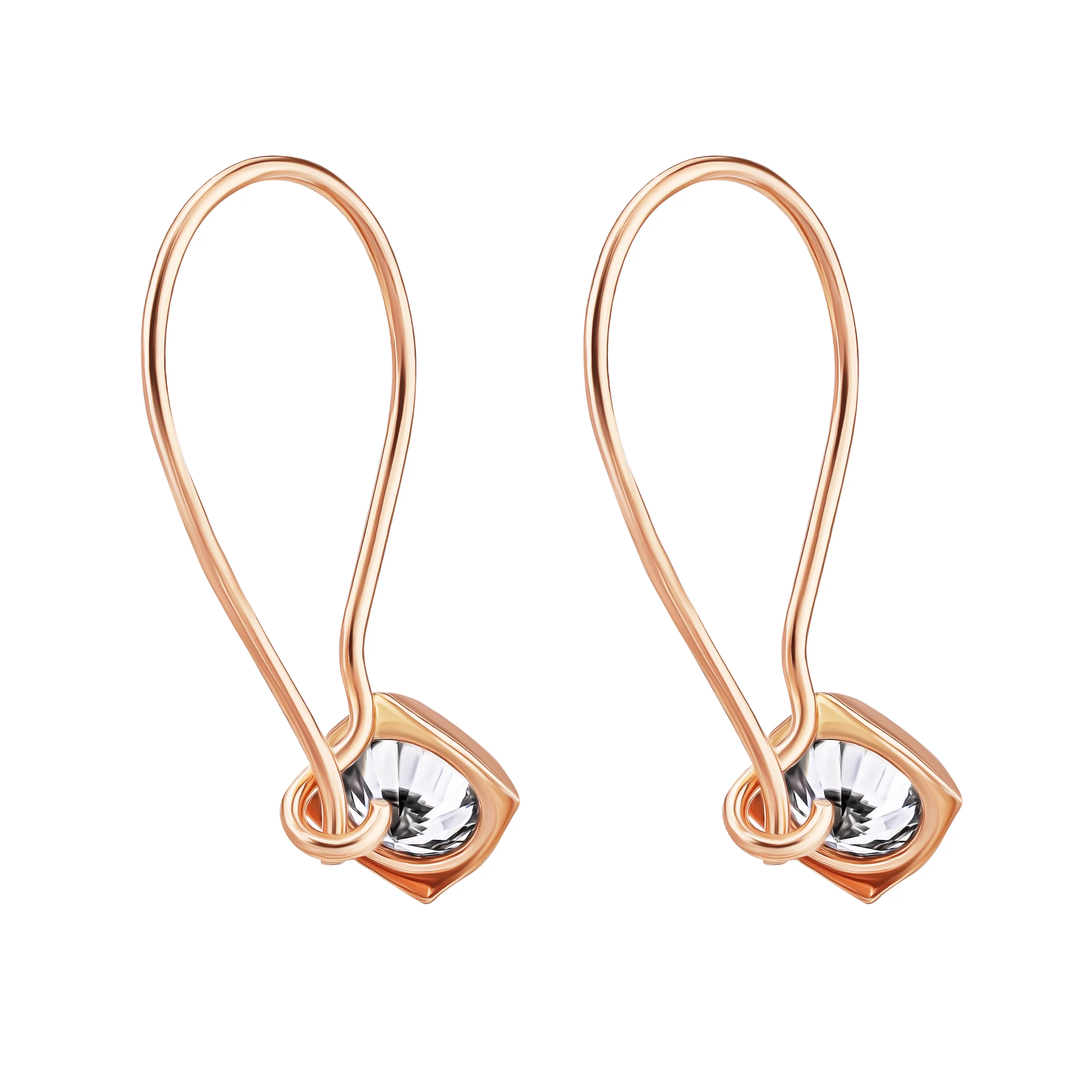Сережки-петли детские из красного золота с фианитами "Сердечки" - 1273839