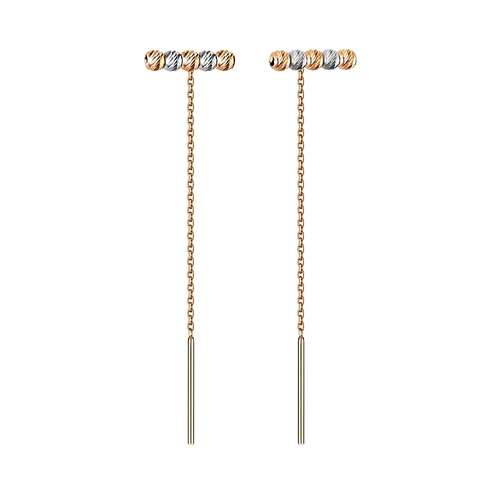 Сережки-протяжки из комбинированого золота "Шарики" - 967239