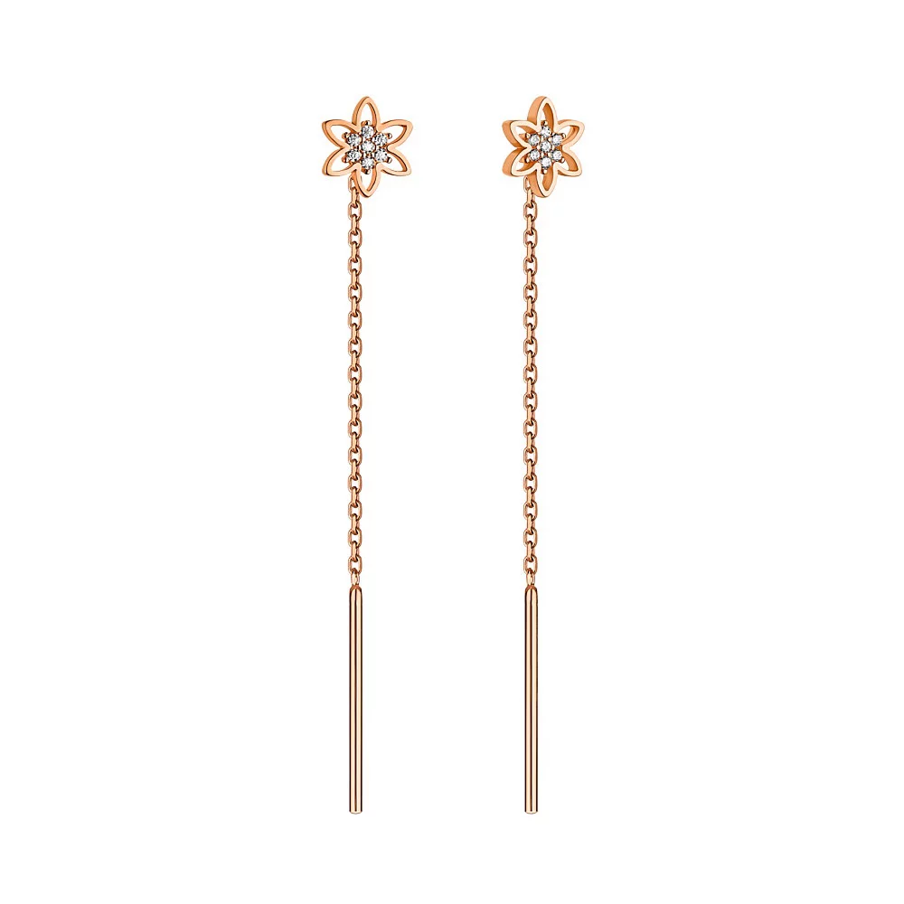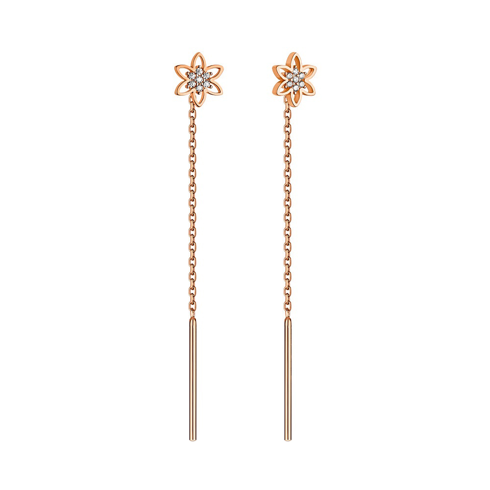 Сережки-протяжки из красного золота с фианитом "Цветочек" - 969907