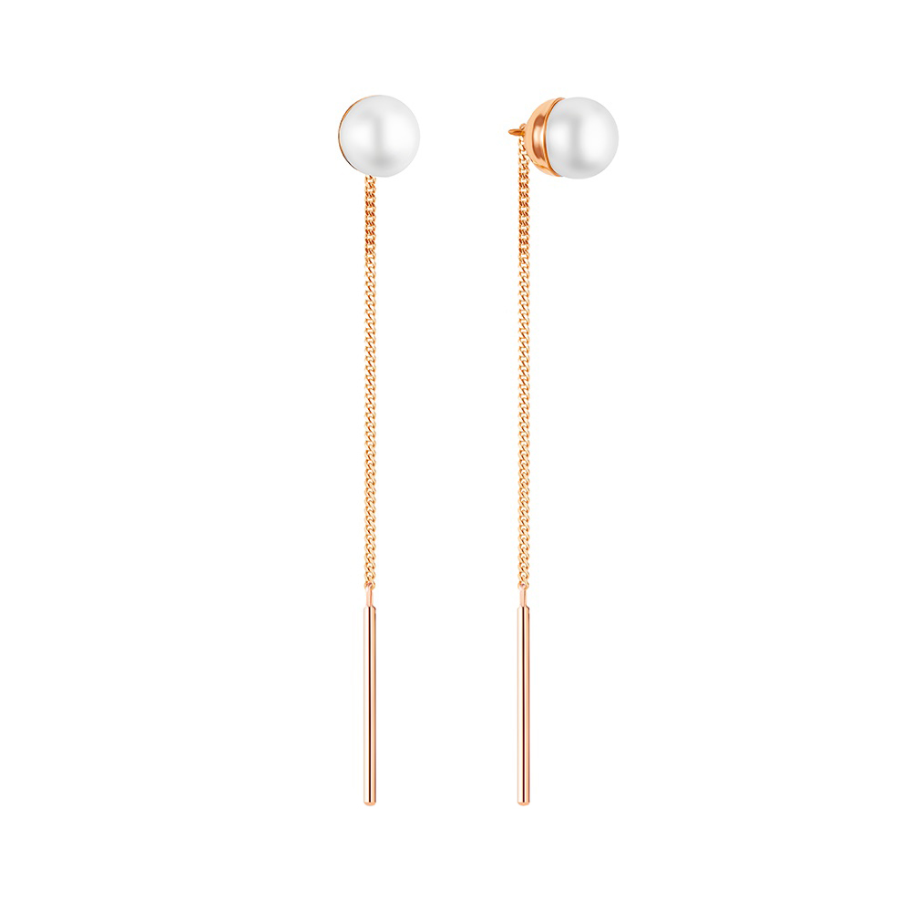 Сережки-протяжки из красного золота с жемчугом - 964205