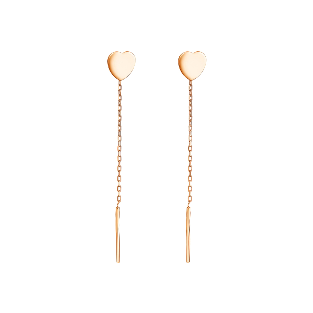 Сережки-протяжки из красного золота Сердечки - 1260325