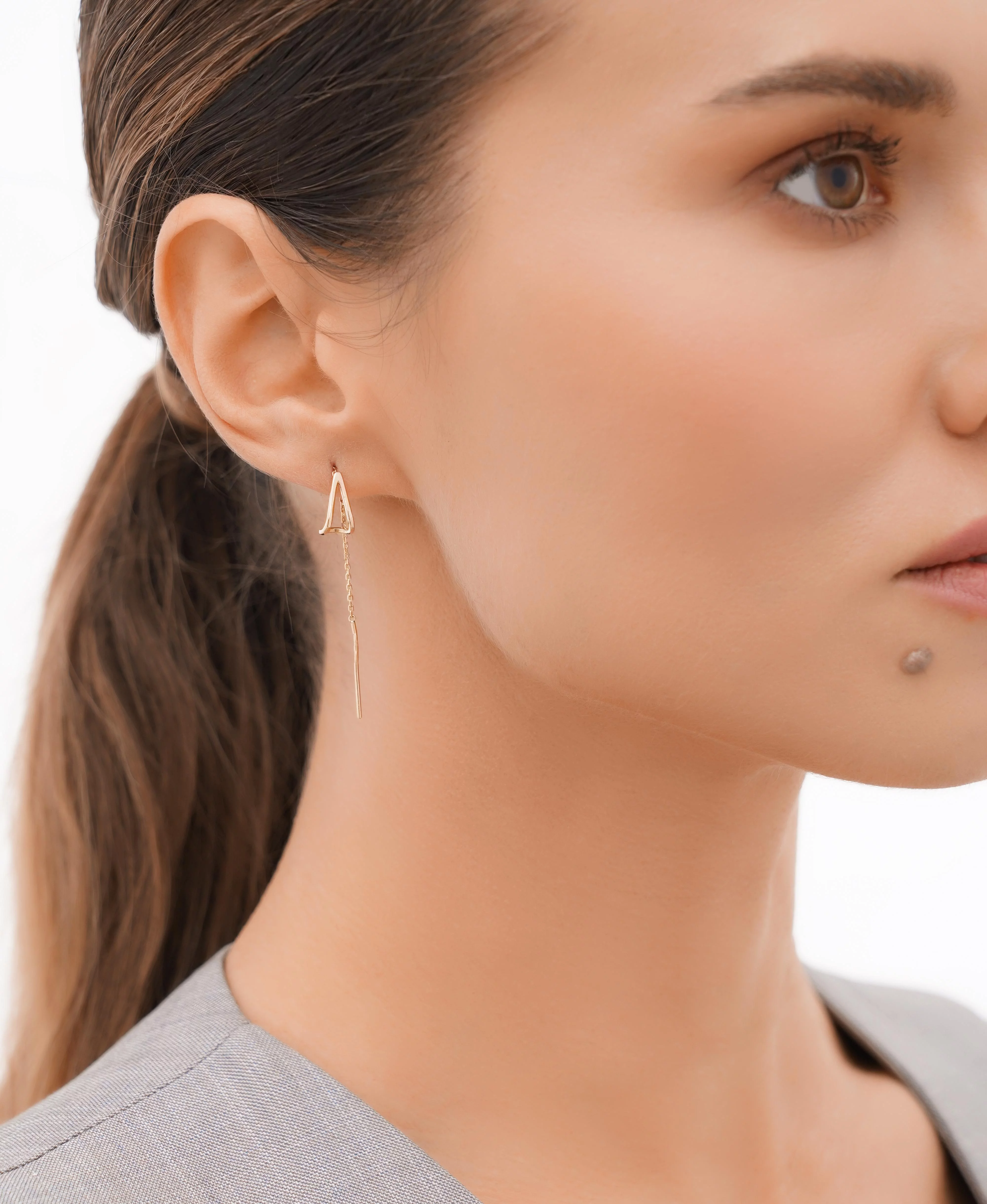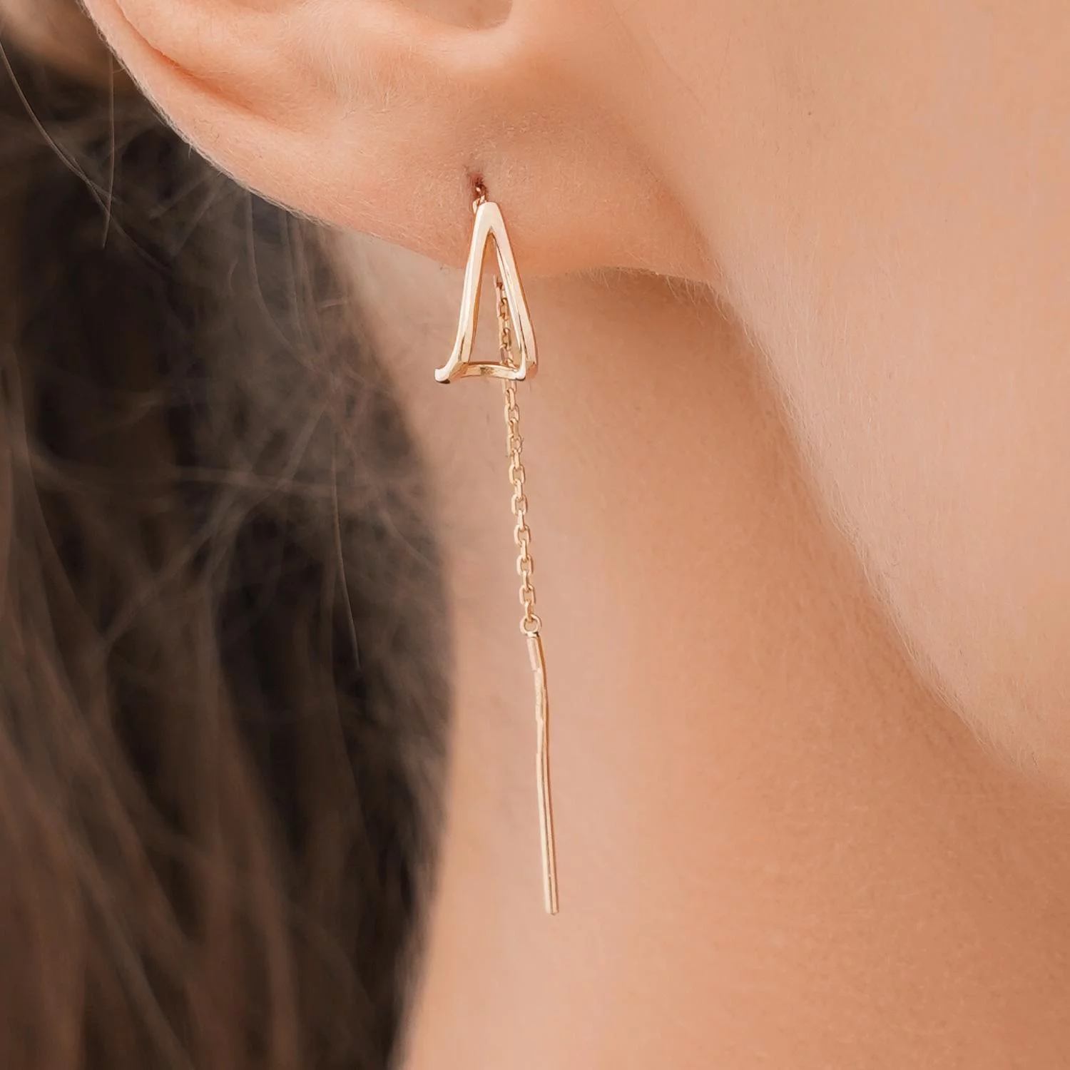 Элегантные сережки-протяжки из желтого золота с алмазной гранью - 1872947