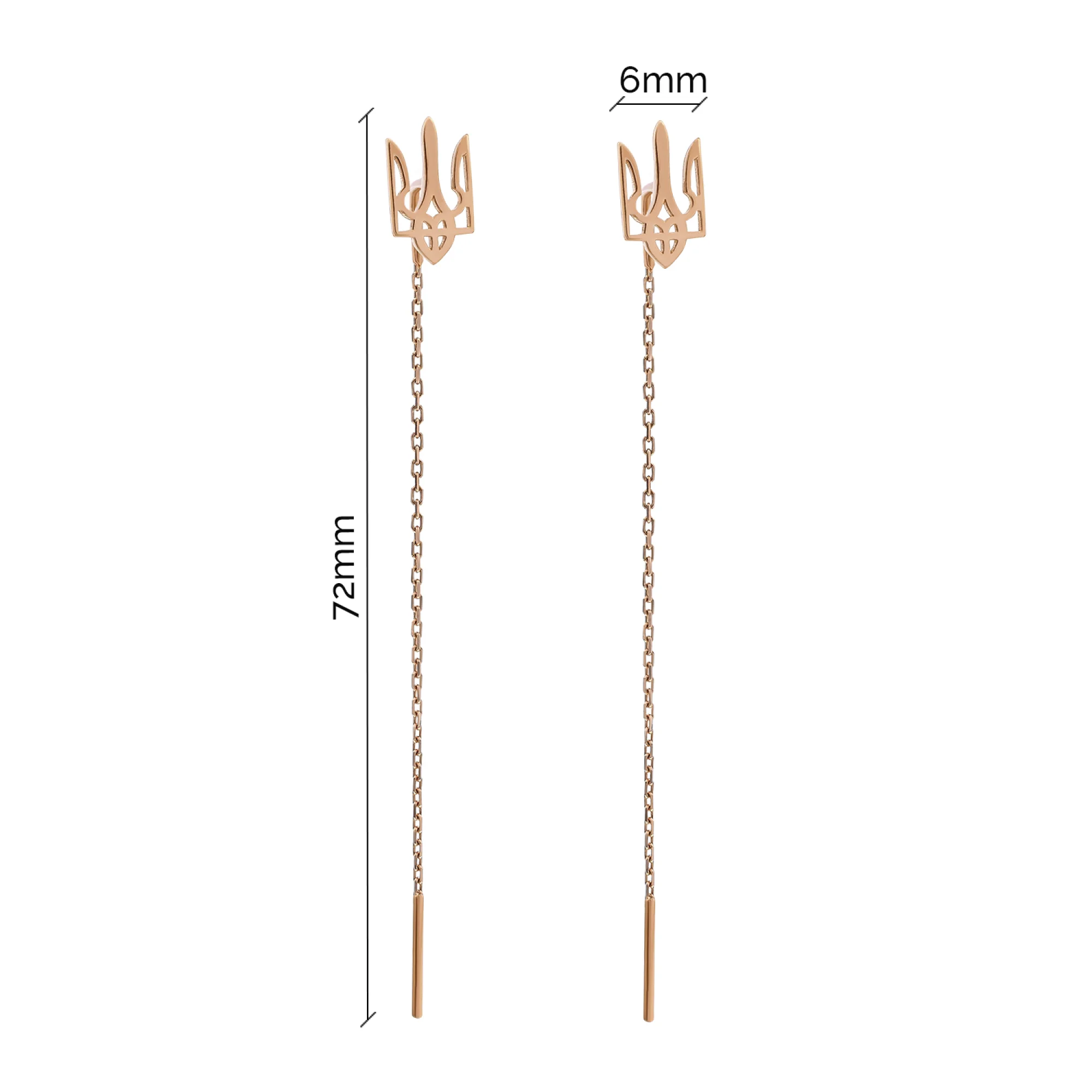 Сережки-протяжки из красного золота тризуб-"Герб Украины" - 1454533