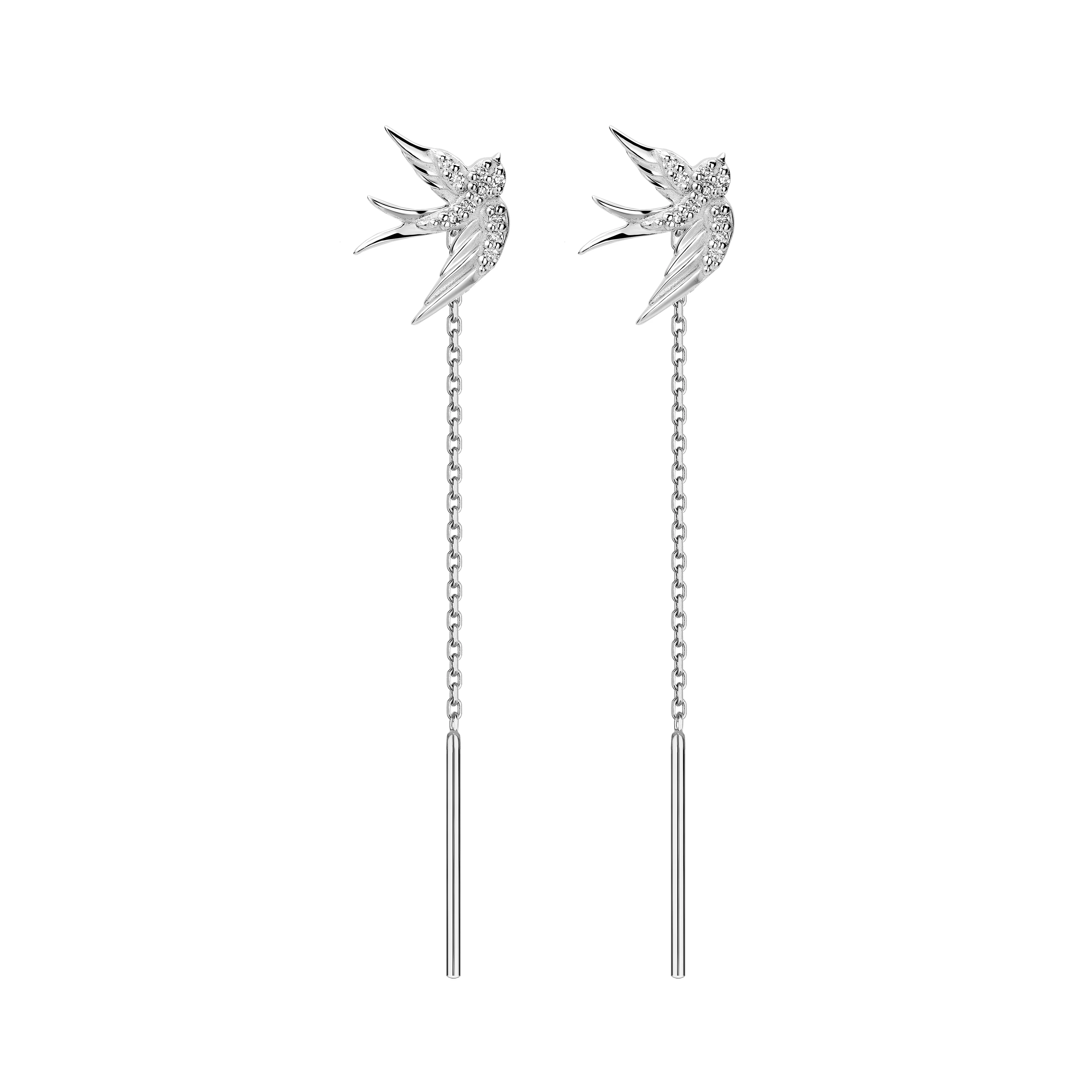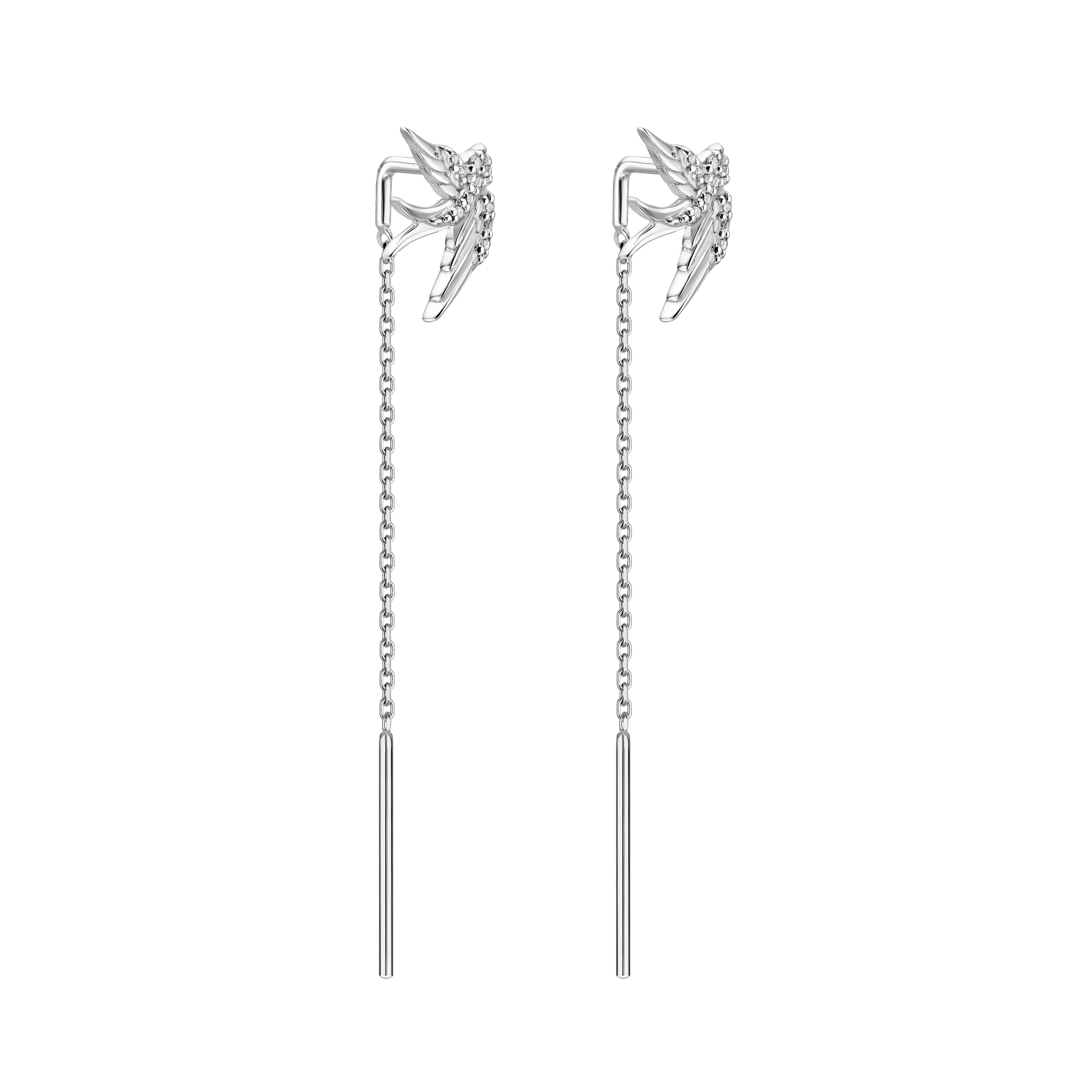 Элегантные сережки "Бабочка" из белого золота с бриллиантами - 1876614