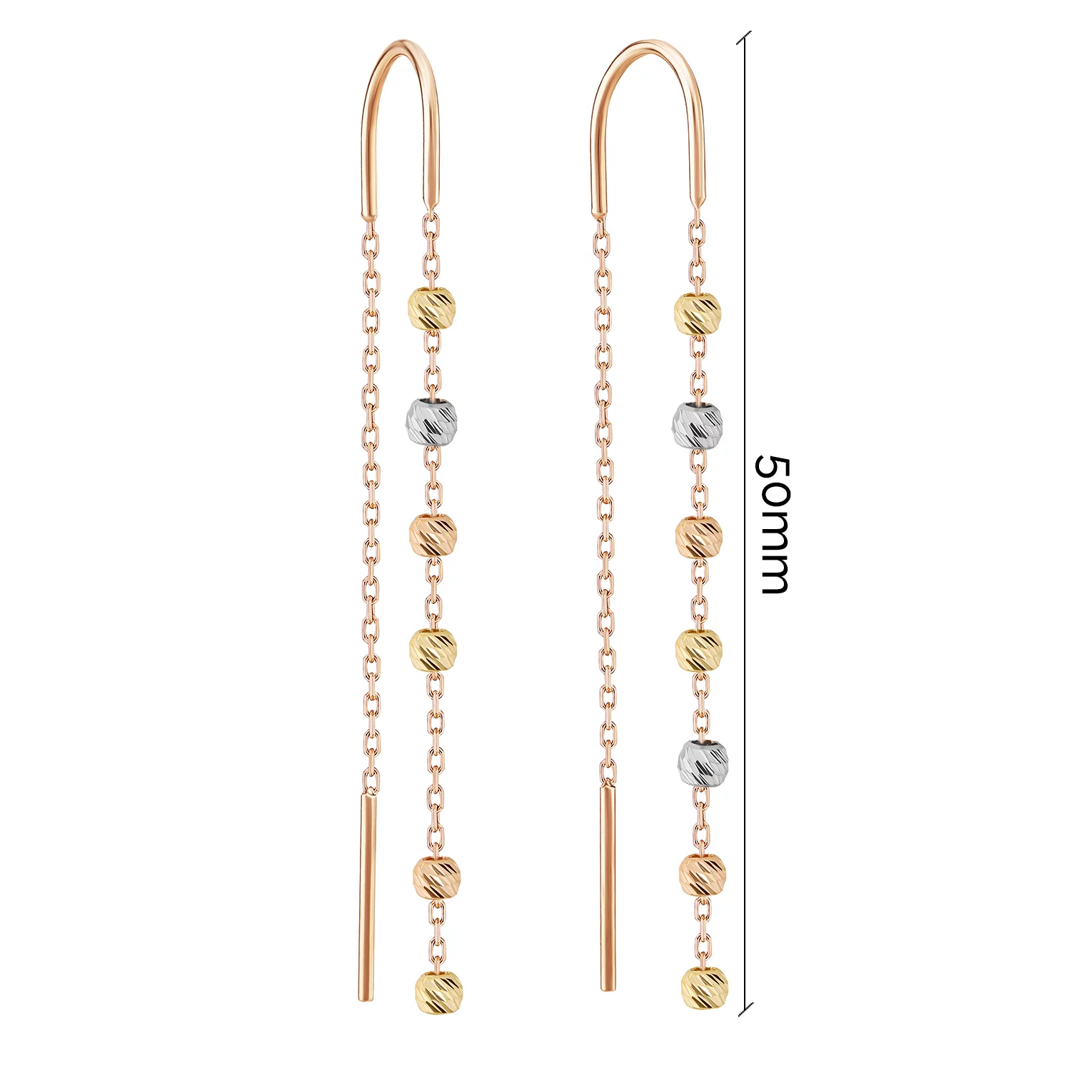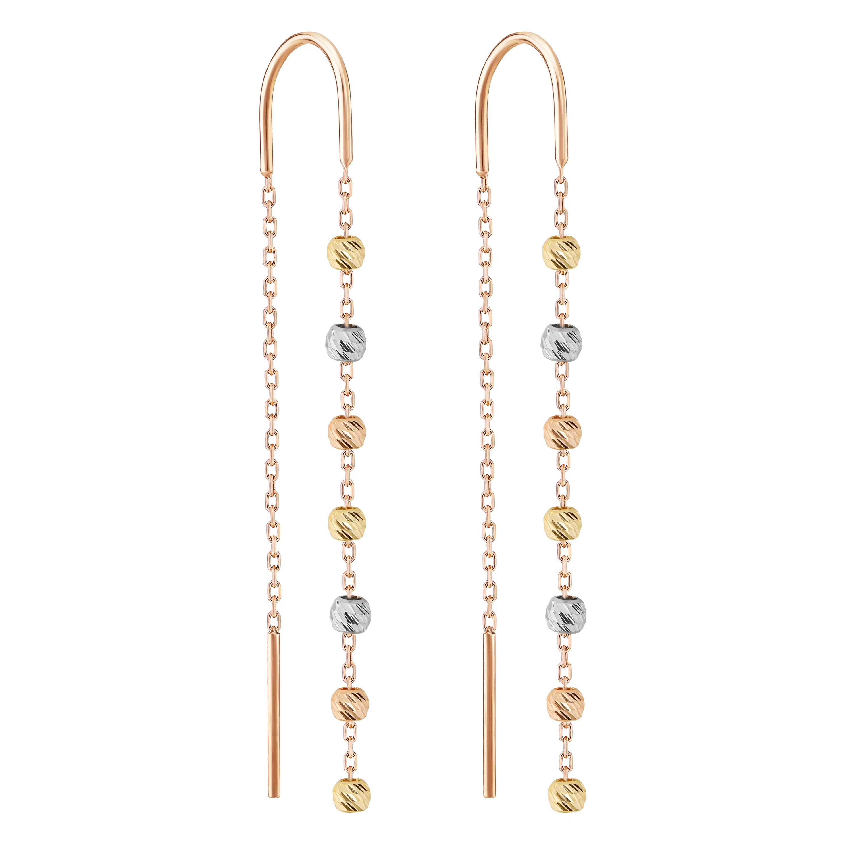 Элегантные сережки-протяжки из желтого золота с алмазной гранью - 1872947