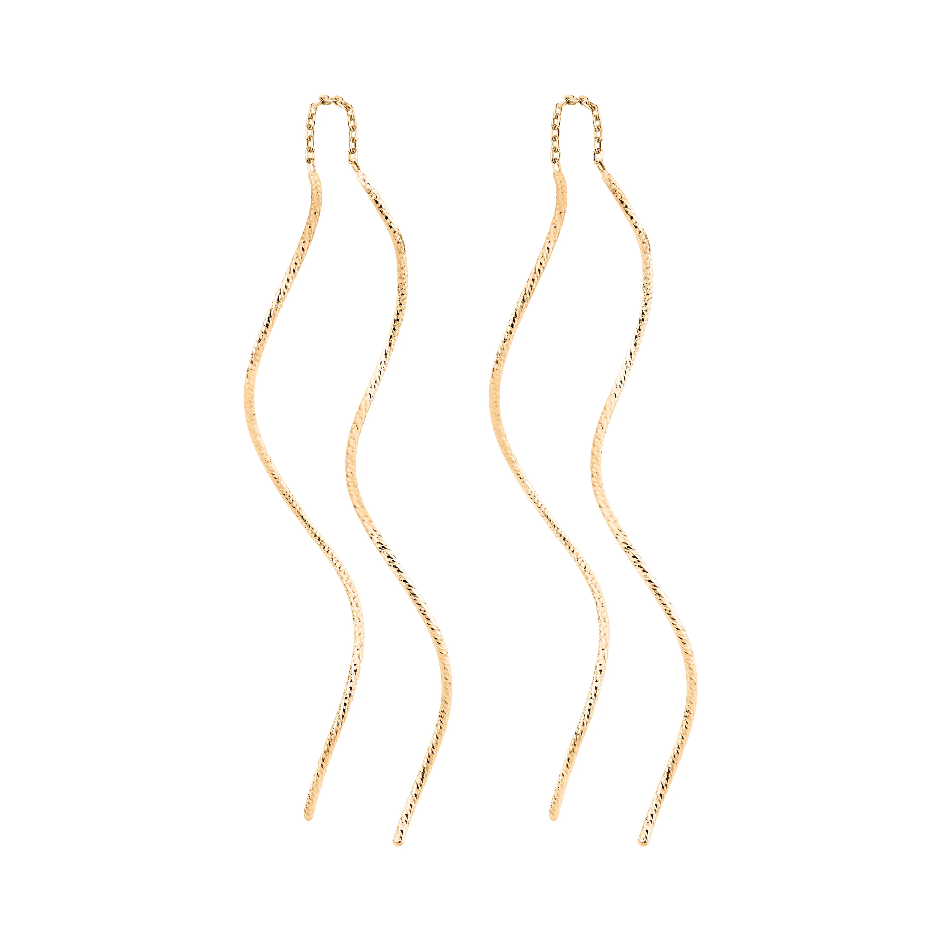 Сережки-протяжки "Волна" с алмазной гранью в красном золте - 2115626