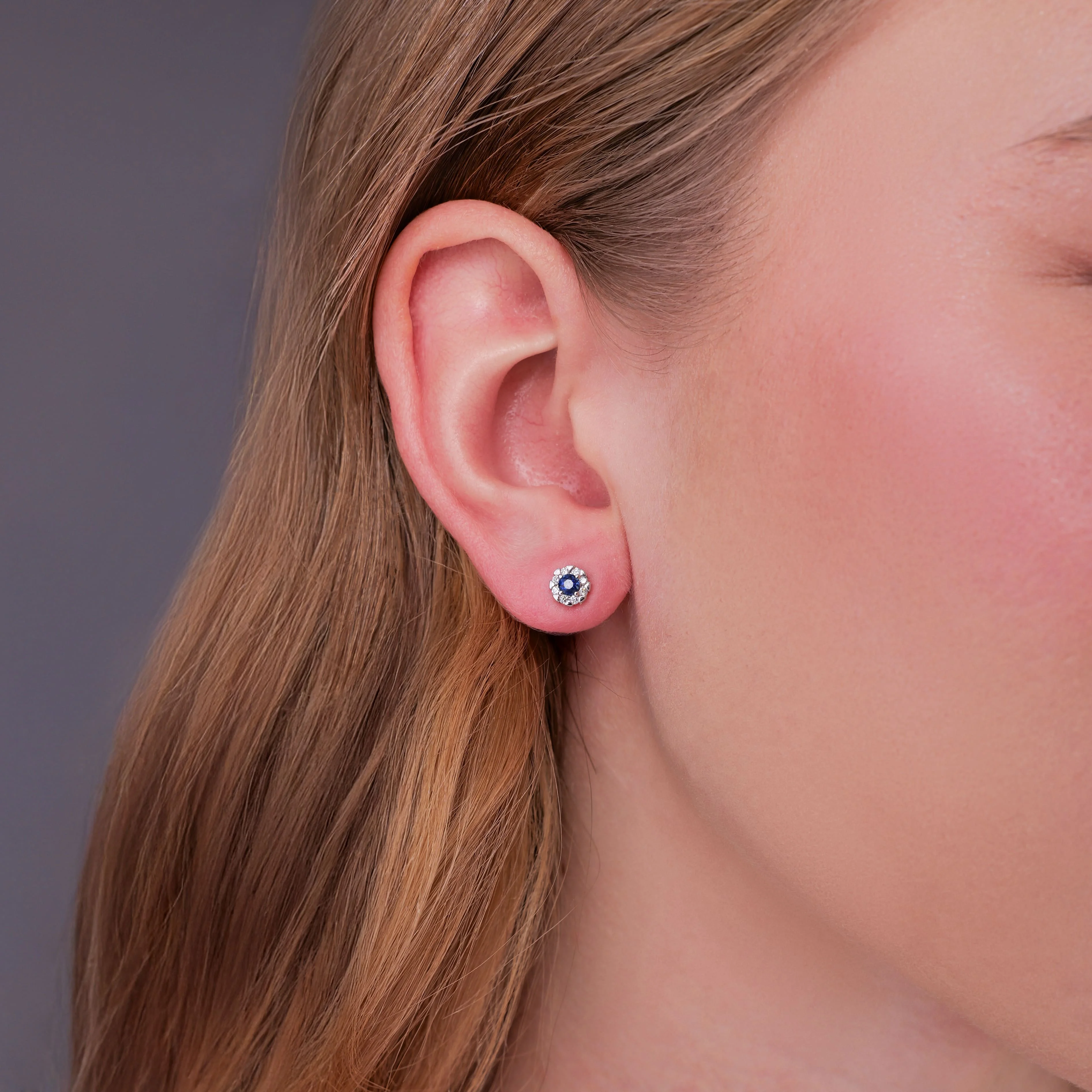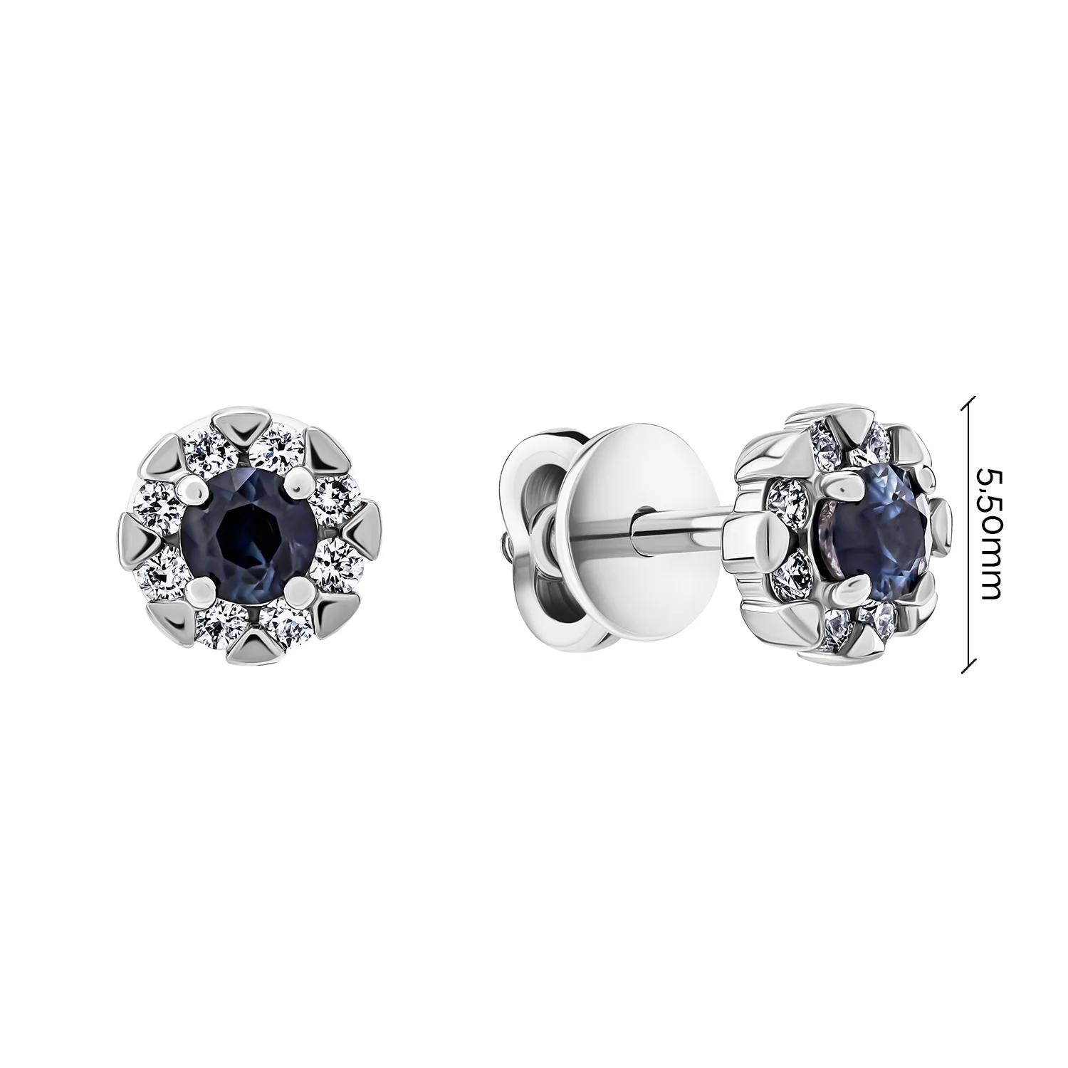 Сережки-пусеты в белом золоте с бриллиантами и сапфиром - 1980511