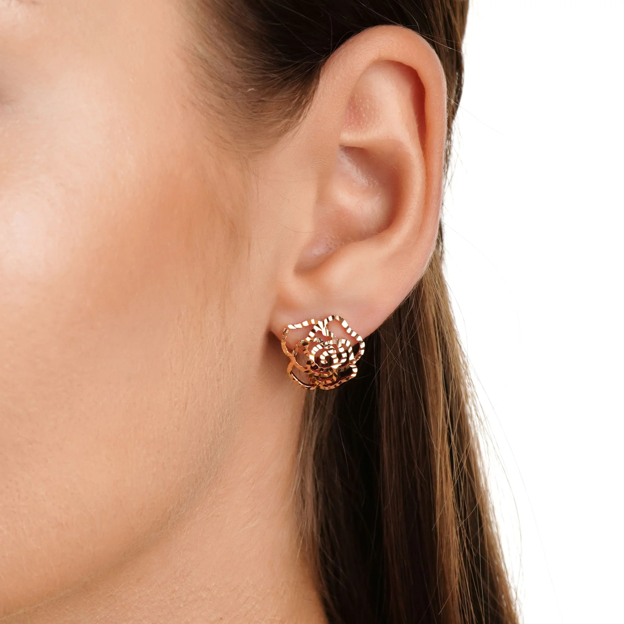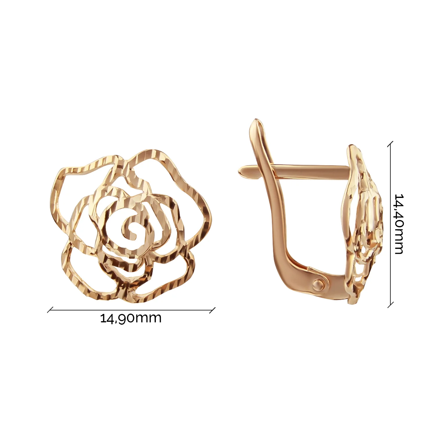 Стильные сережки-гвоздики в форме цветка в комбинированном золоте и алмазной гранью - 1870043