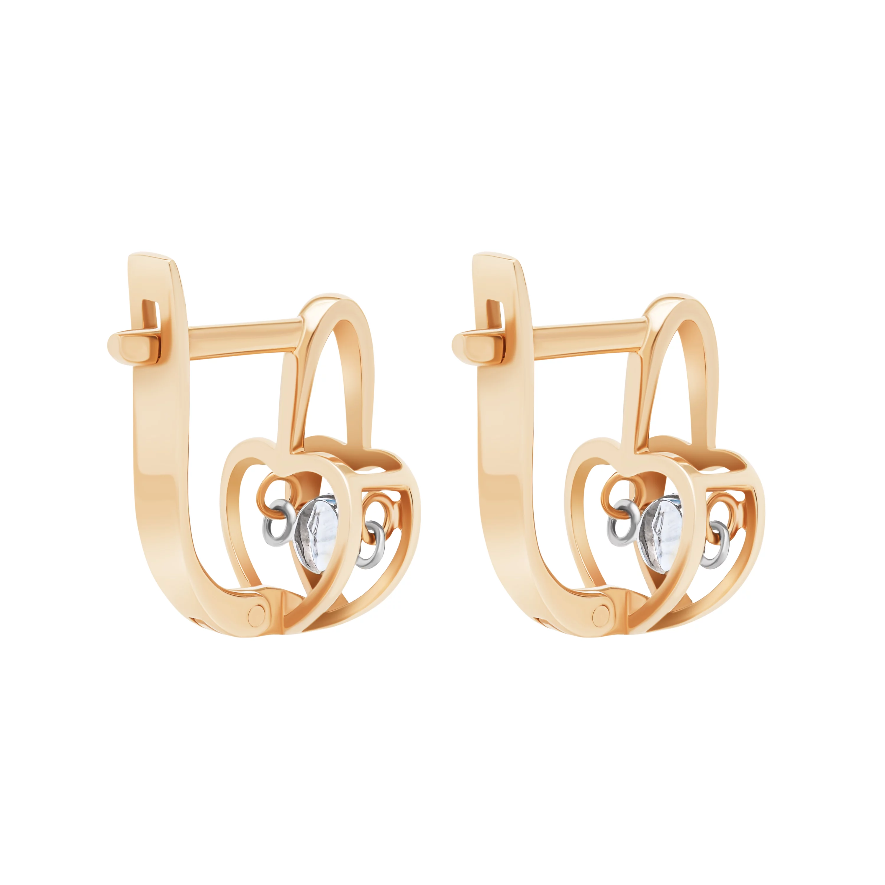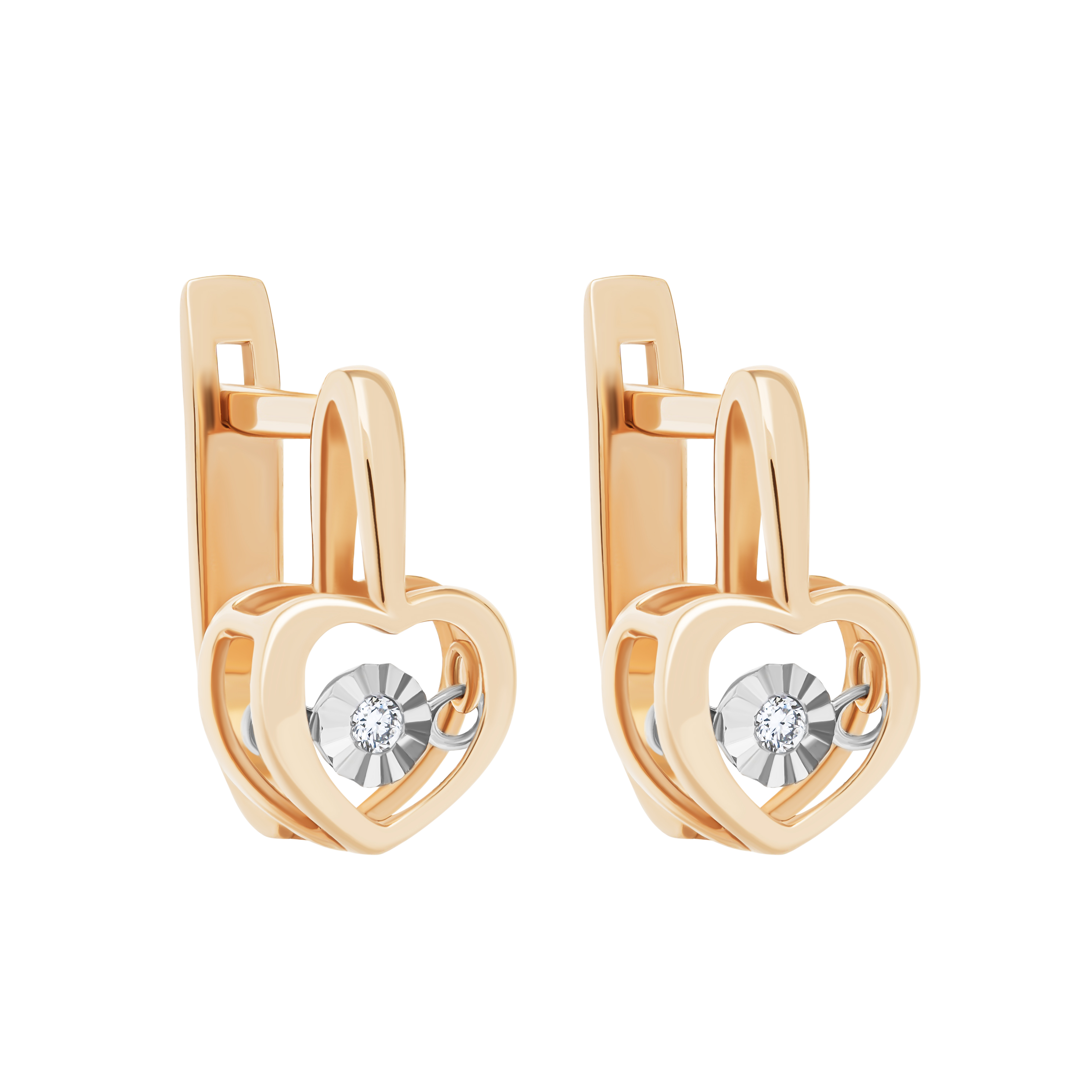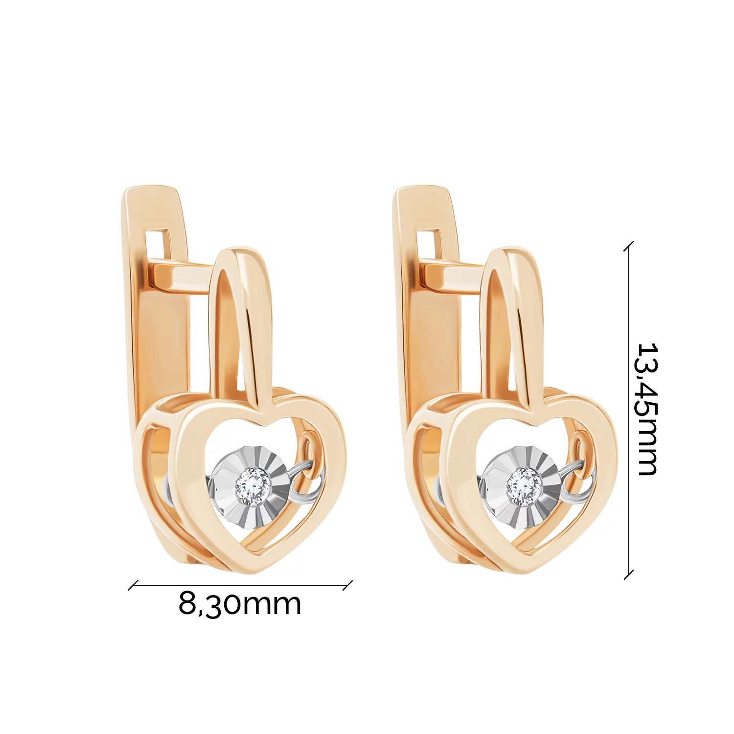 Сережки "Сердечки" с танцующим бриллиантом из комбинированного золота - 1782736