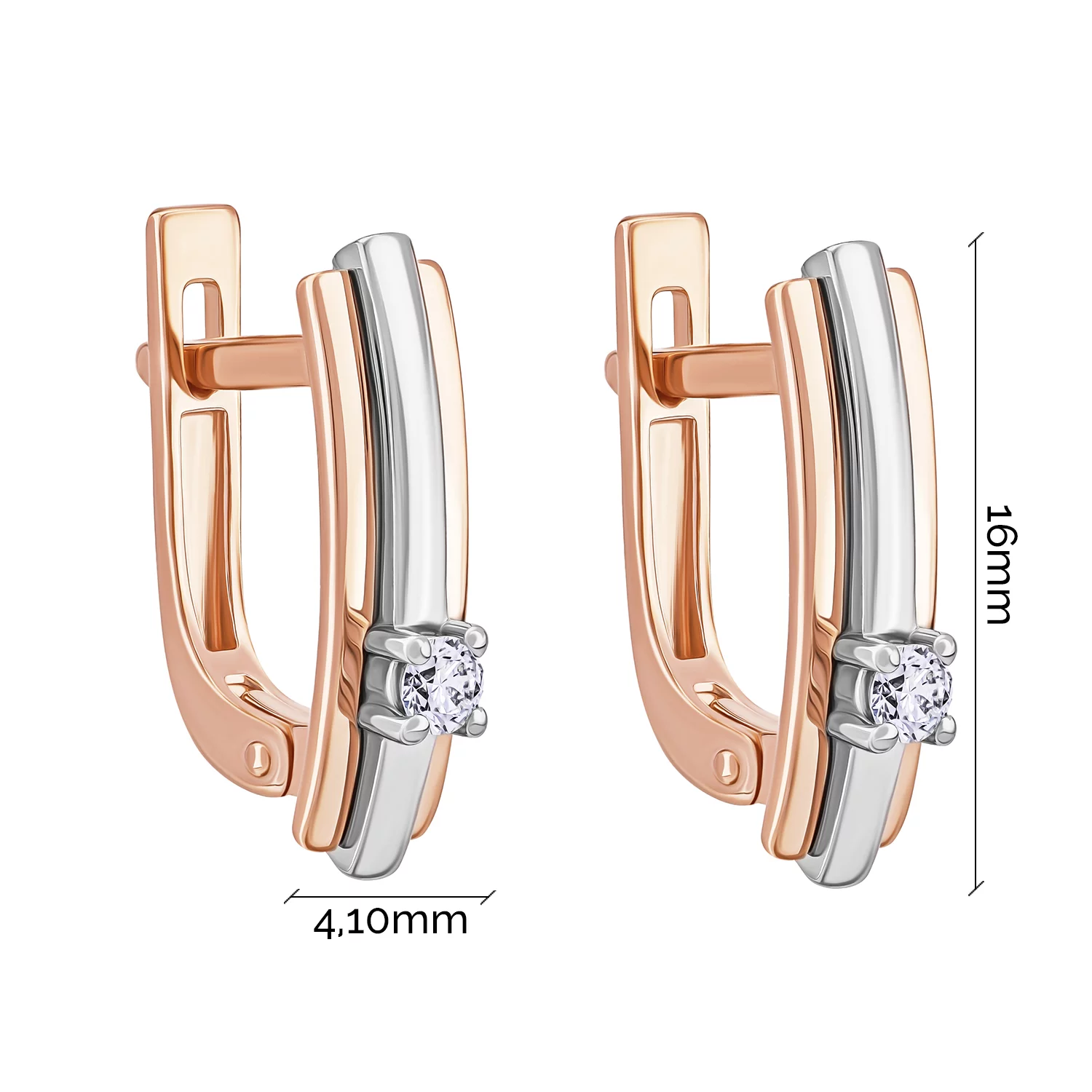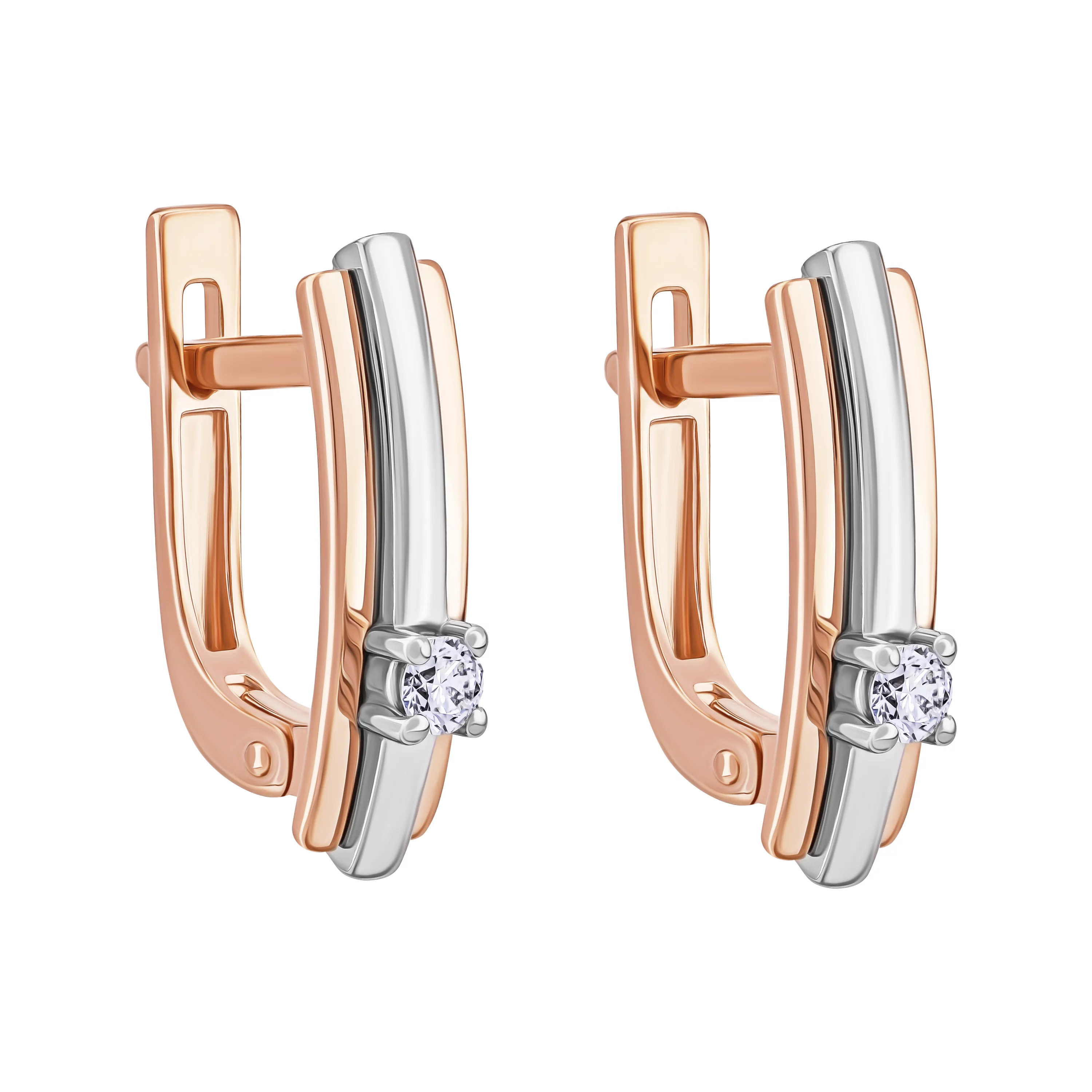 Сережки "Переплетение" из комбинированного золота с бриллиантами - 1867029