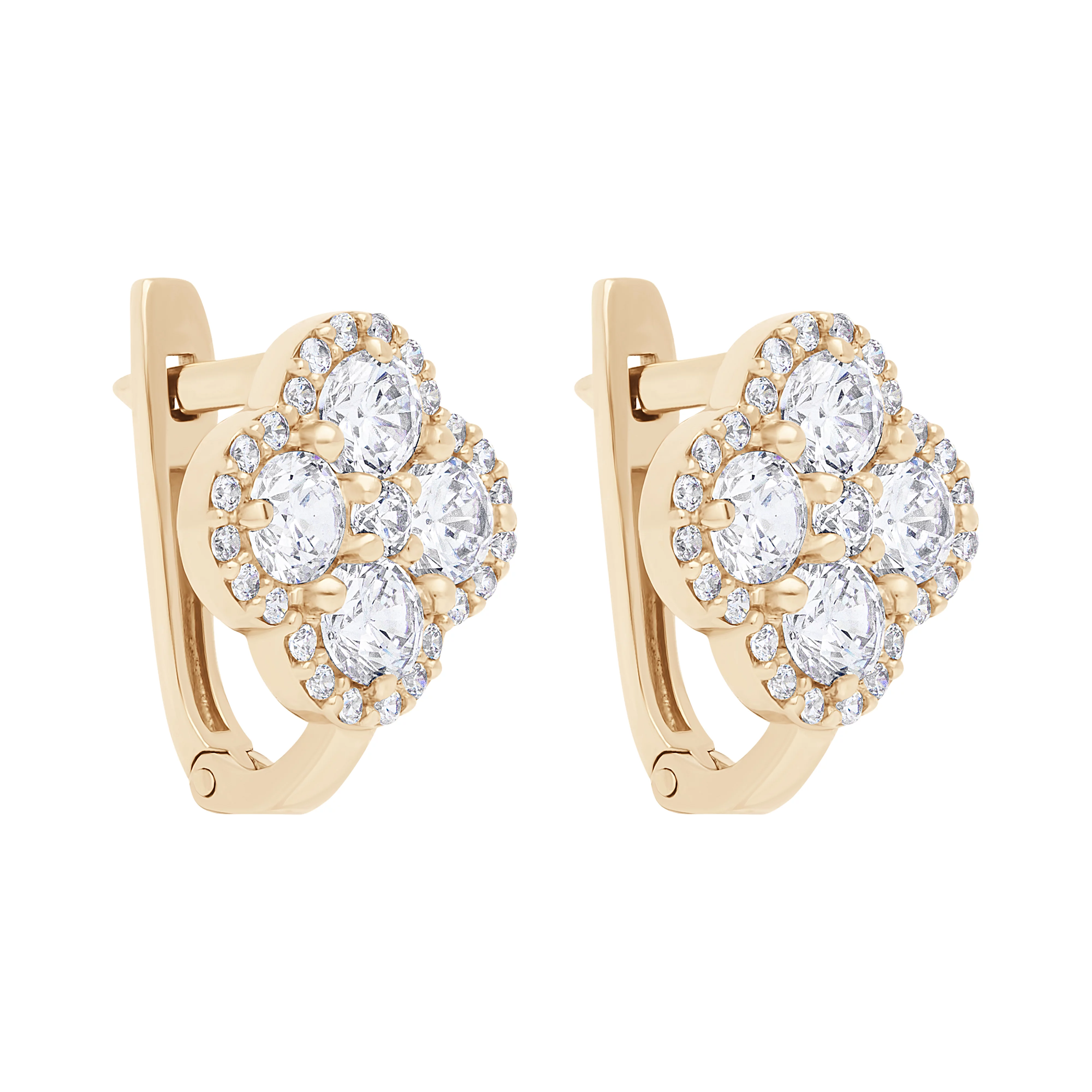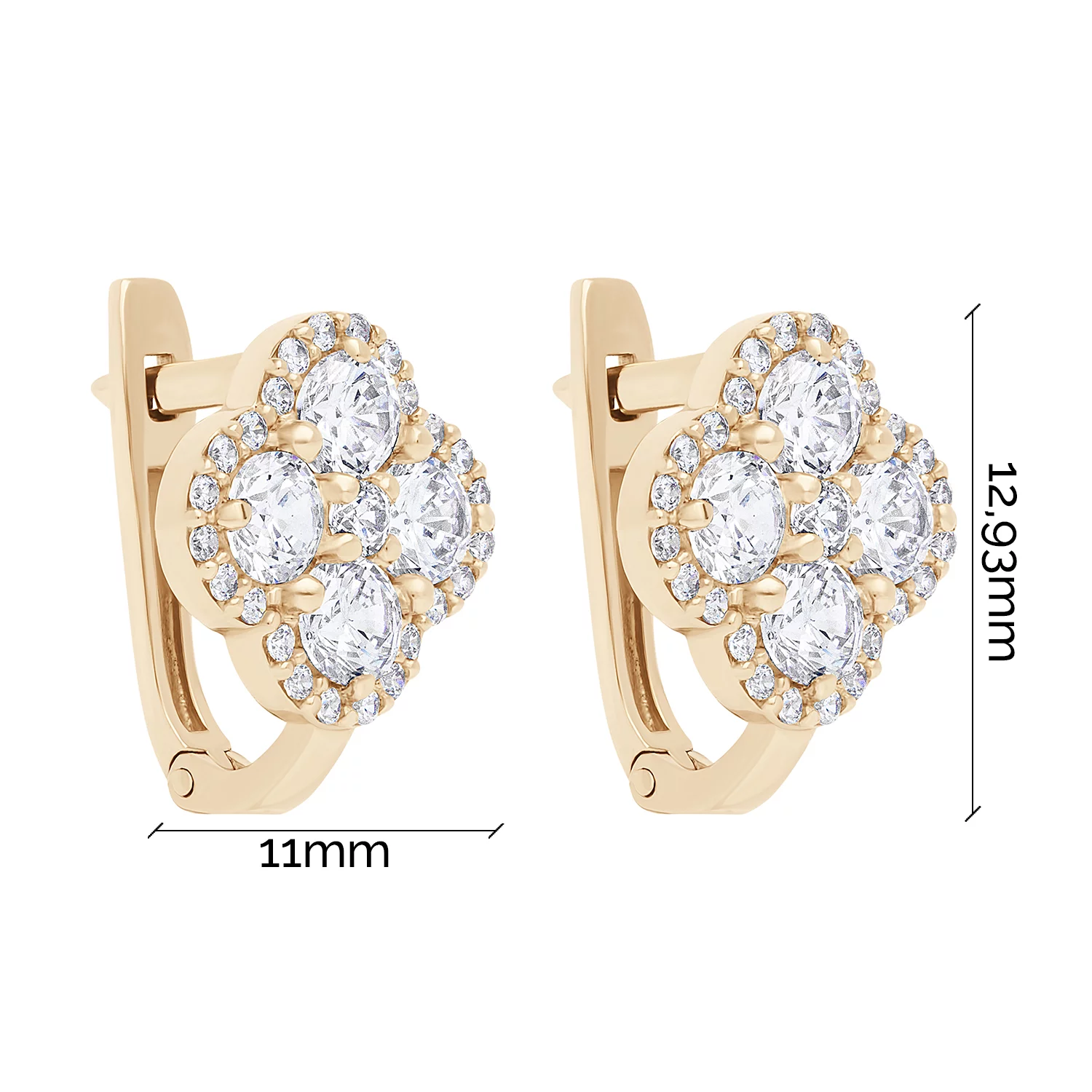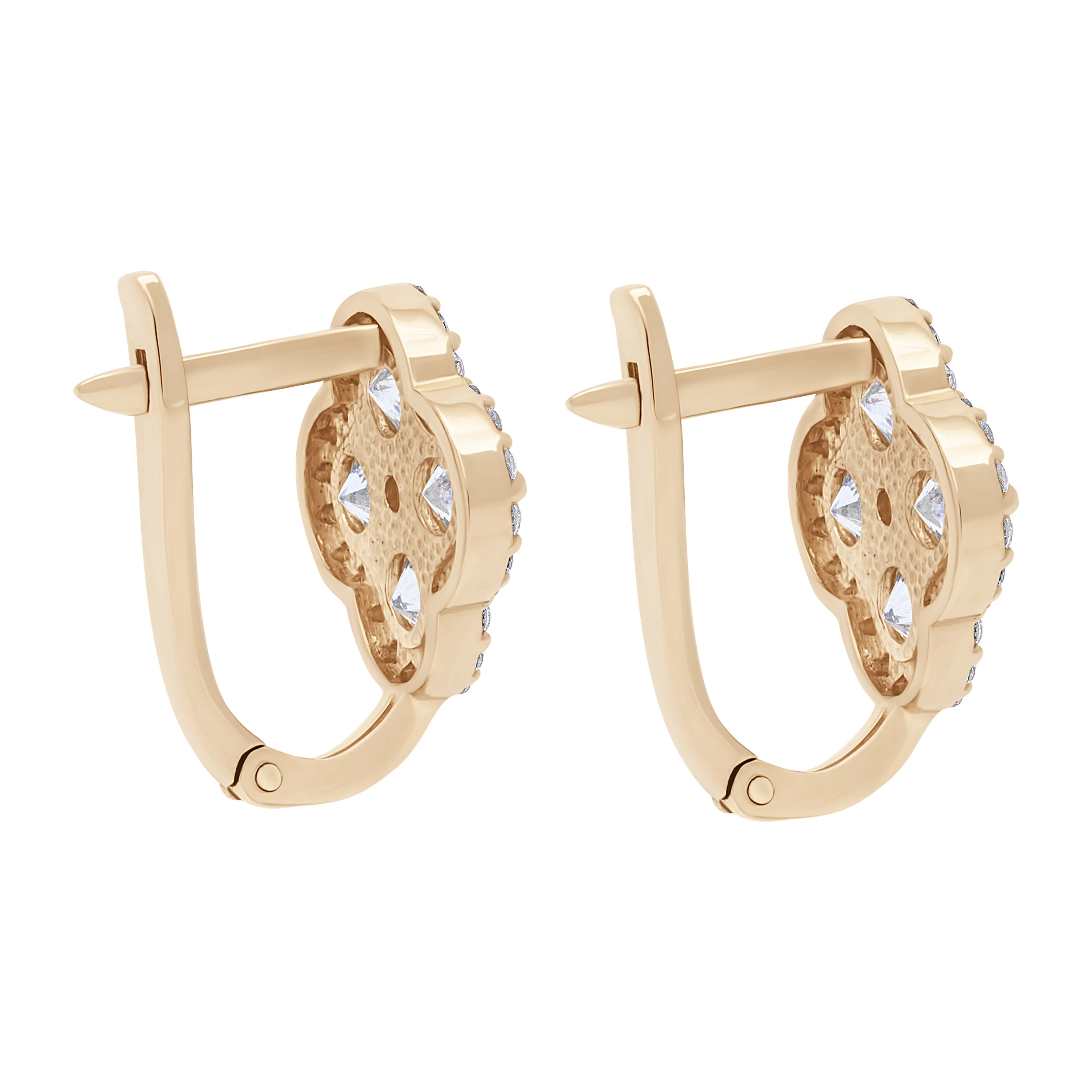 Сережки с подвесками "Клевер" с фианитами из красного золота - 1745094