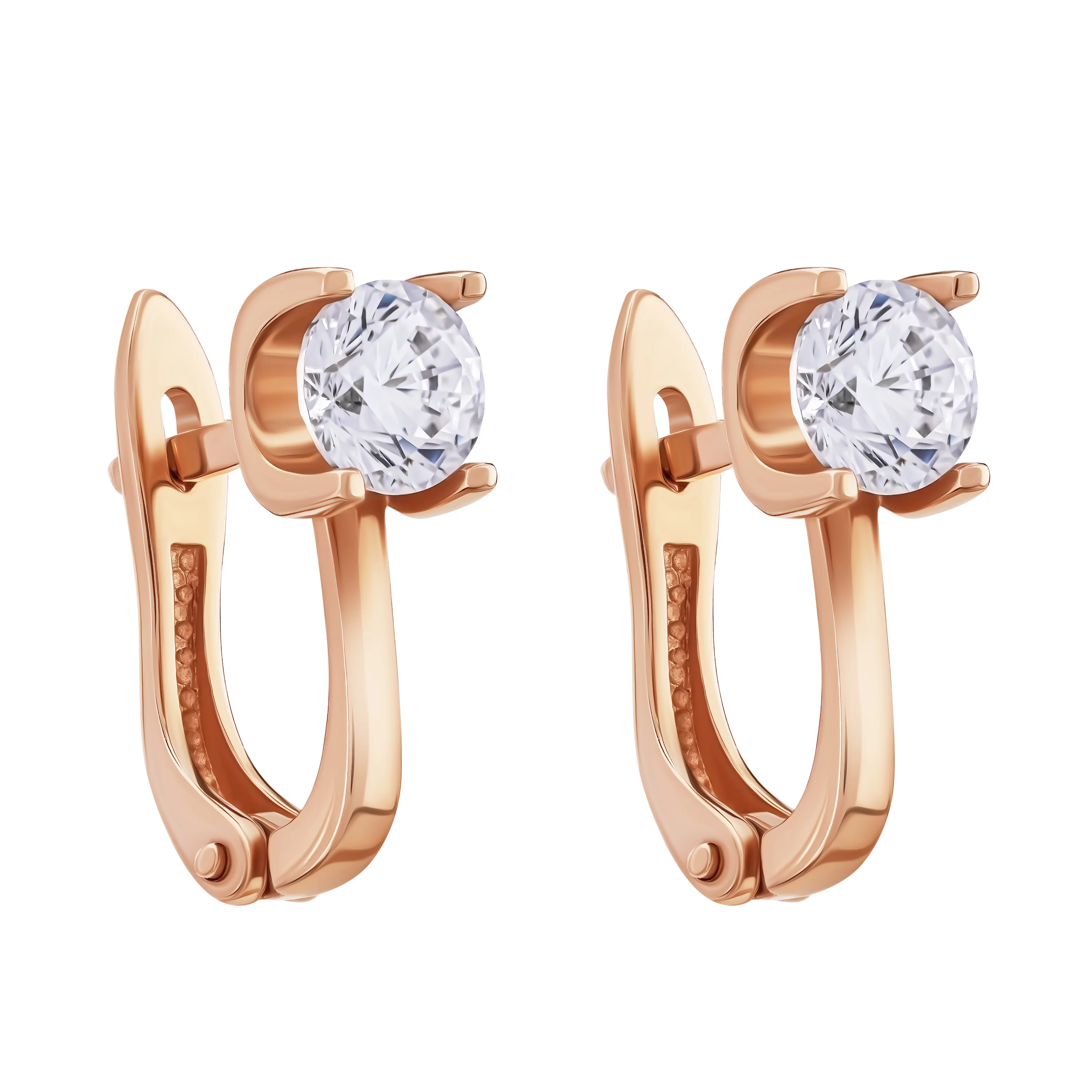 Элегантные сережки-протяжки в минималистичном дизайне из белого золота и фианитами - 1870345