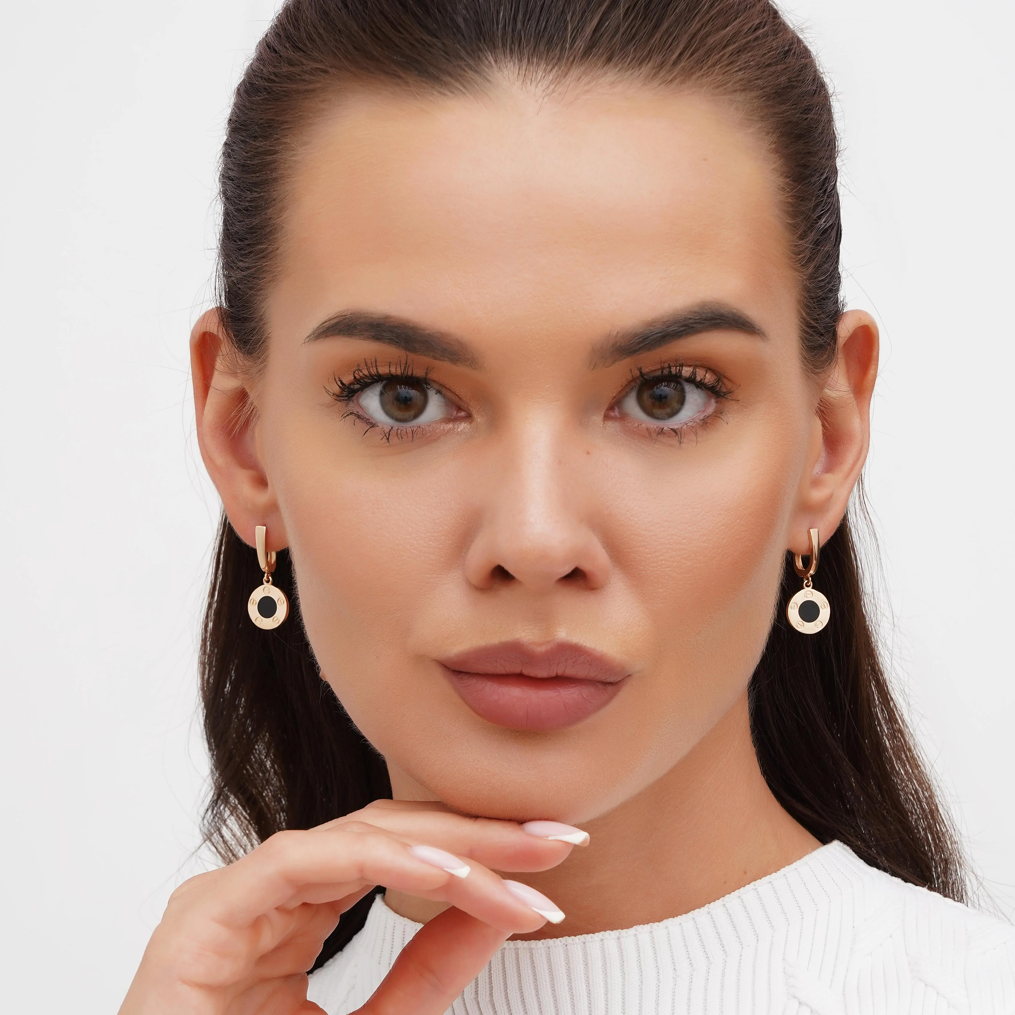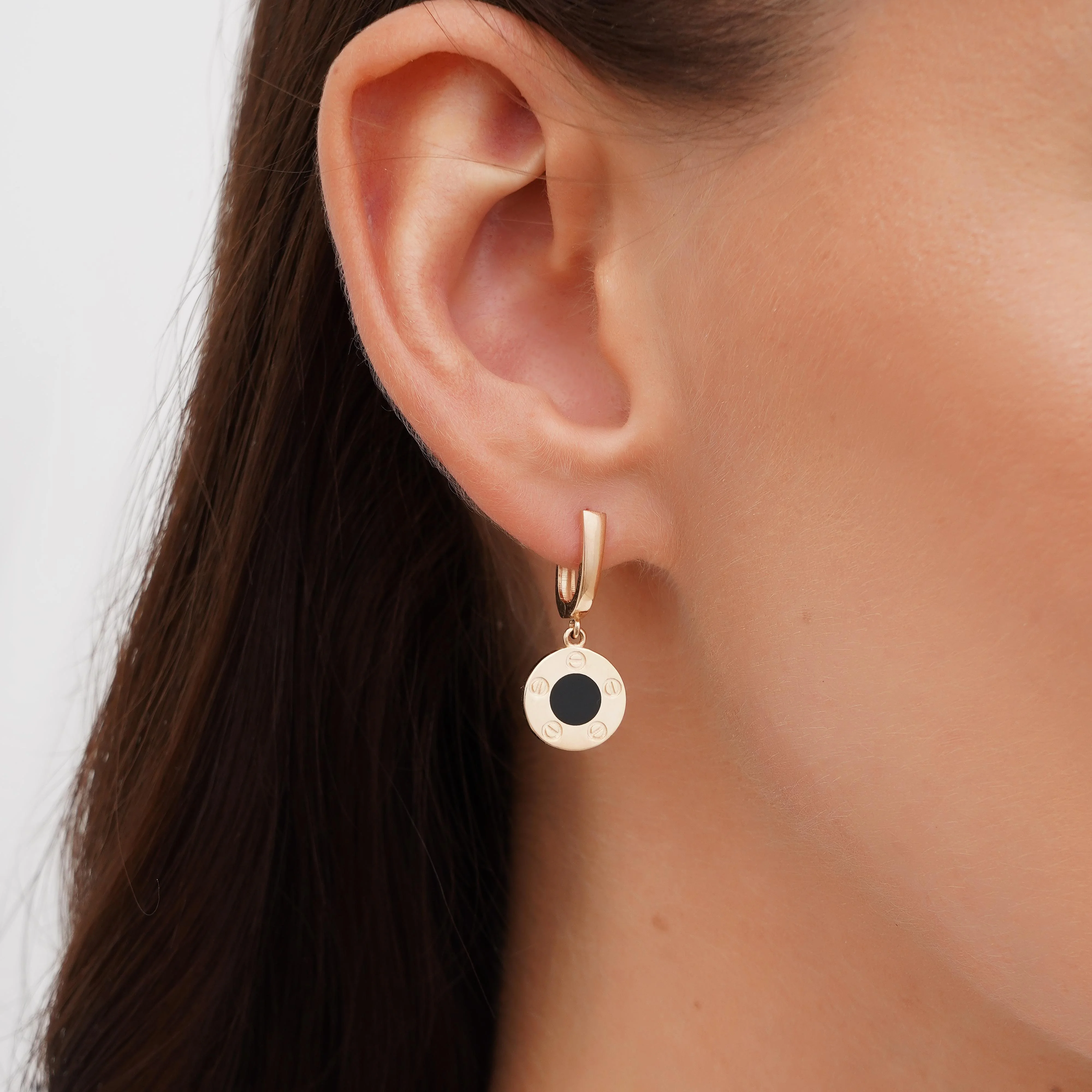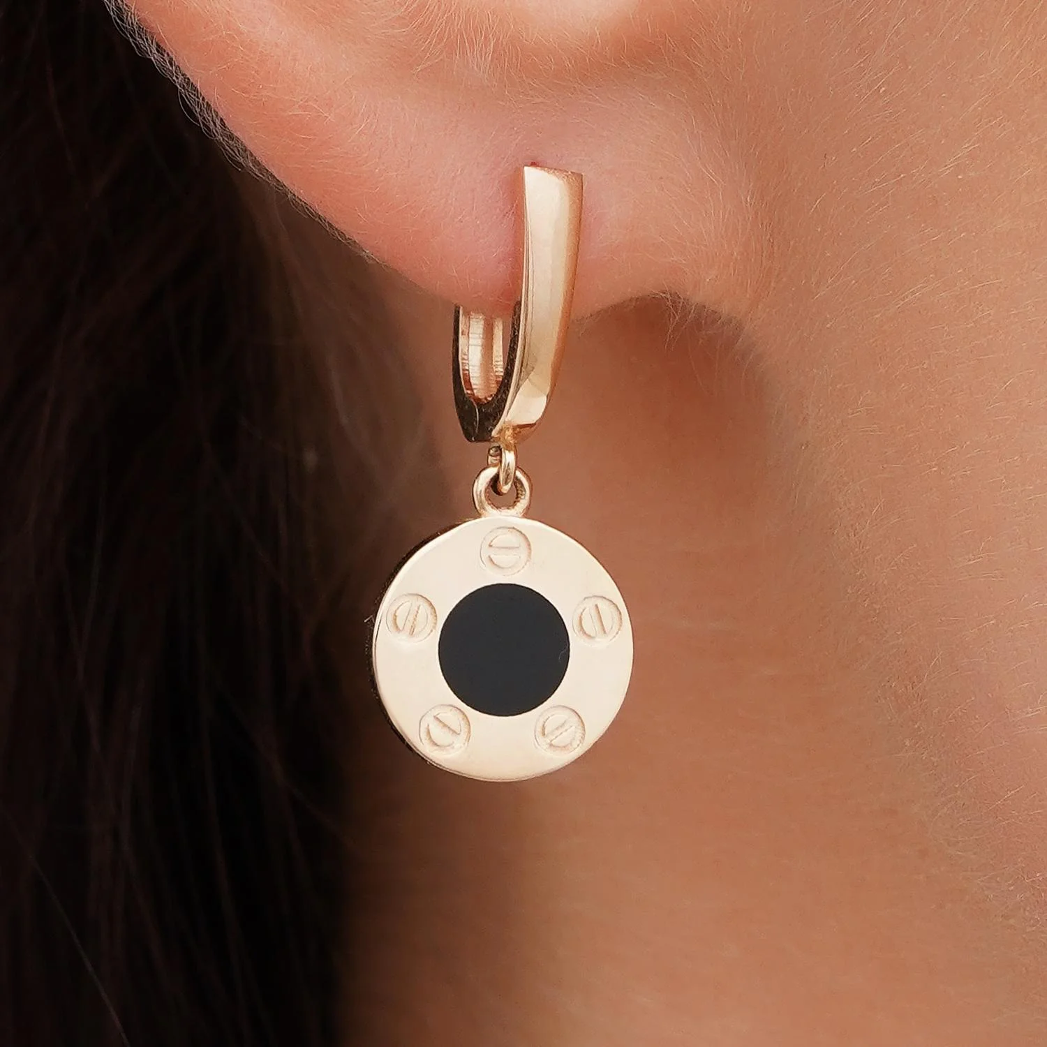 Стильные сережки с подвесами в красном золоте с эмалью и фианитом - 1928138