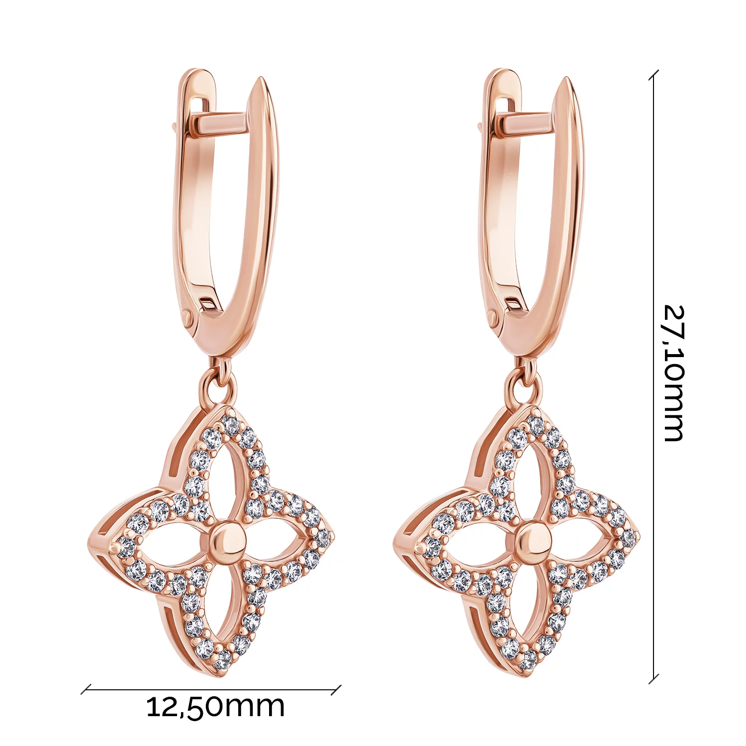 Детские сережки в форме цветка из красного золота с фианитами - 1879079