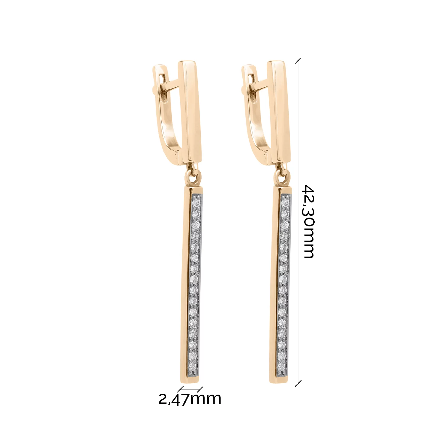Сережки из комбинированого золота с алмазной гранью и подвесами - 970225