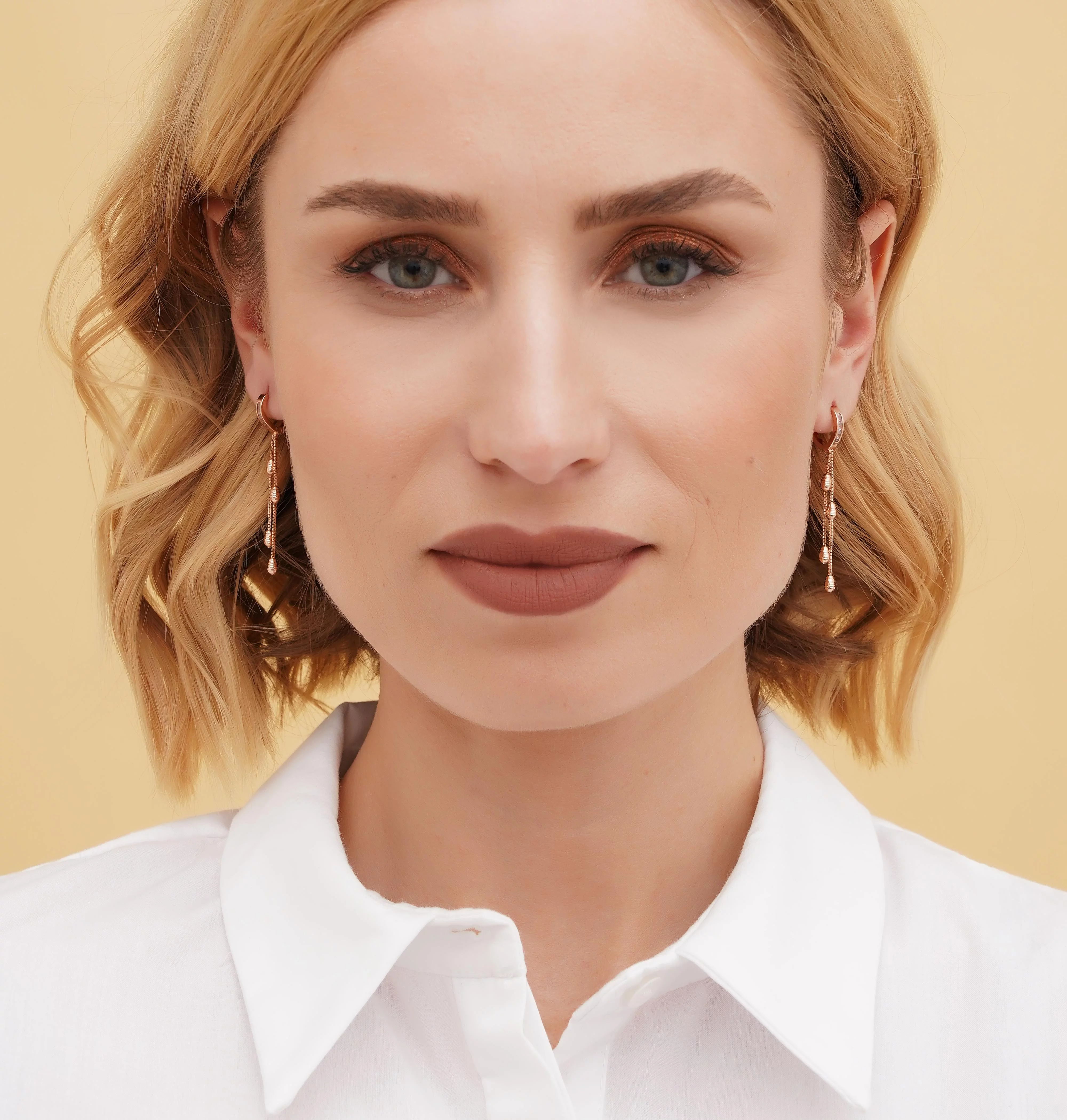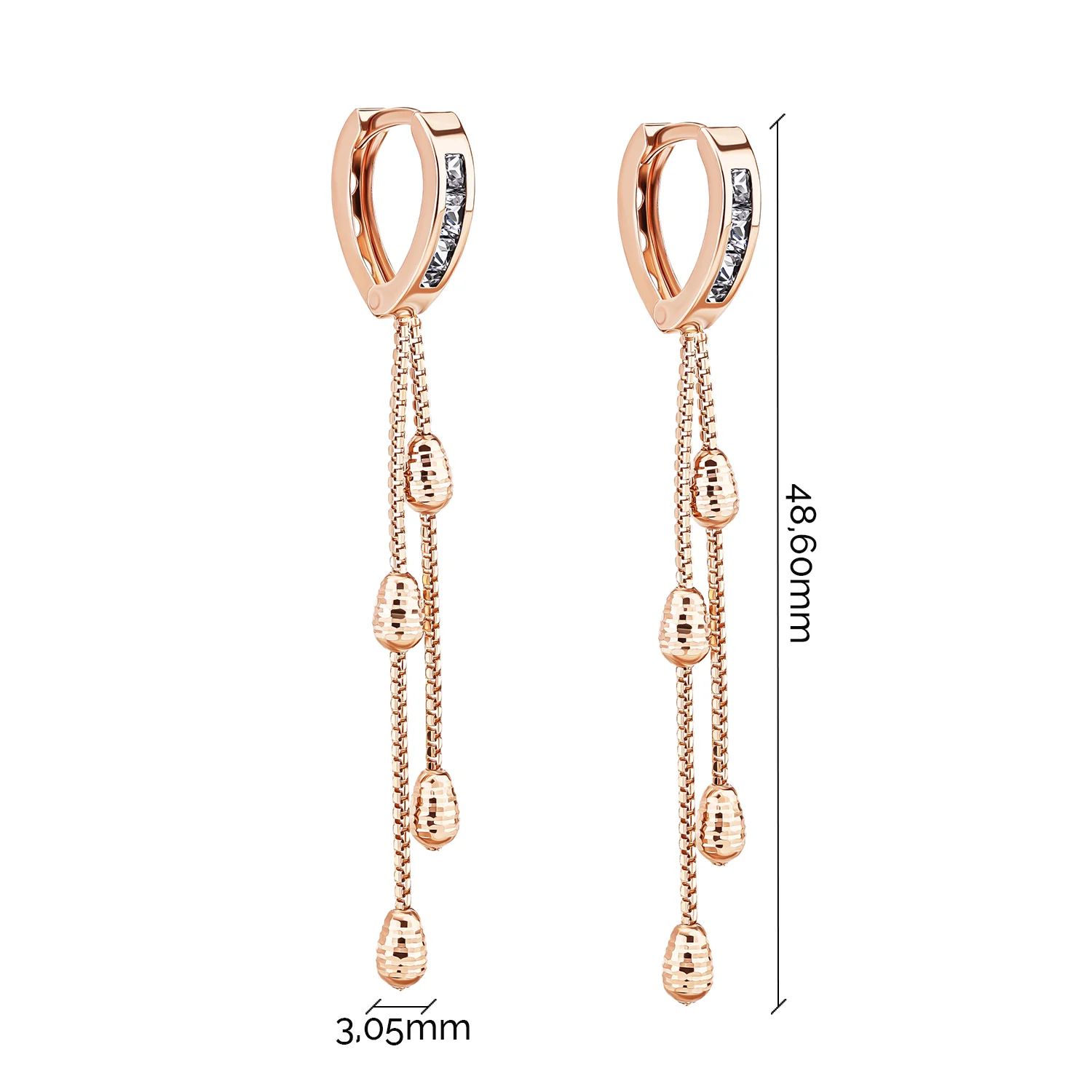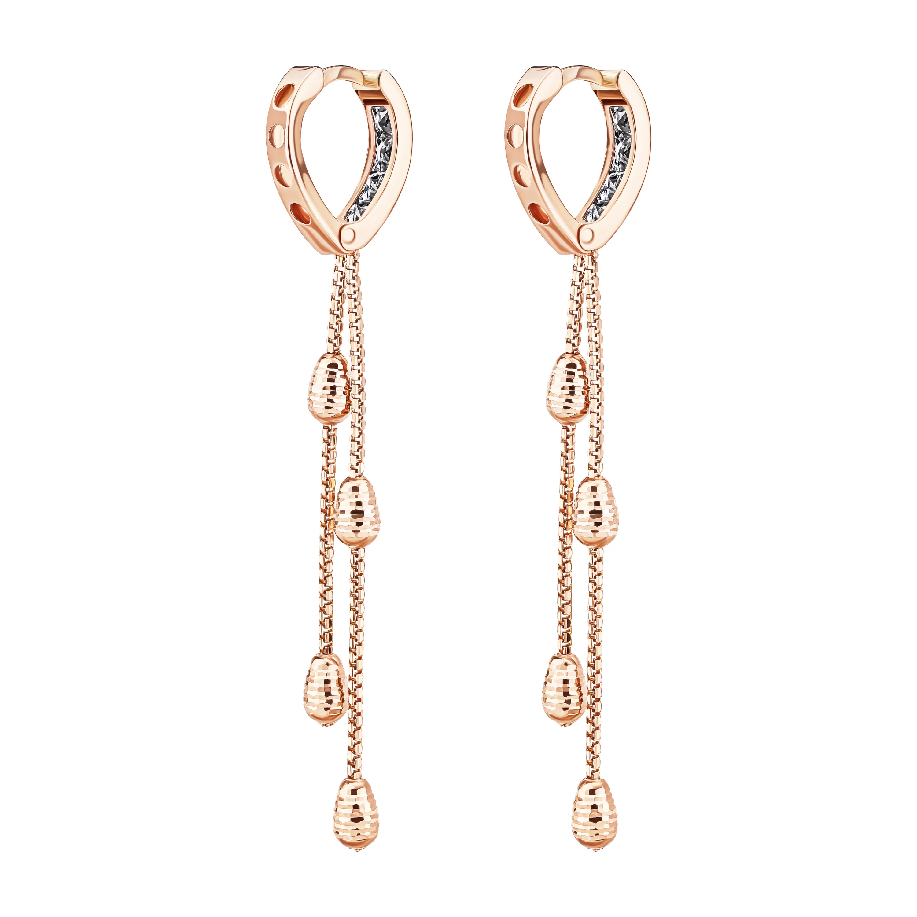 Сережки-кольца из комбинированного золота с фианитами и подвесными цепочками - 1806535