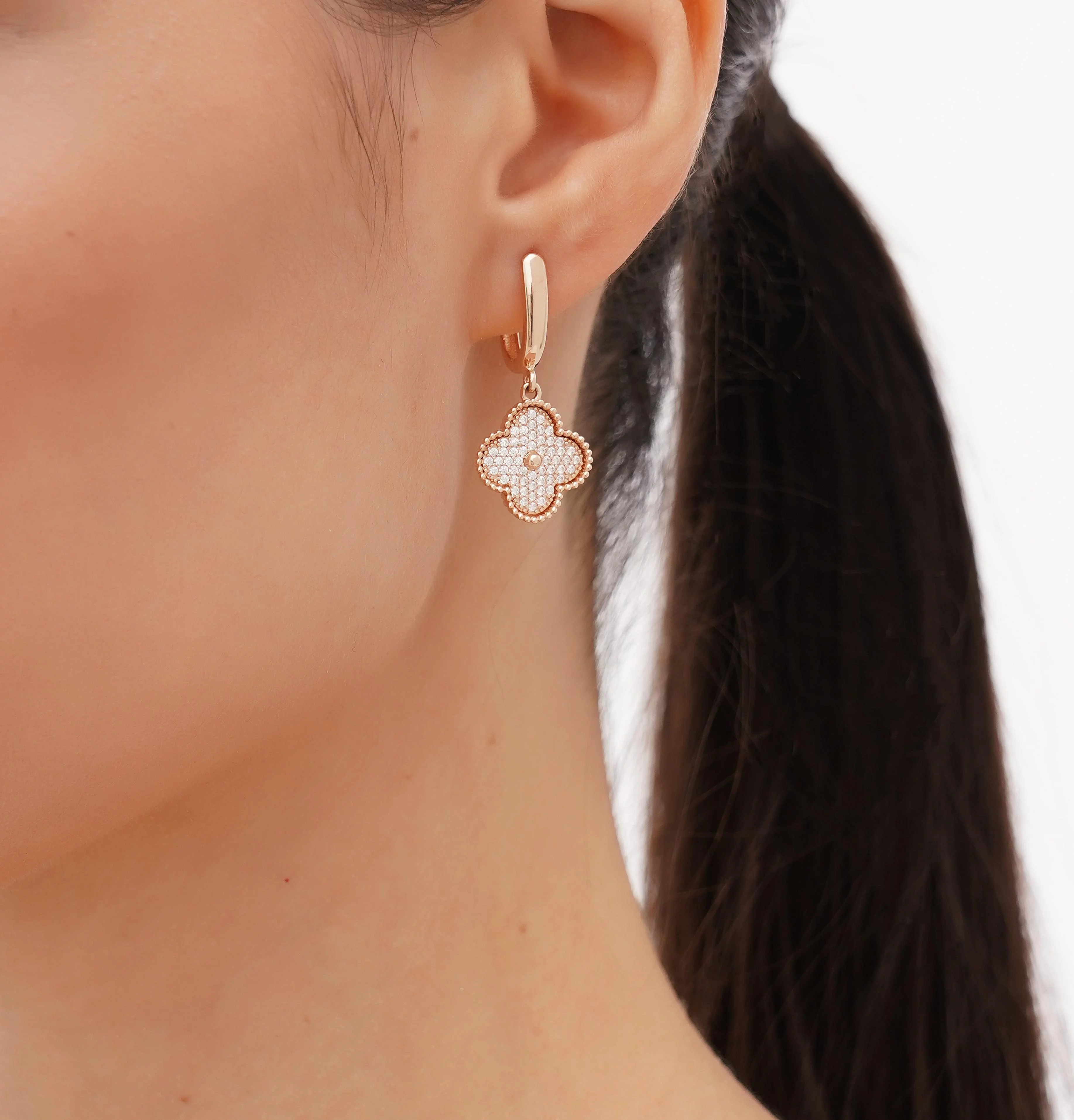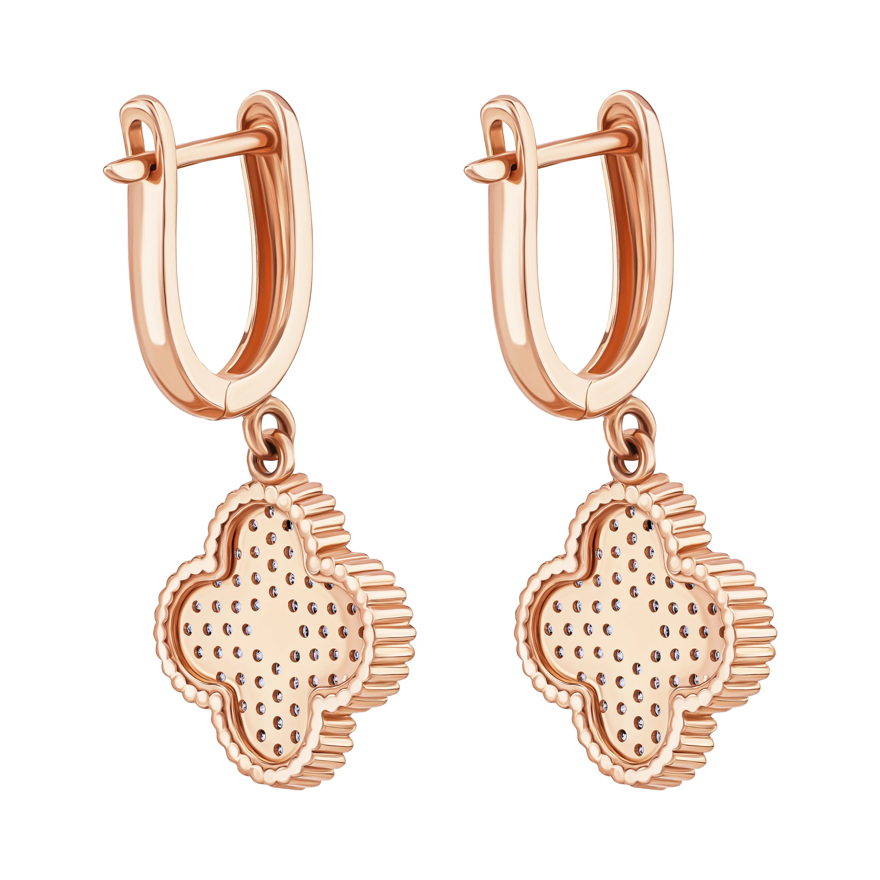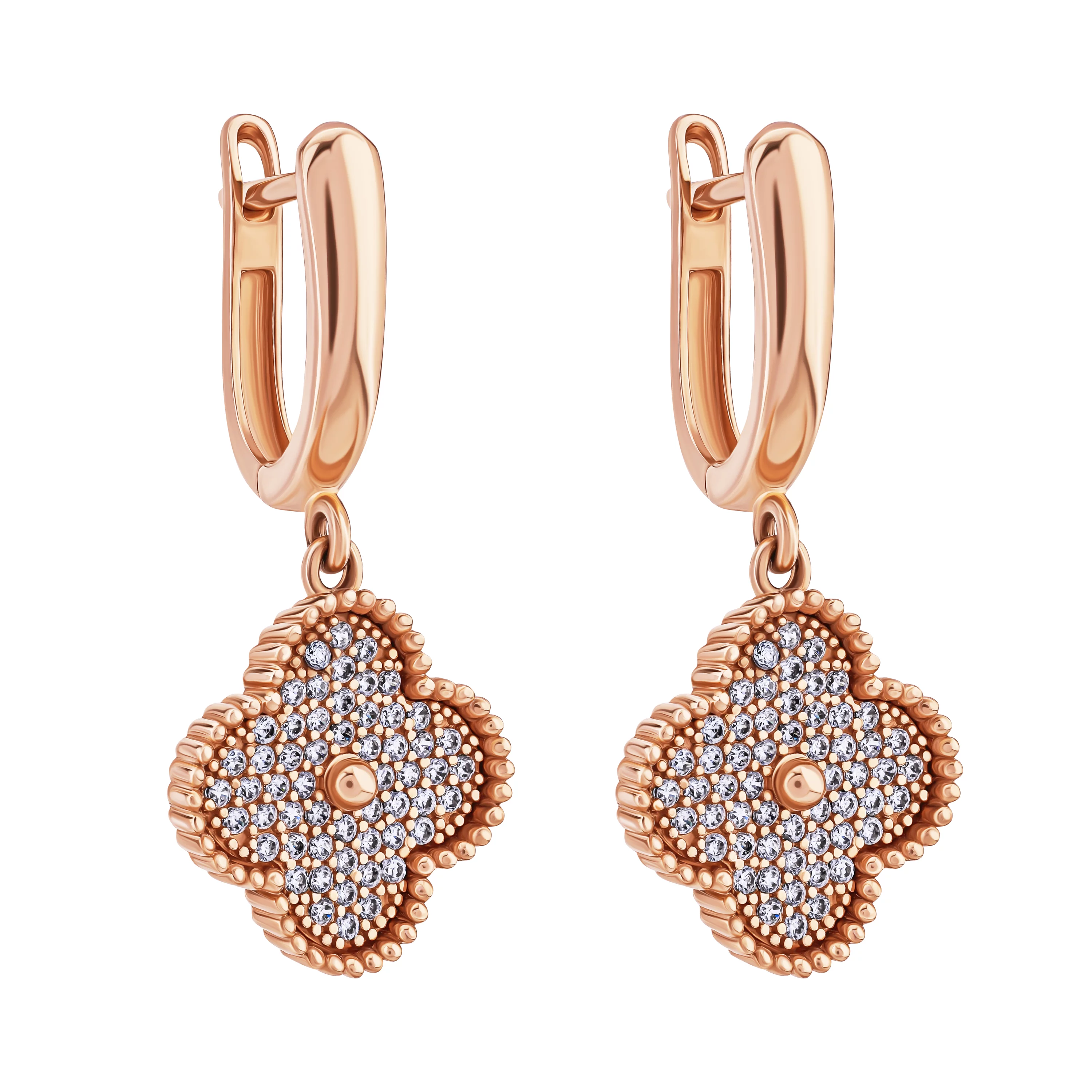 Сережки с подвесками "Клевер" с фианитами из красного золота - 1745094