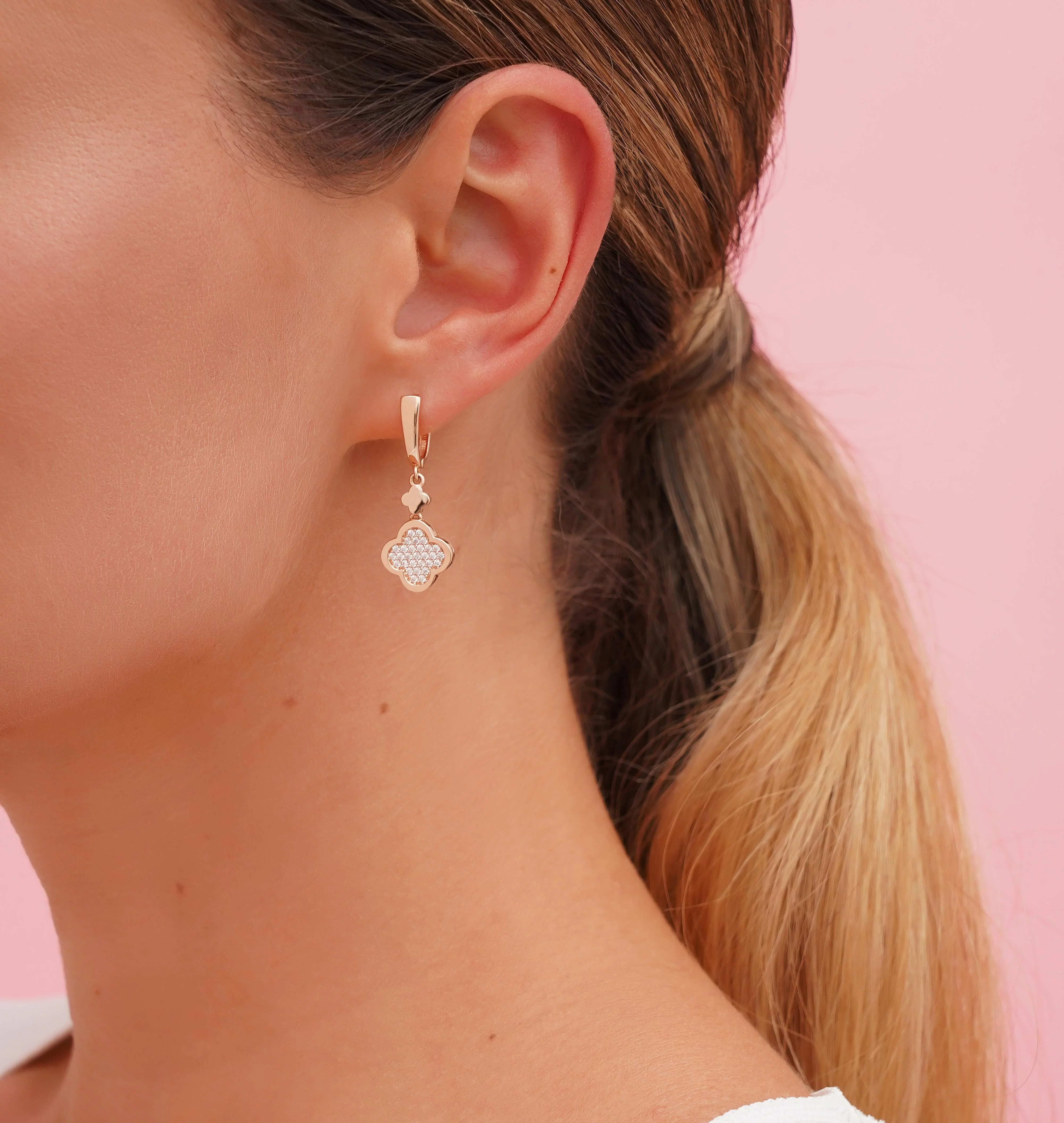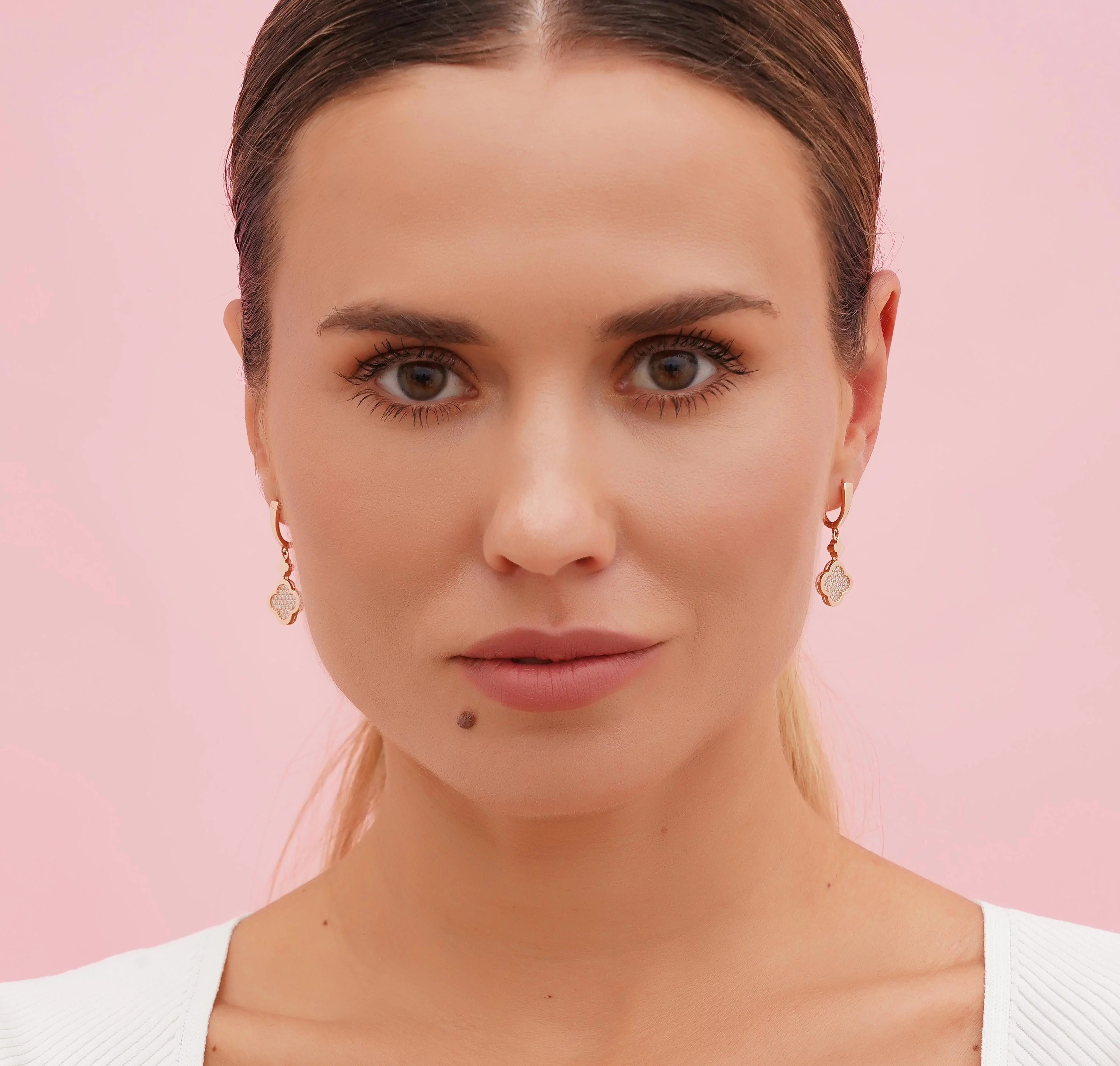 Серьги с подвесом "Клевер" из лимонного золота с перламутром - 1823454