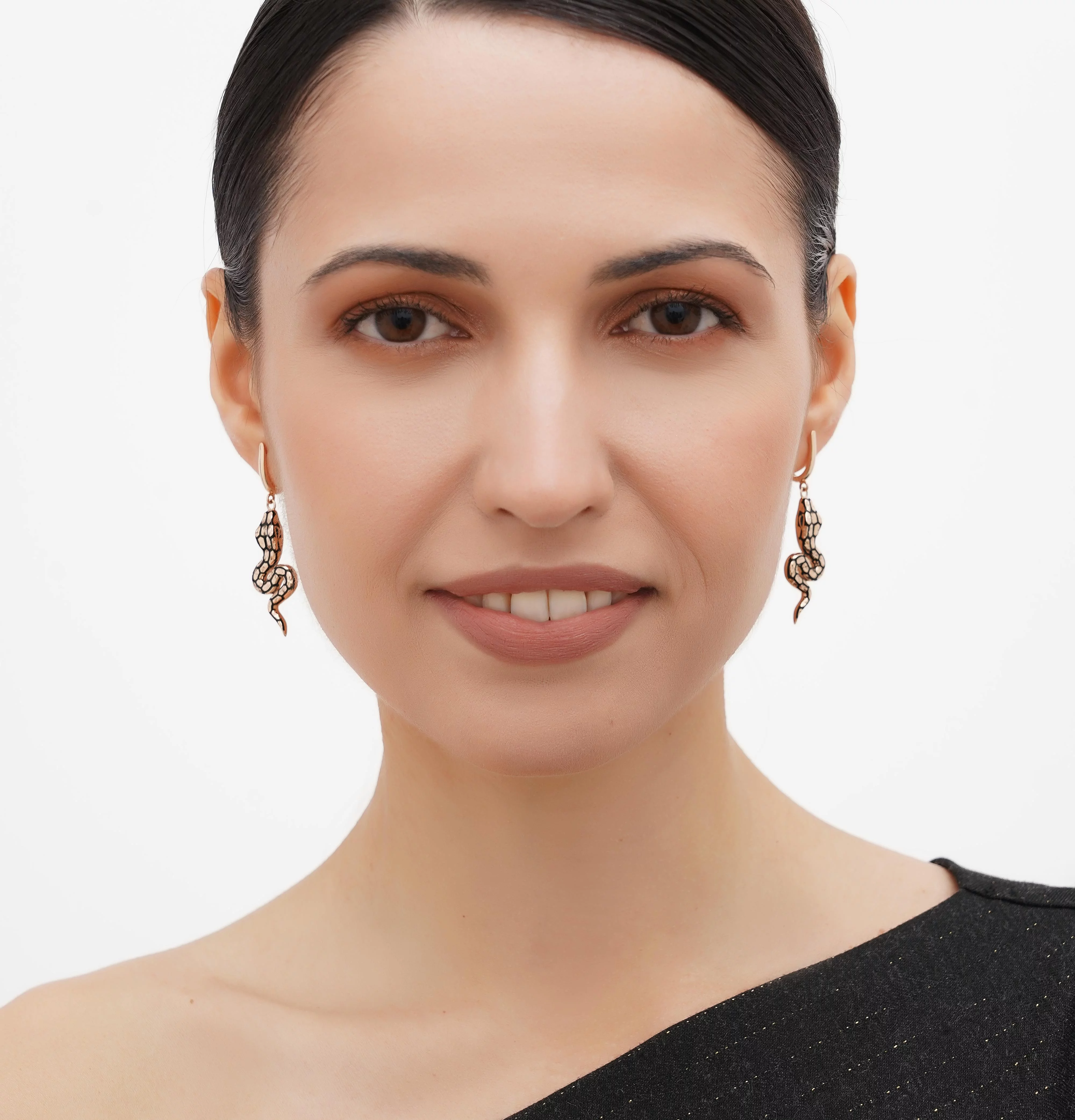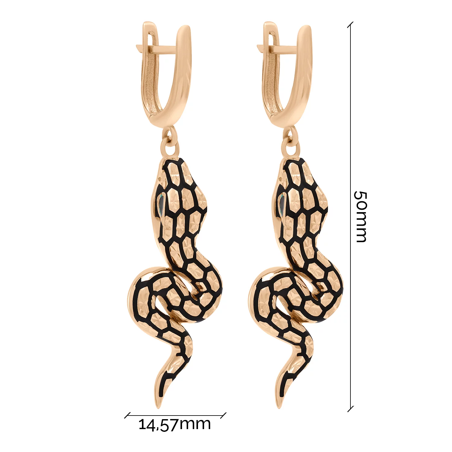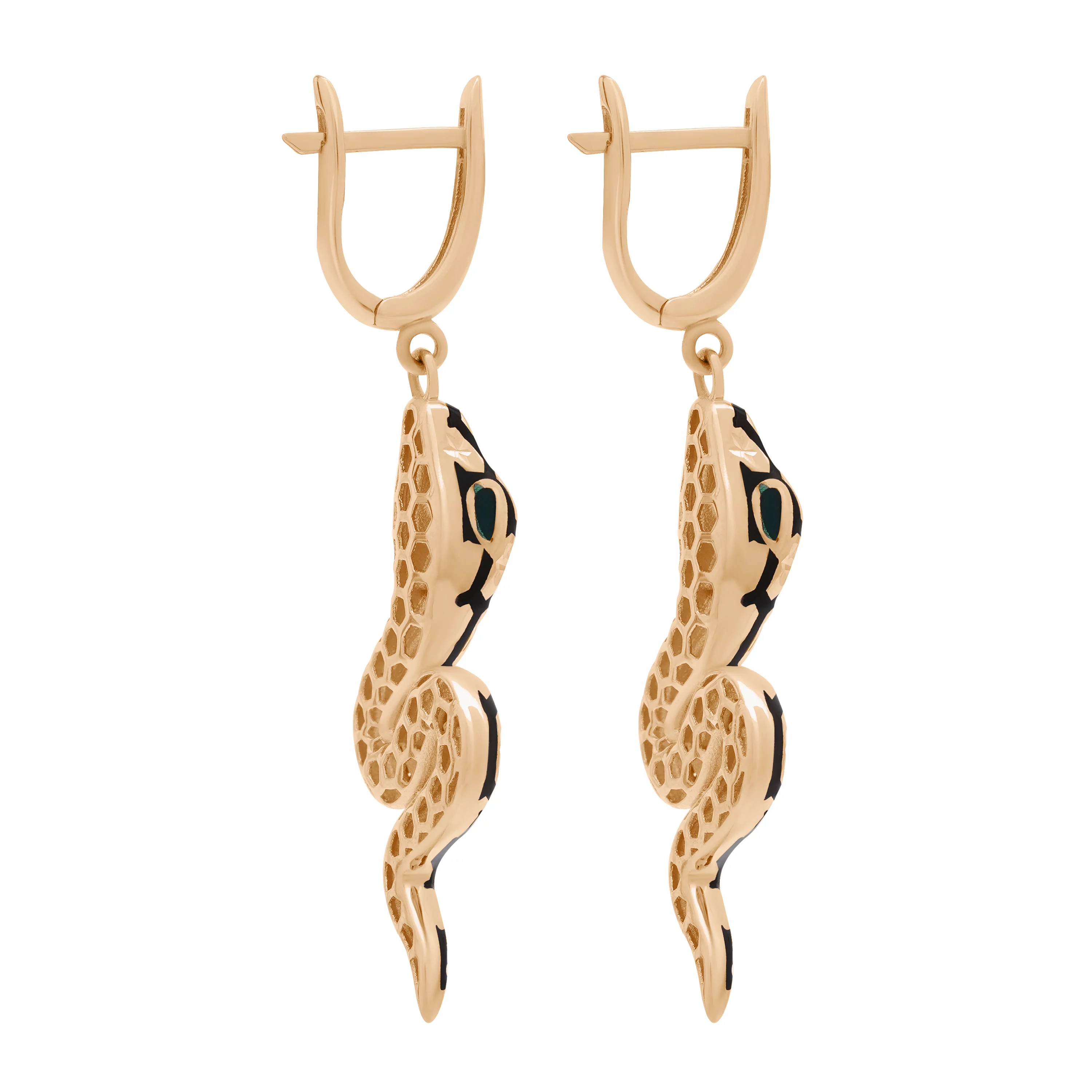 Сережки с подвесками "Змея" из красного золота - 1657719