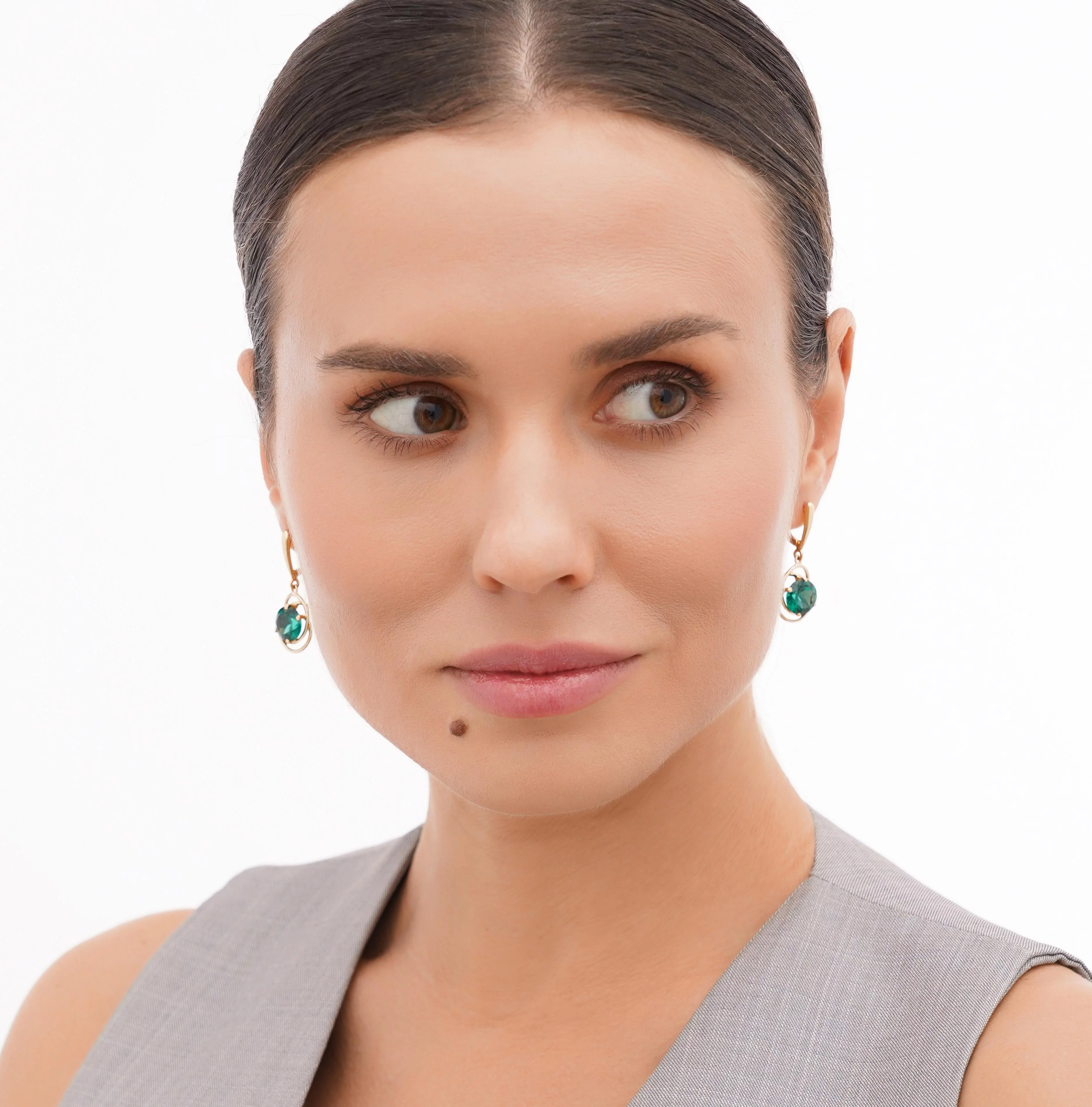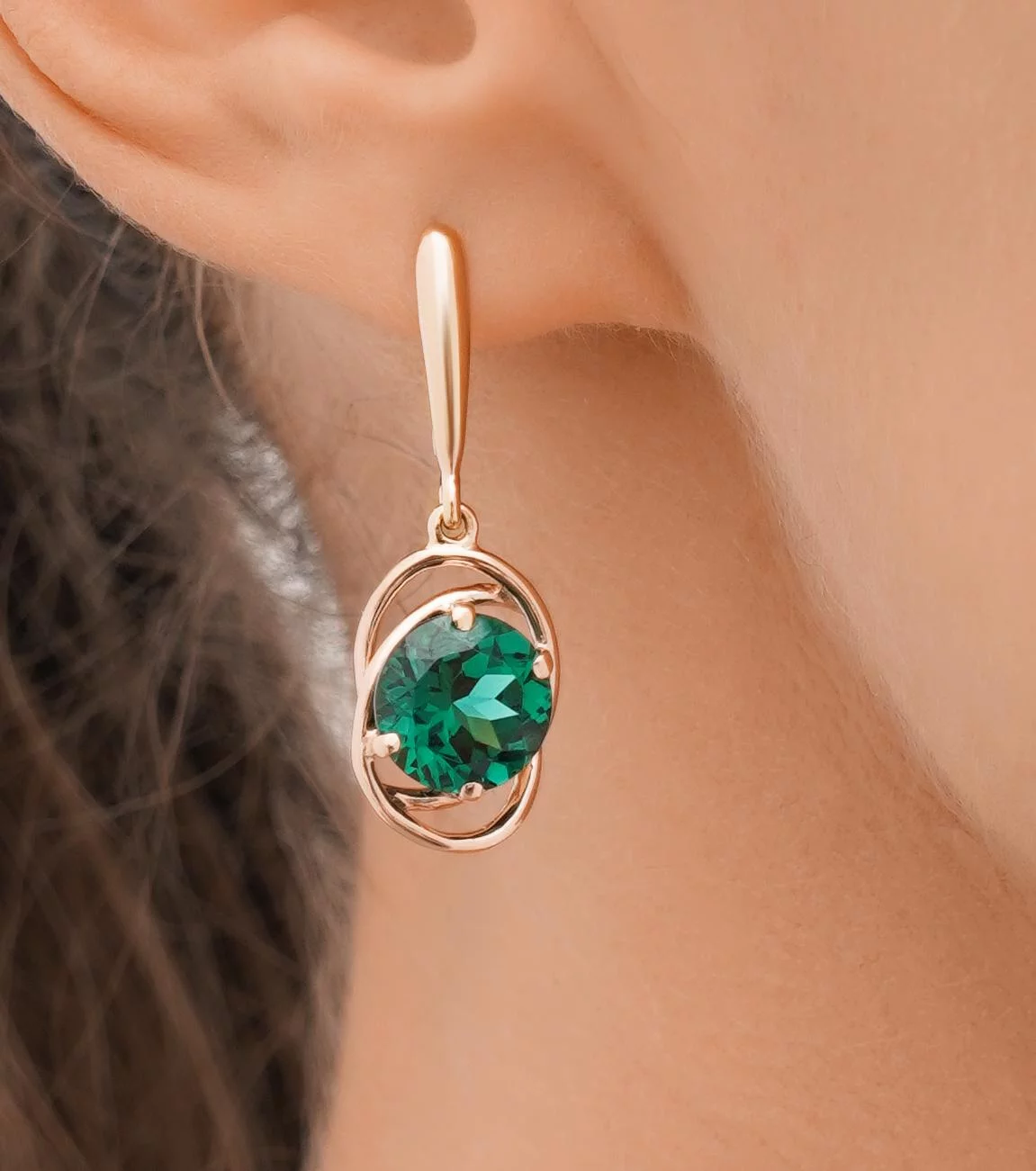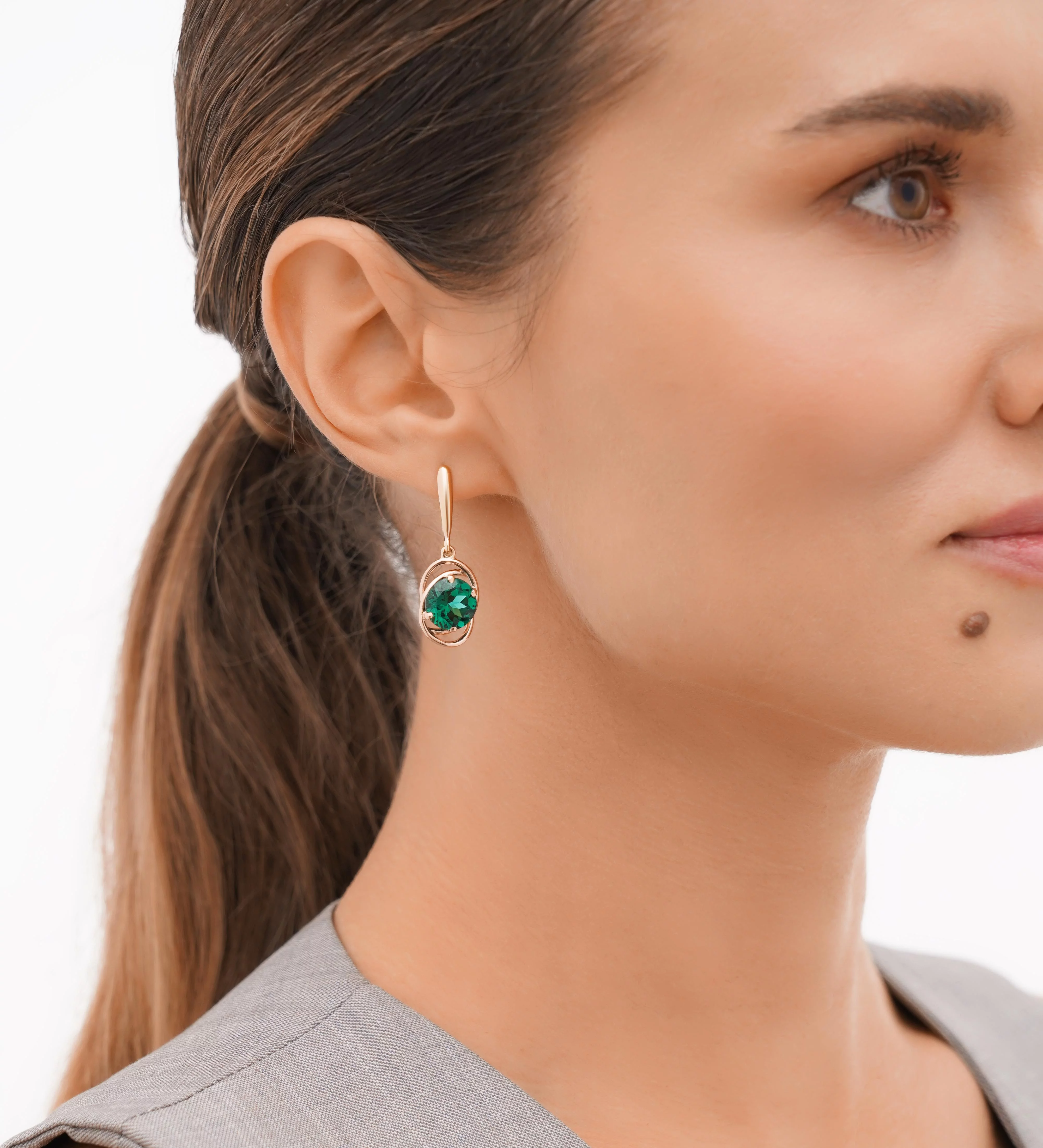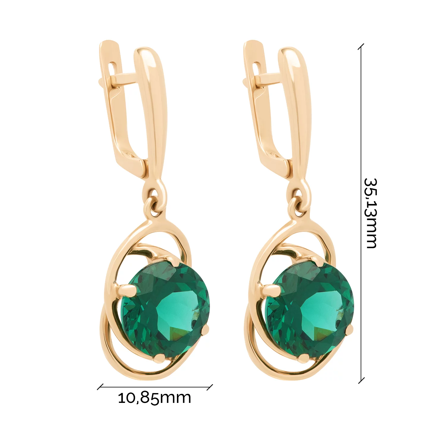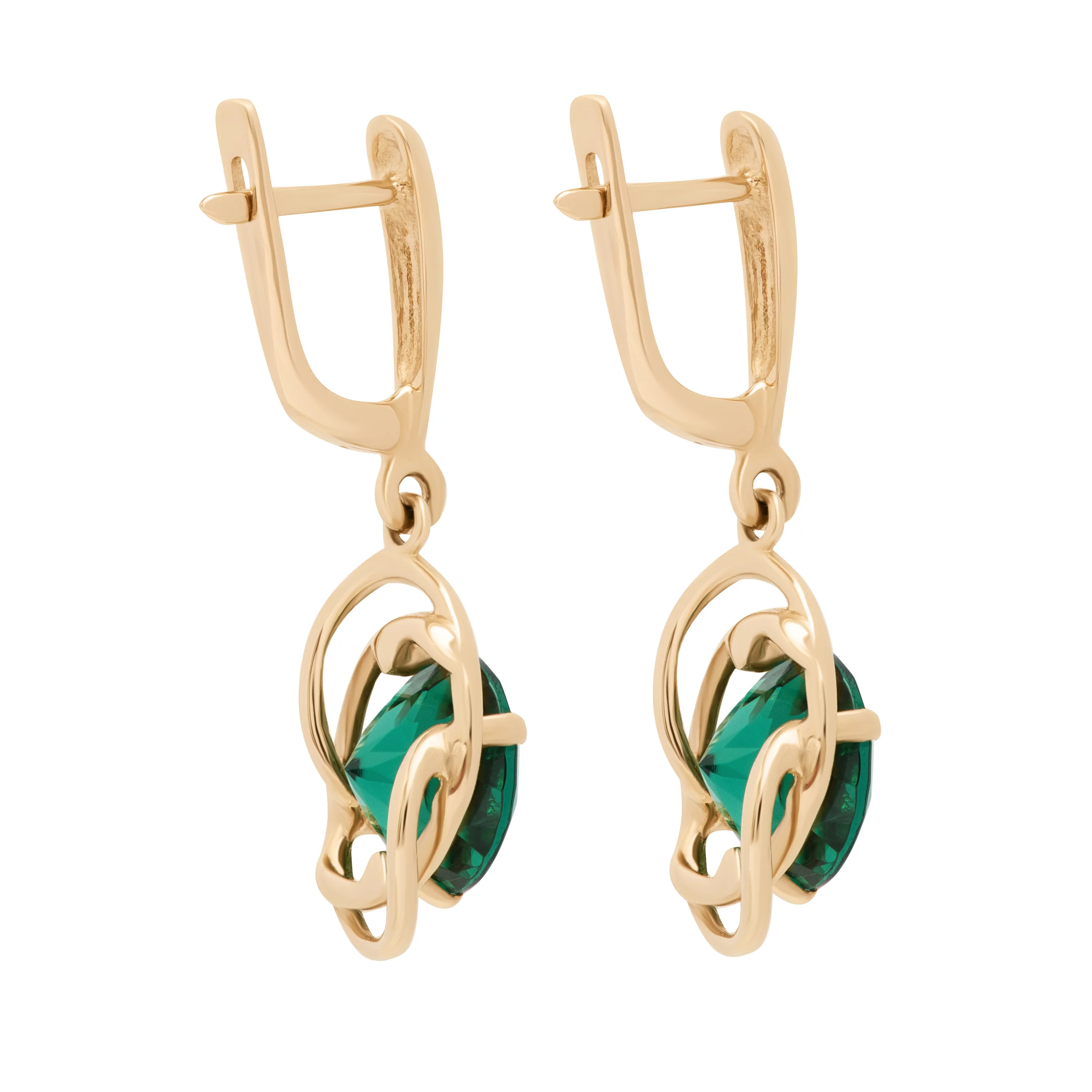 Сережки из красного золота с подвесным турмалином и фианитами - 1687879