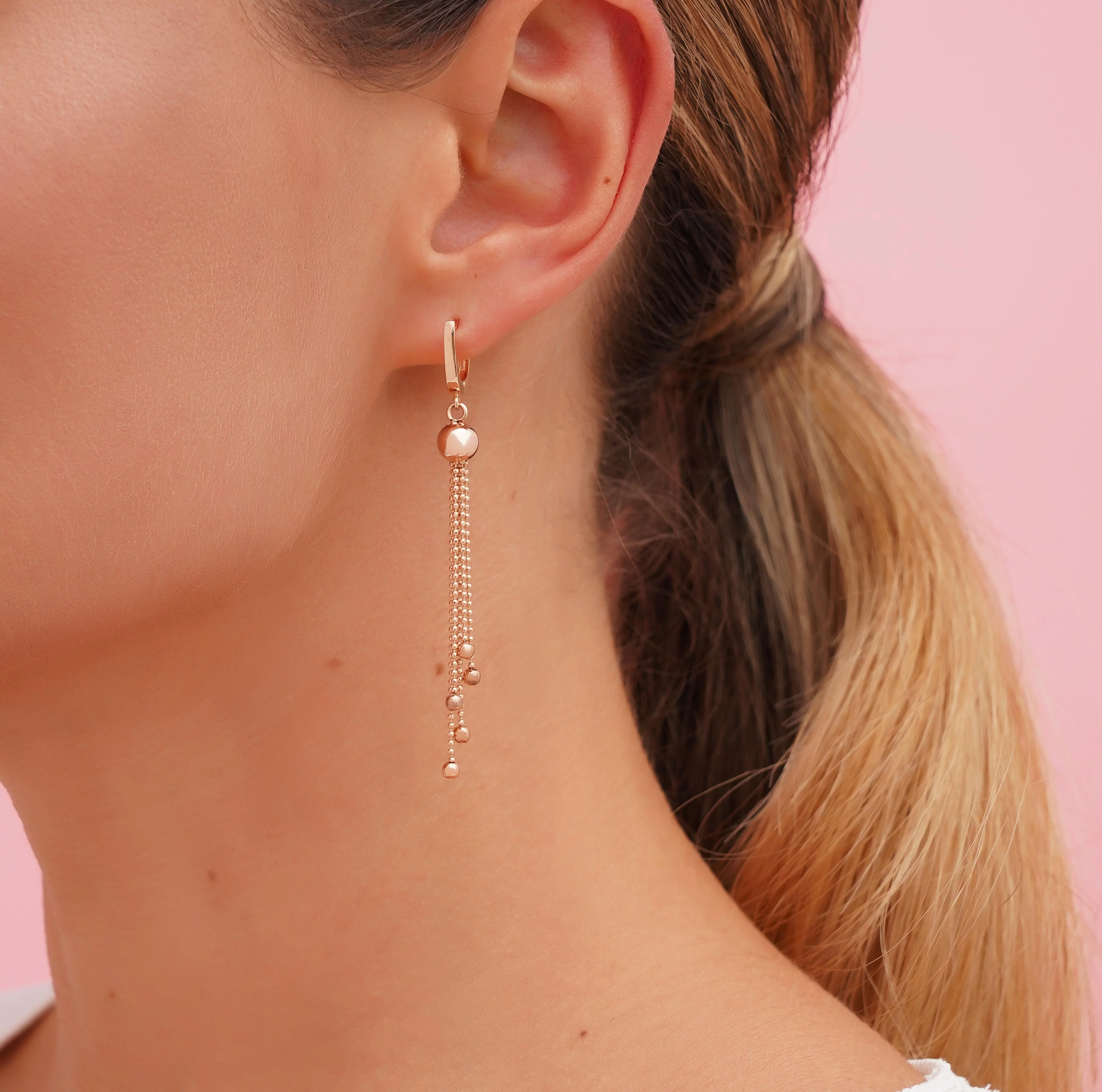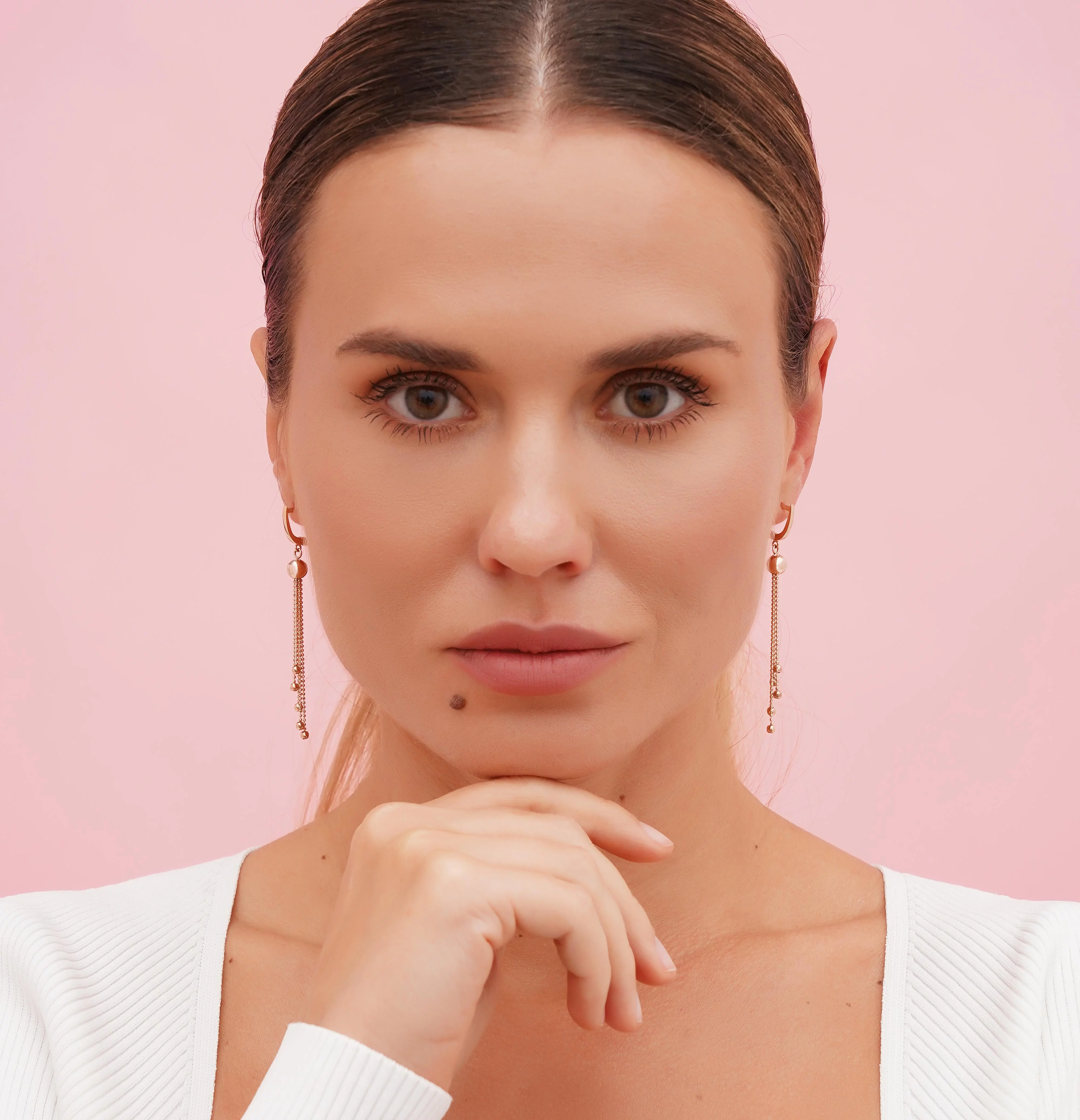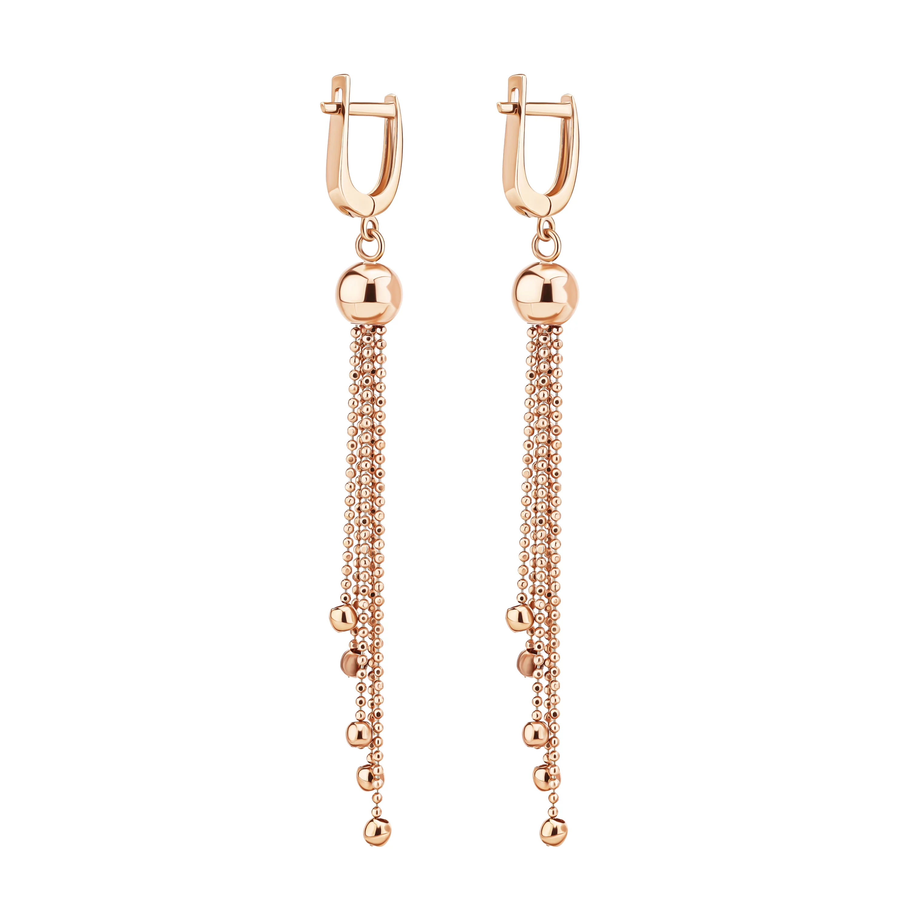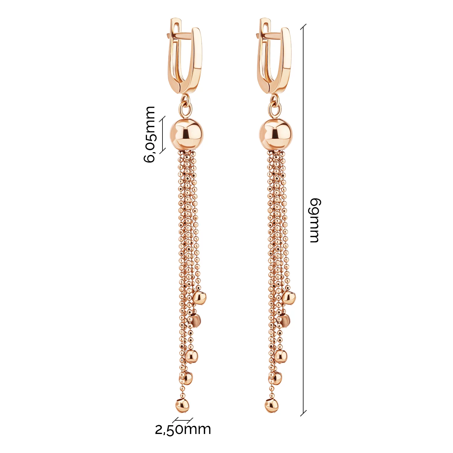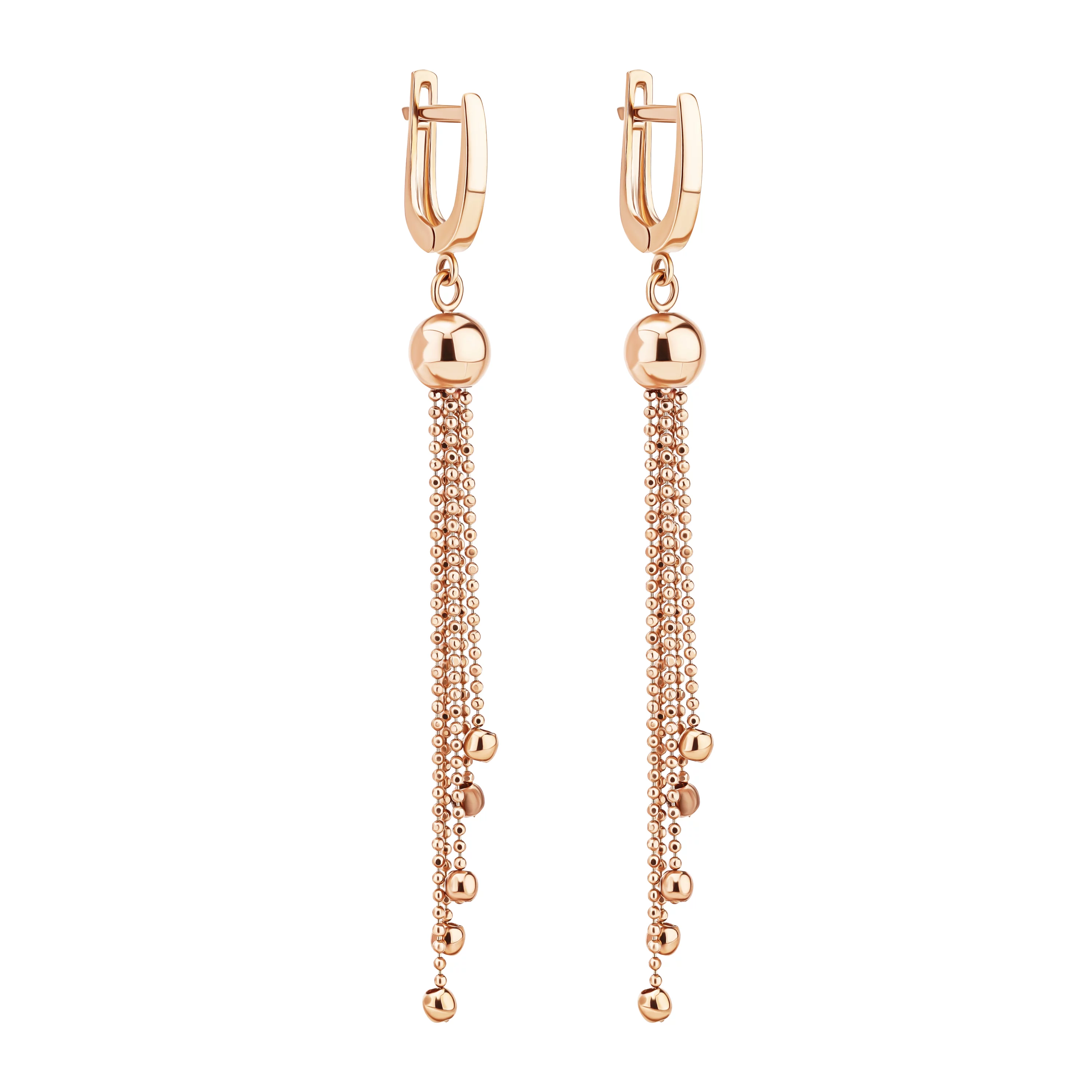 Сережки из красного золота в минималистичном стиле с цепочками - 1942678