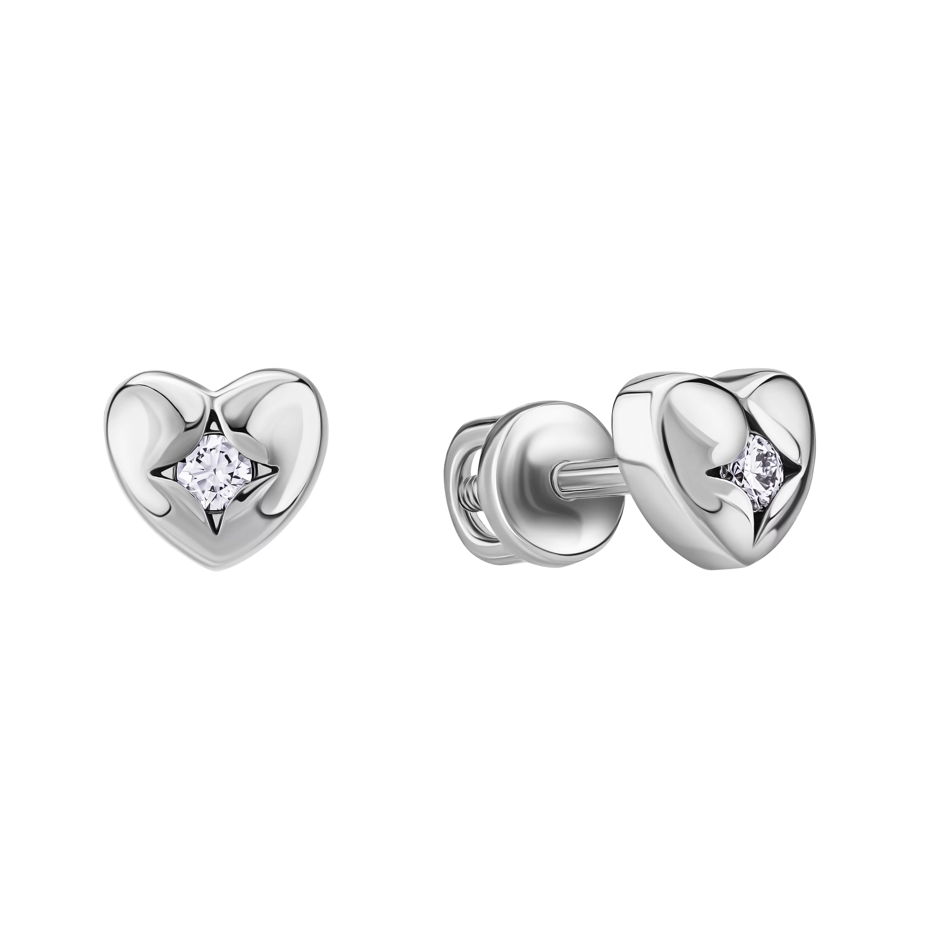Серьги-гвоздики из белого белого с бриллиантом в стиле минимализм - 1818556