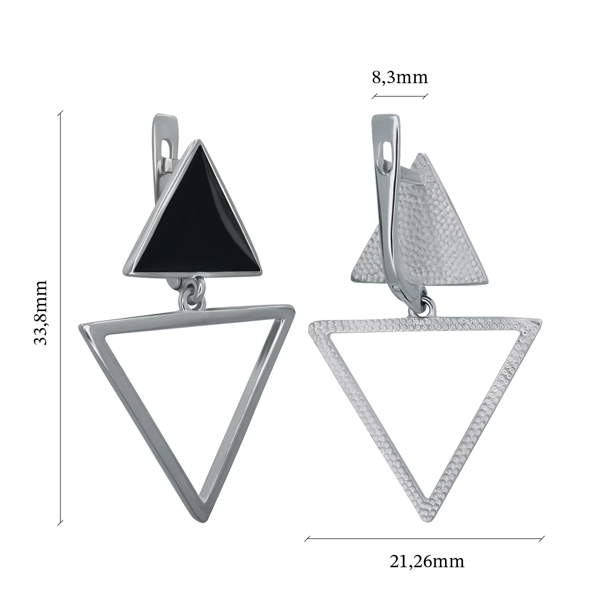 Сережки серебряные с эмалью с подвесами "Треугольники" - 907528