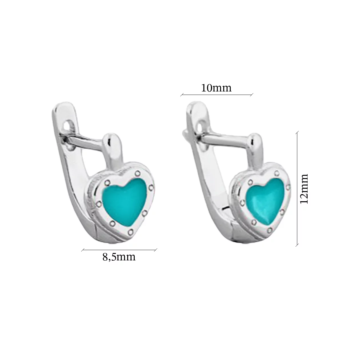 Сережки серебряные с эмалью "Сердечки" - 962258