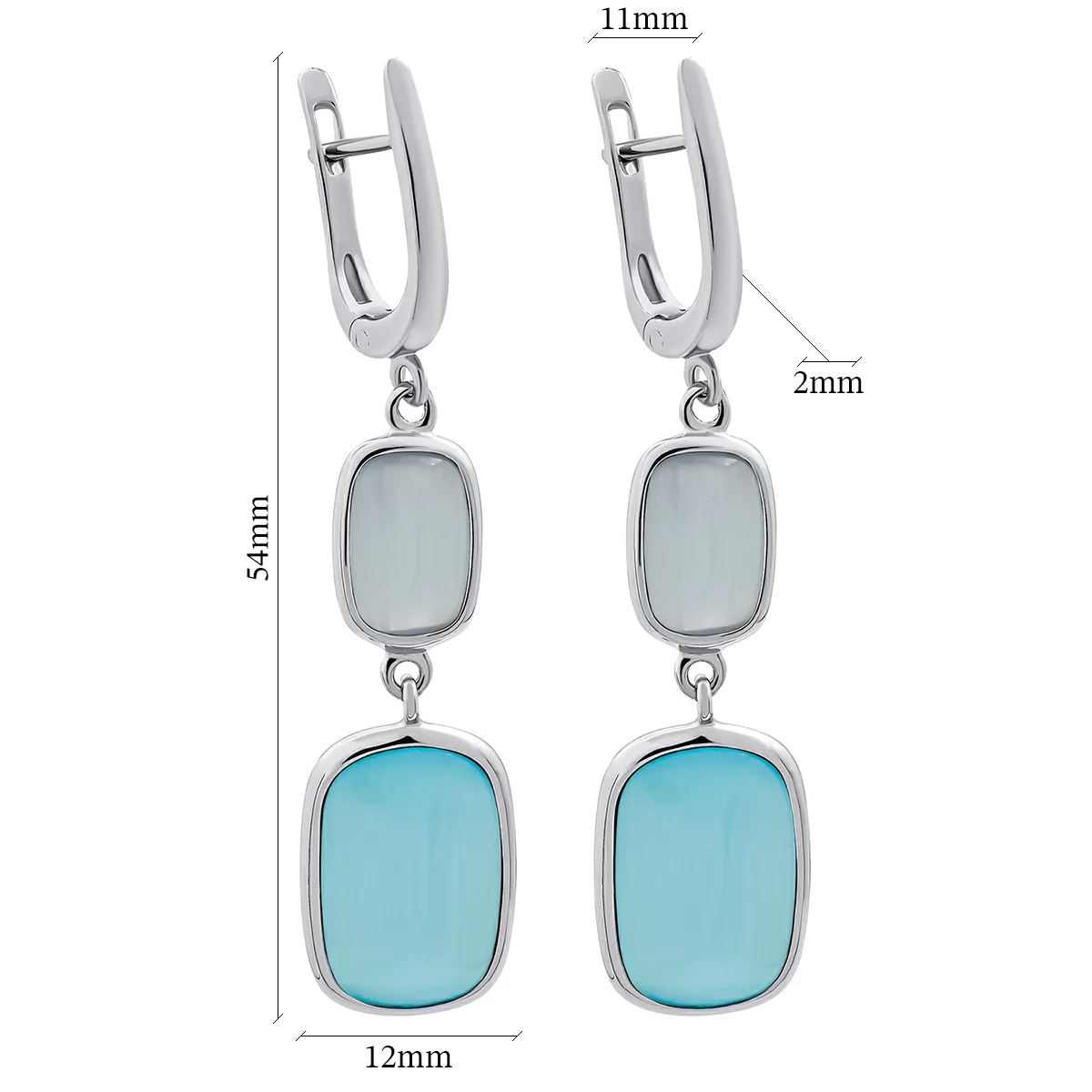 Сережки серебряные с подвесками с кошачьим глазом - 1269084