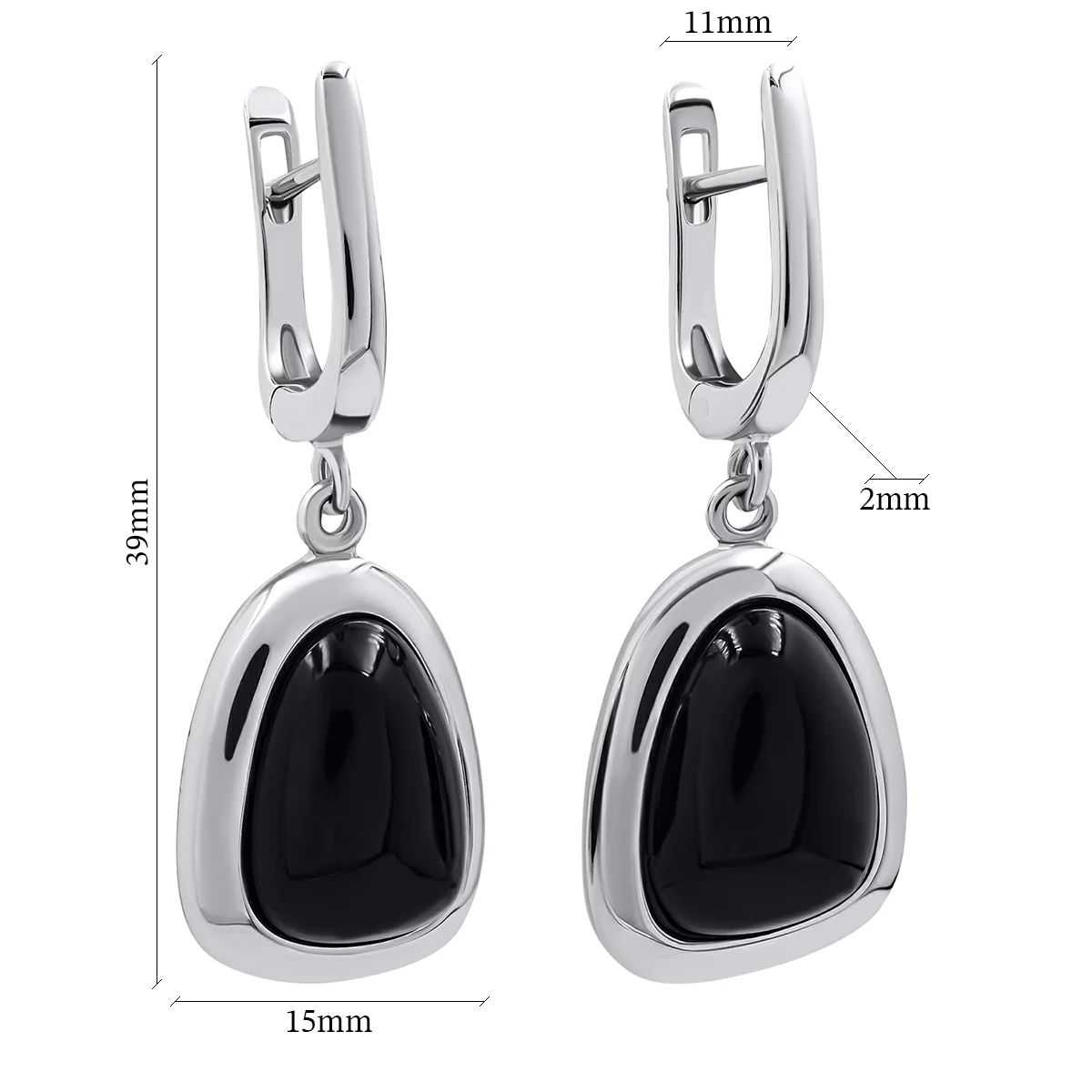 Сережки серебряные с подвесками с ониксом - 1269079