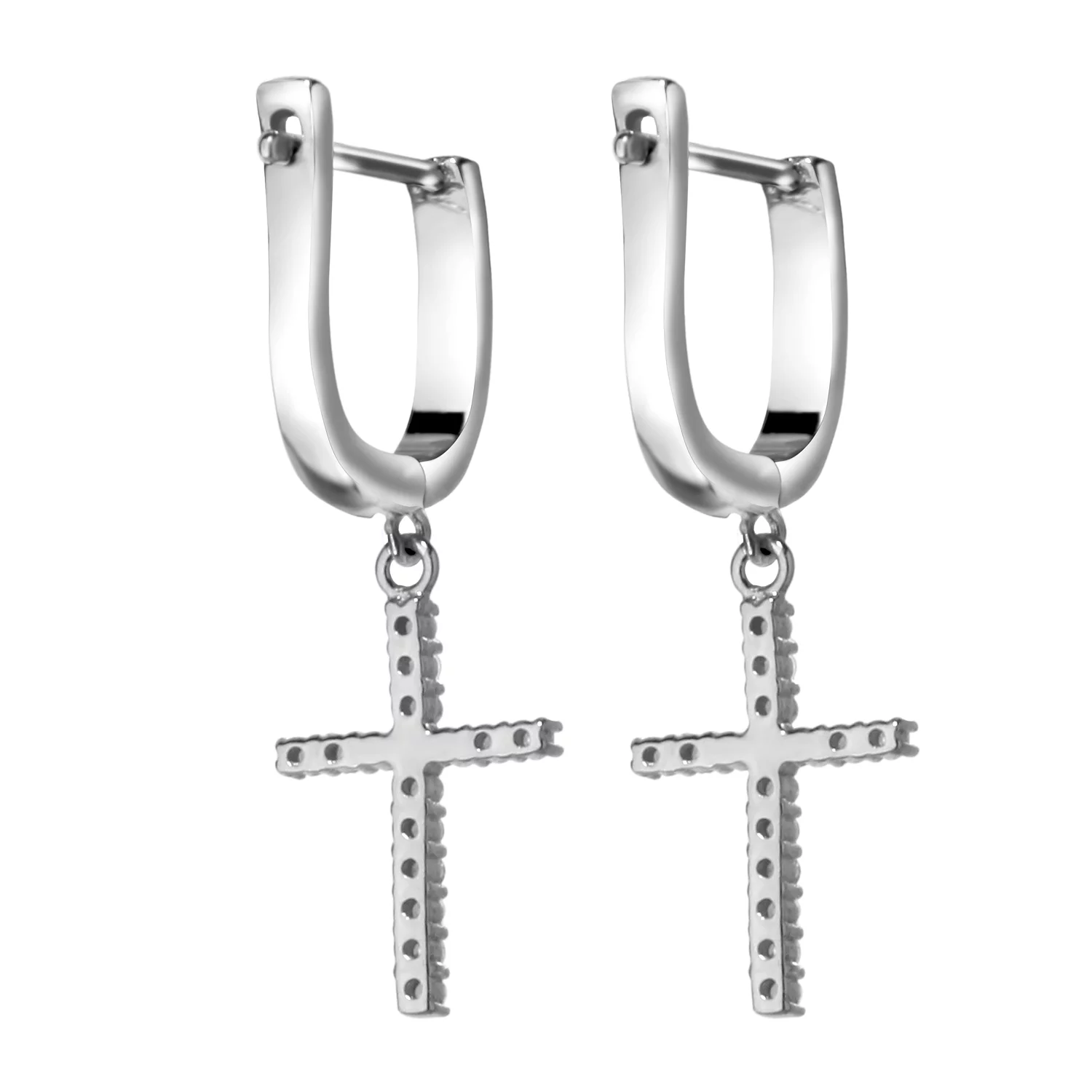 Сережки серебряные с фианитом с подвесками "Крестики" - 959564