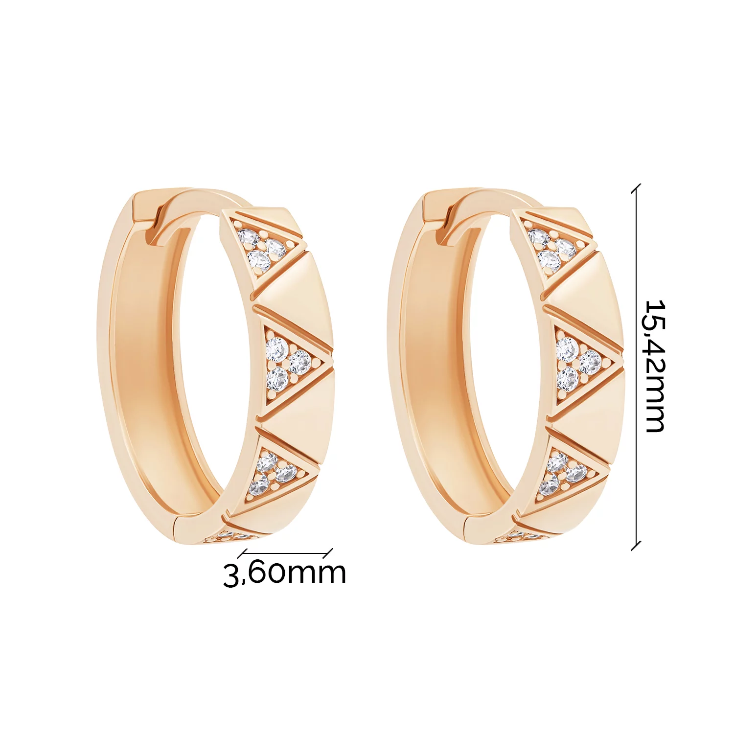 Стильные сережки из красного золота в геометрическом стиле с топазом и фианитами - 1925553