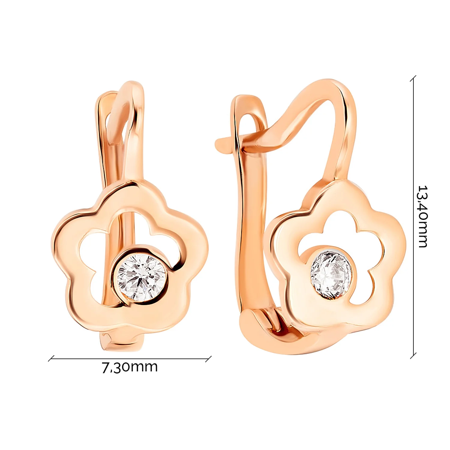 Детские сережки в форме цветка из красного золота с фианитами - 1879079