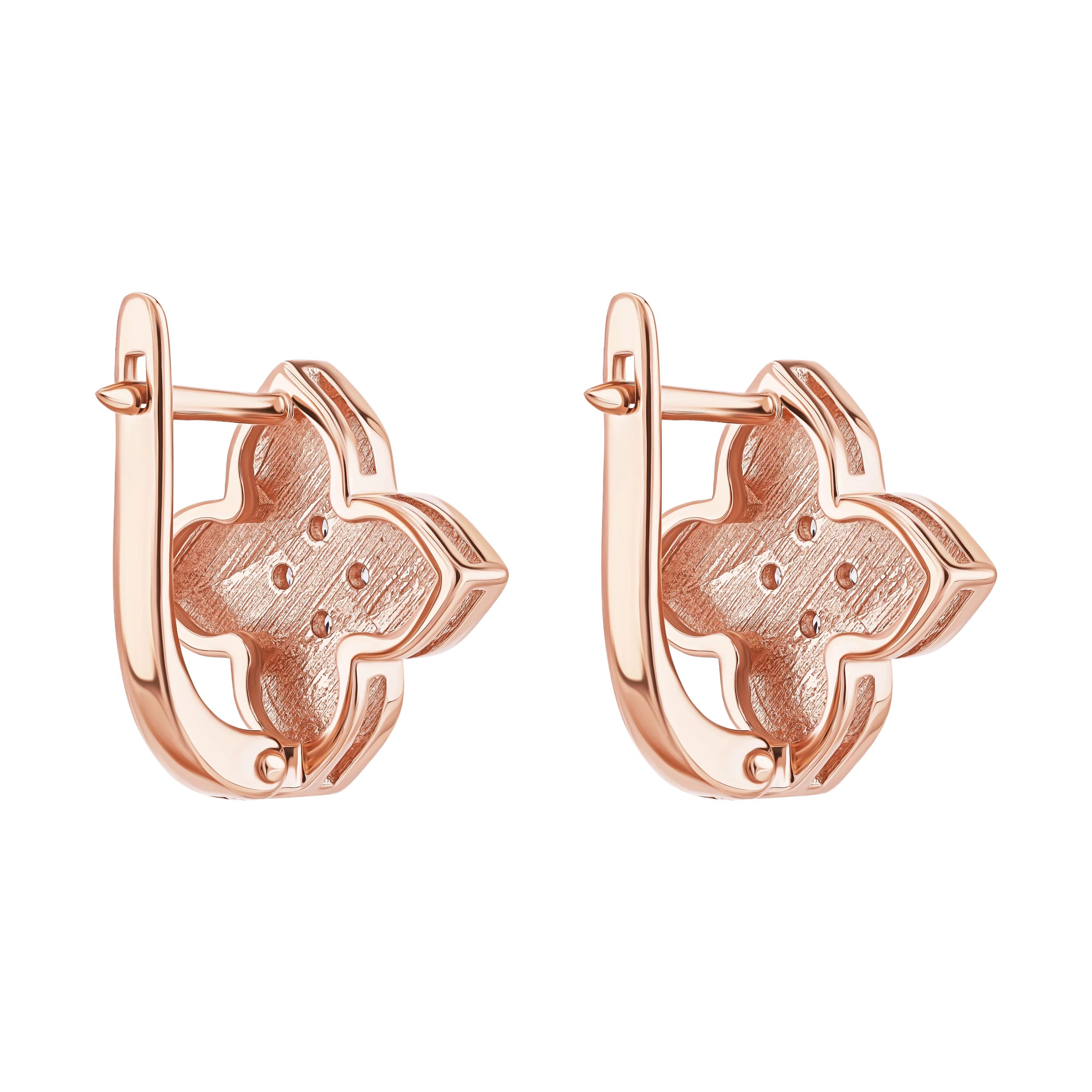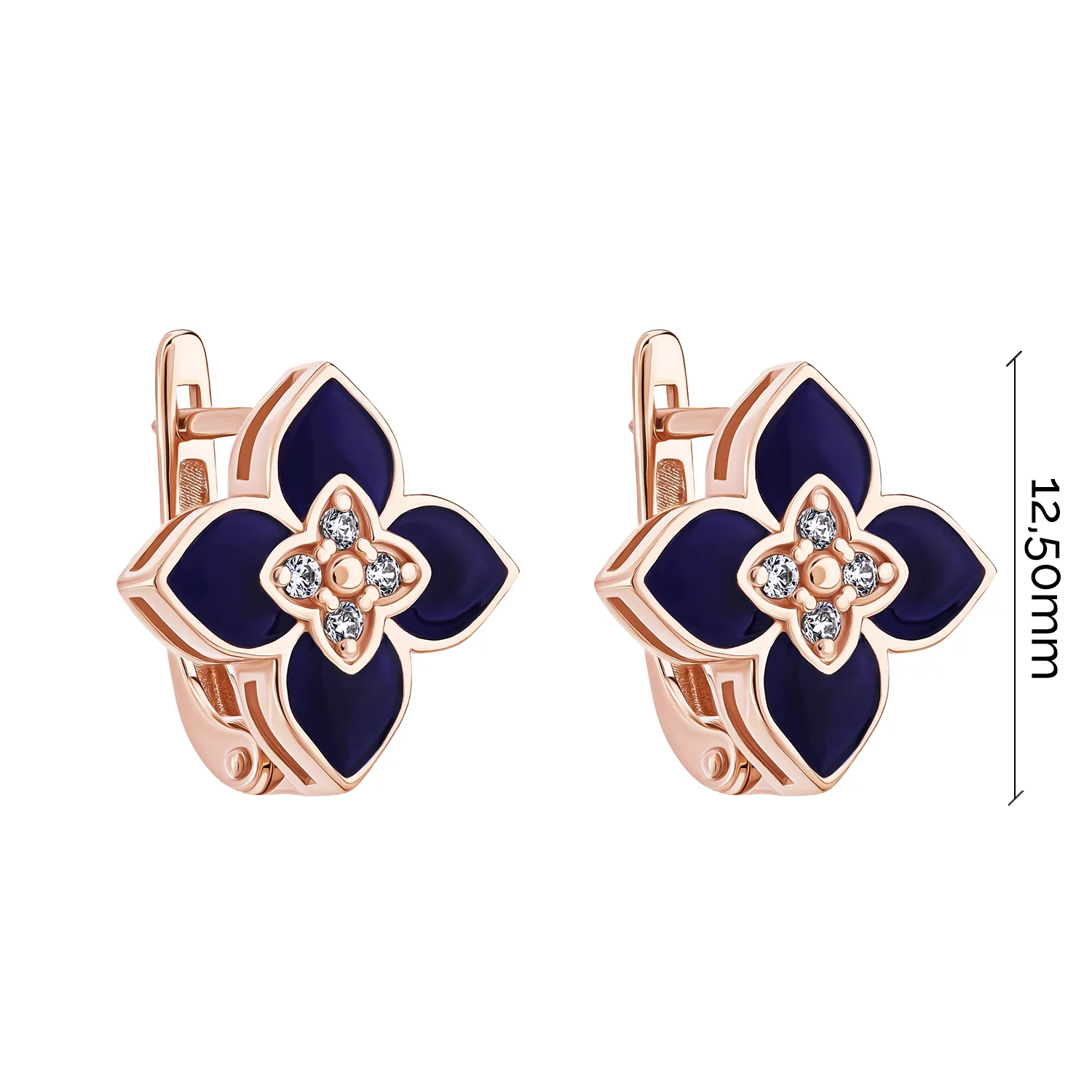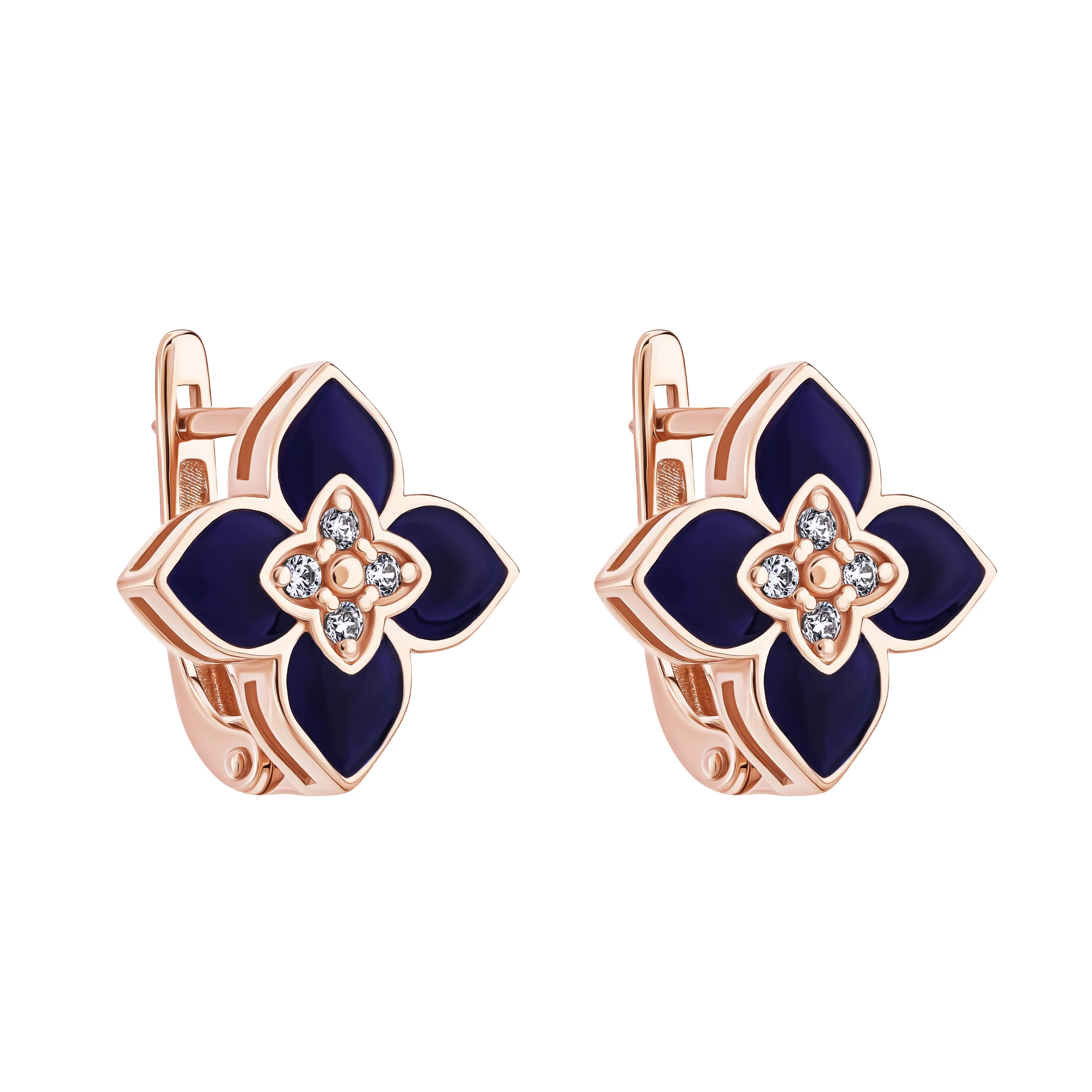 Стильные сережки-гвоздики "Флора" из красного золота с эмалью и фианитом - 1927691
