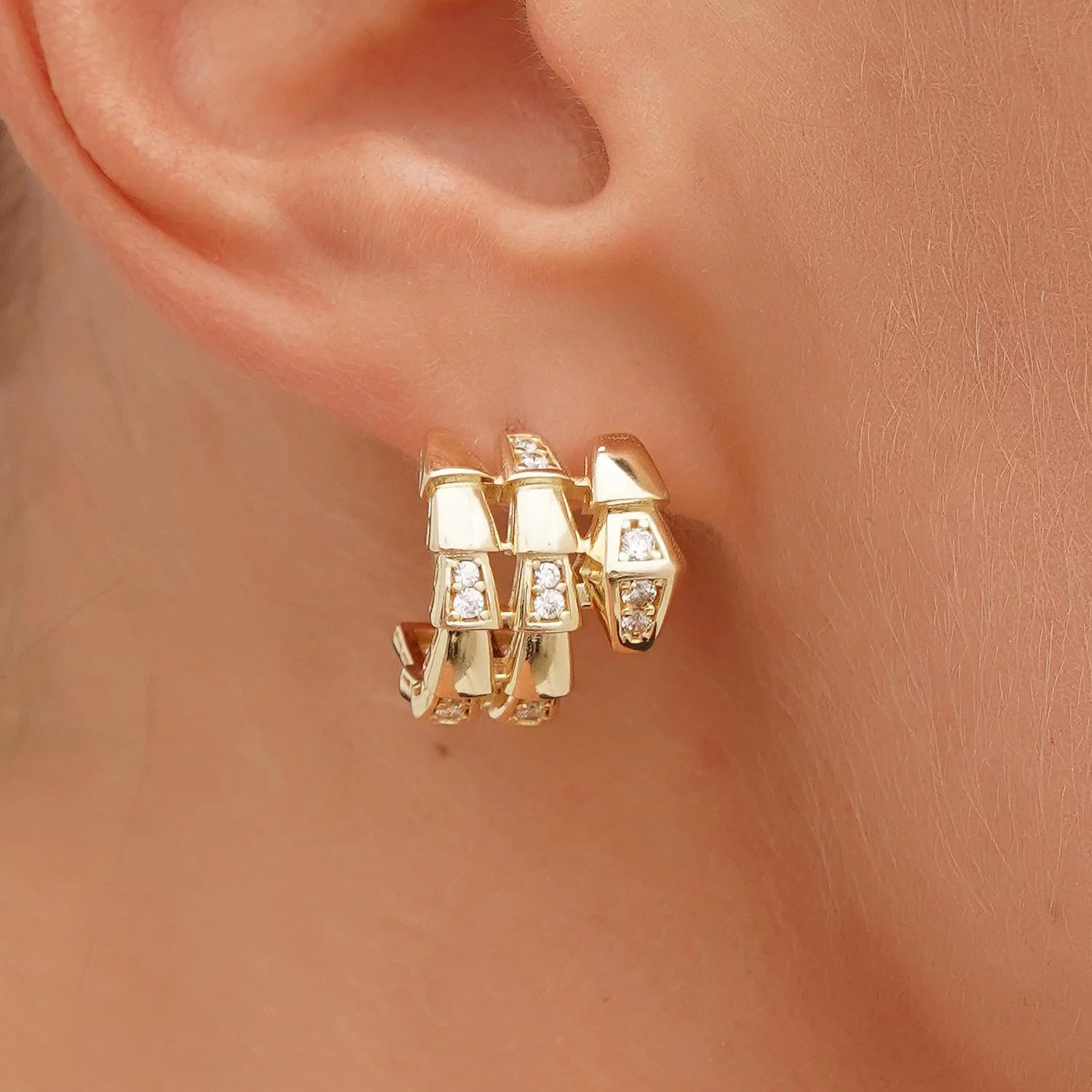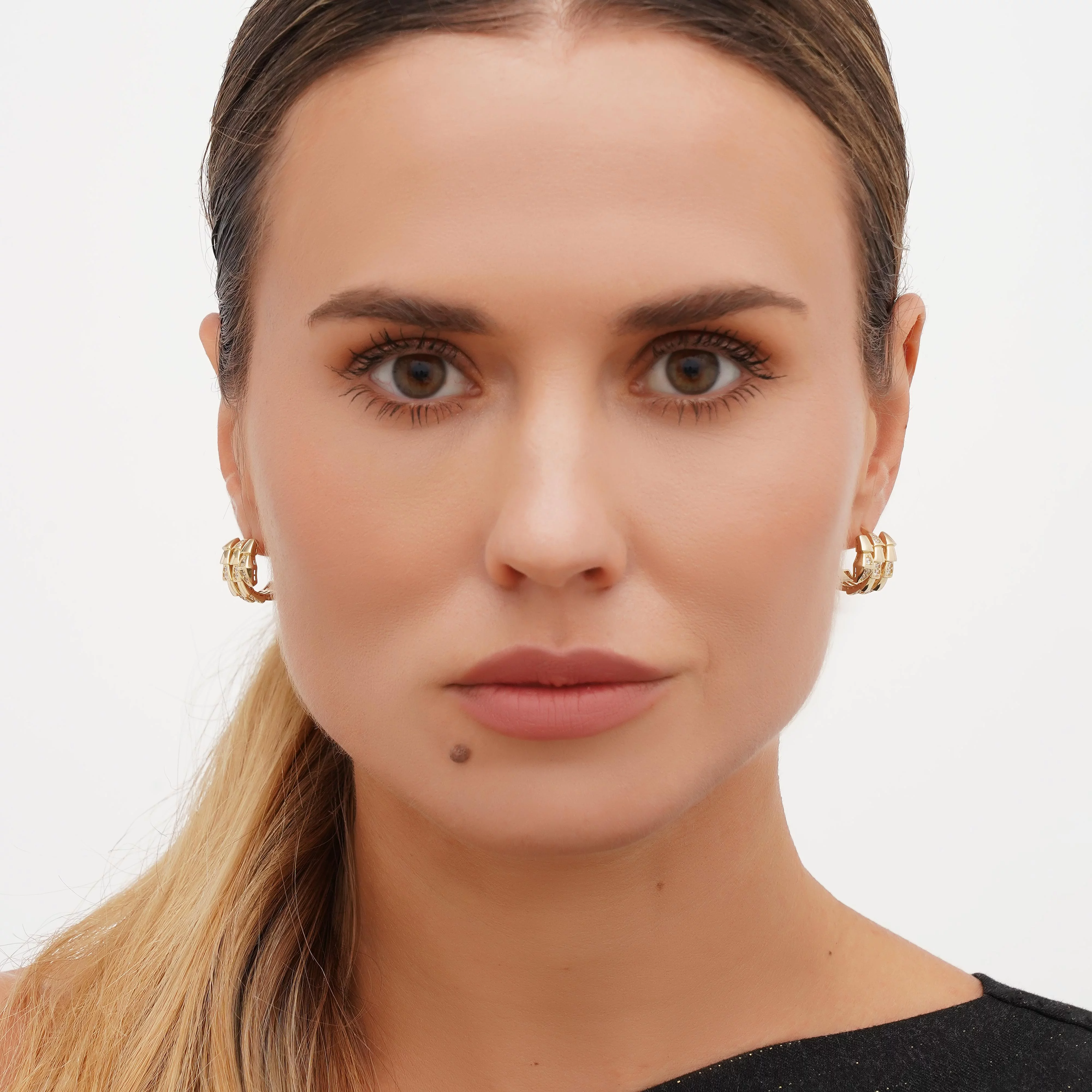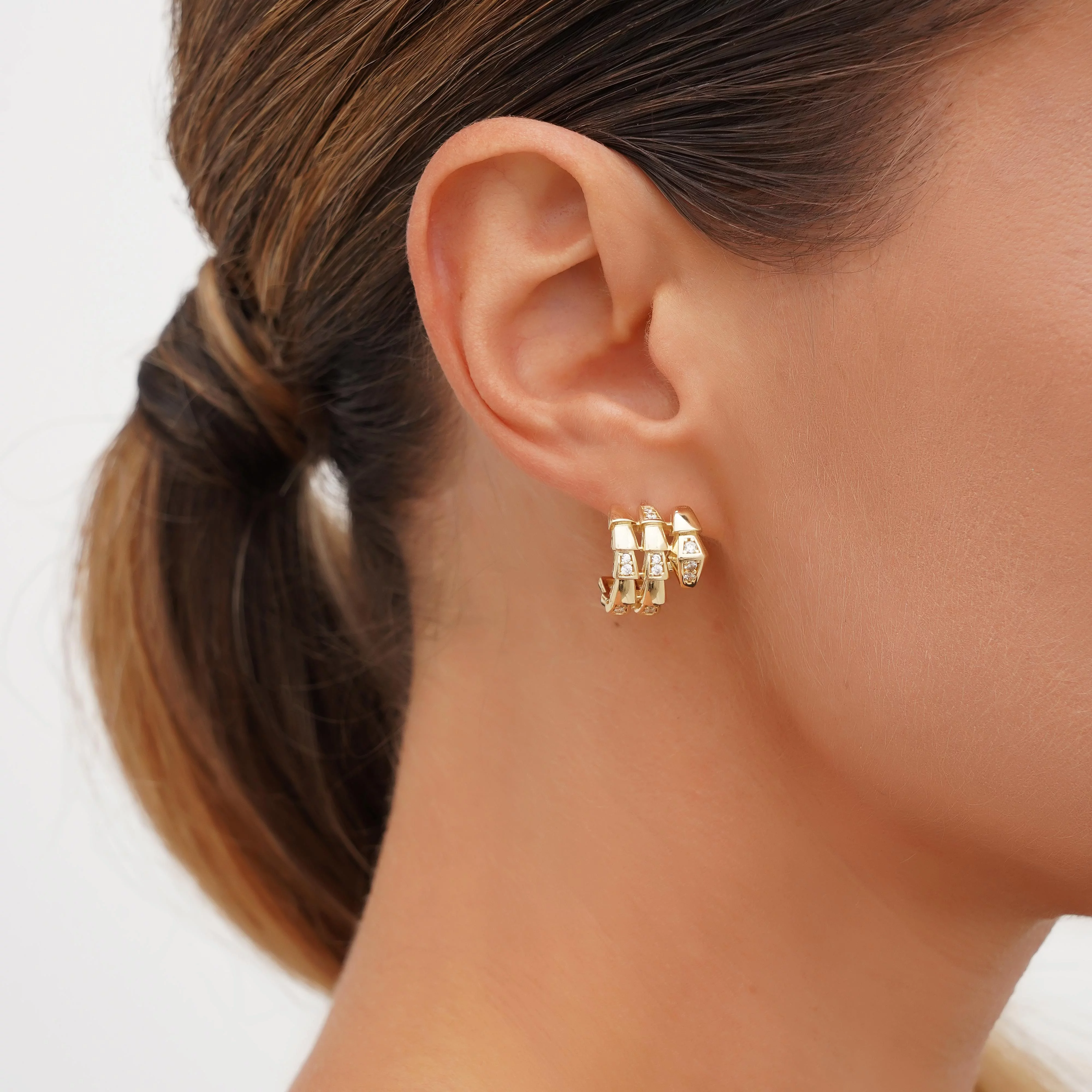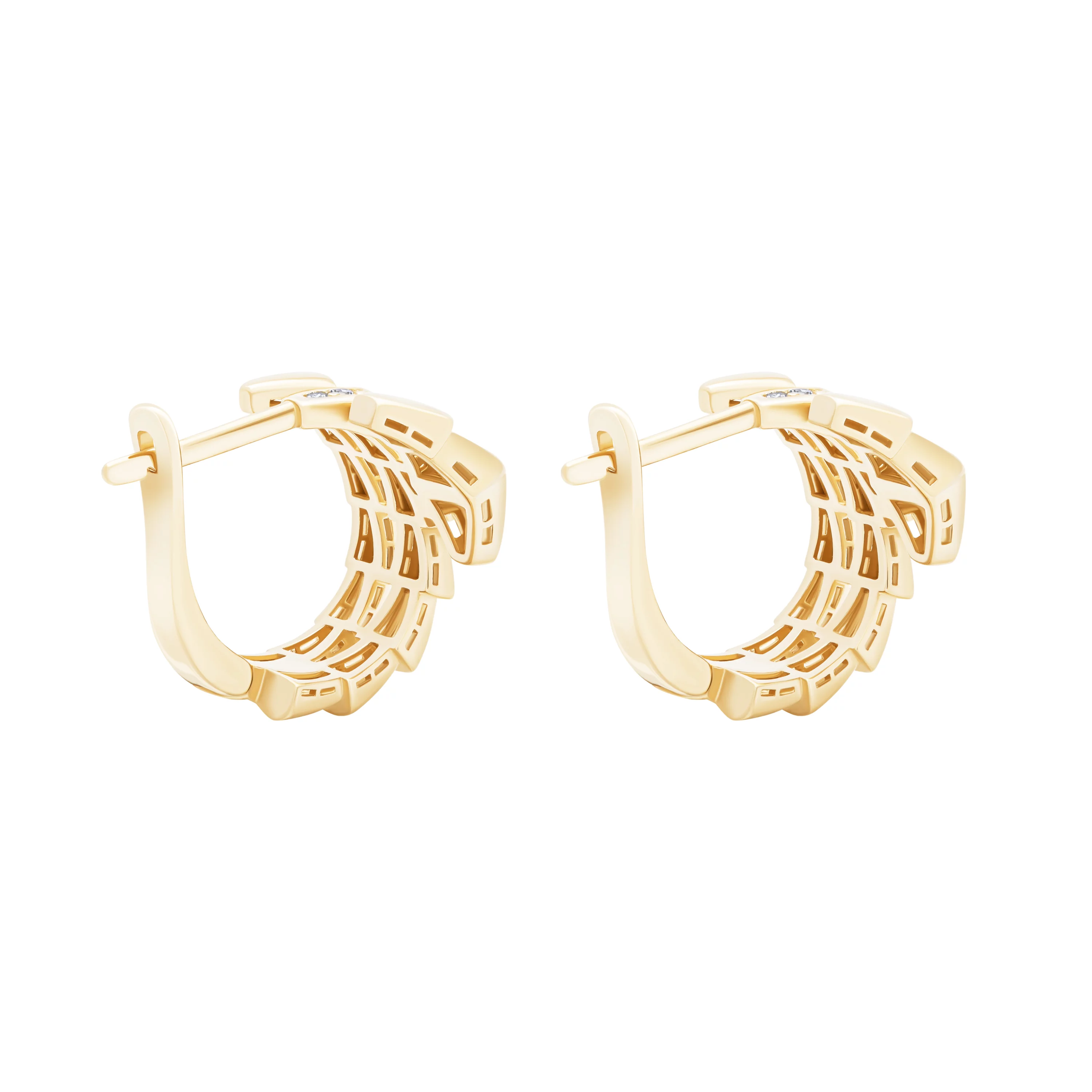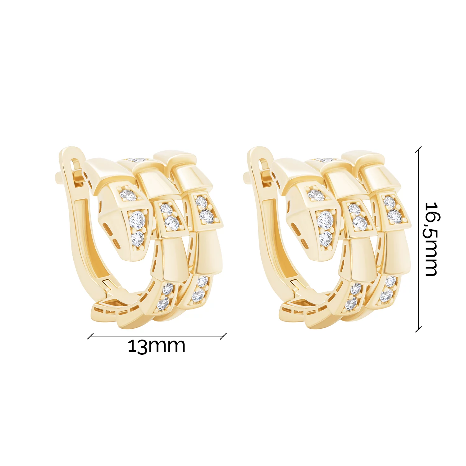 Стильные сережки с подвесами в красном золоте с эмалью и фианитом - 1928138