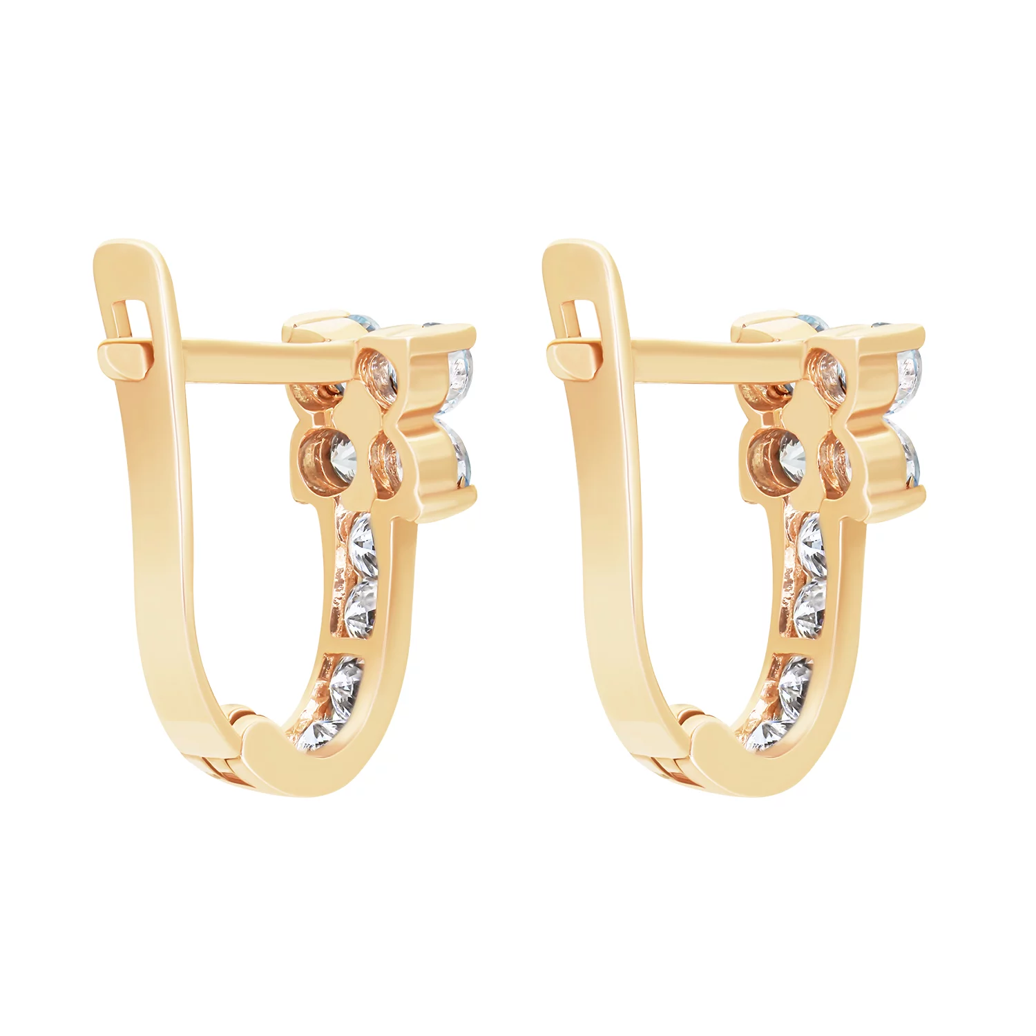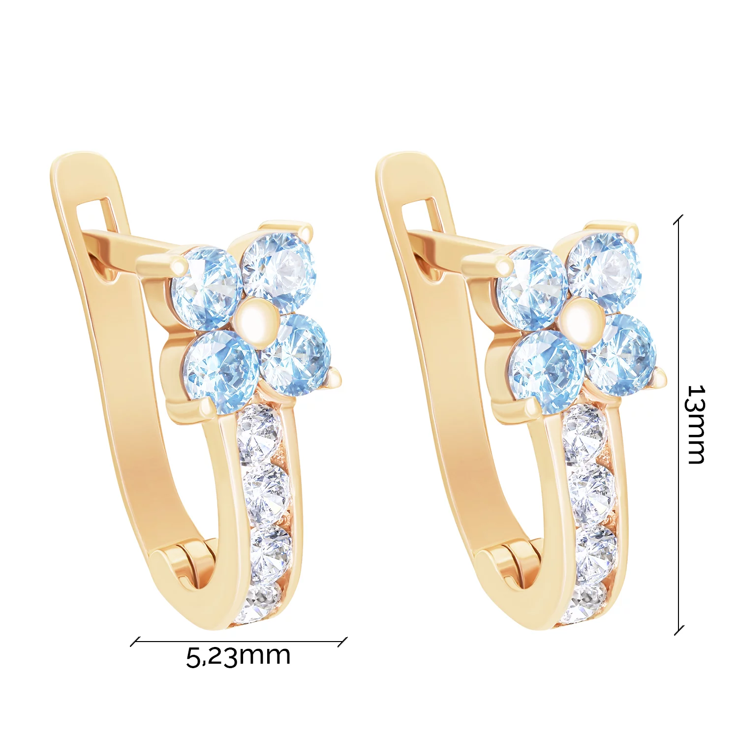 Сережки детские из красного золота с фианитом и эмалью "Цветок" - 970153