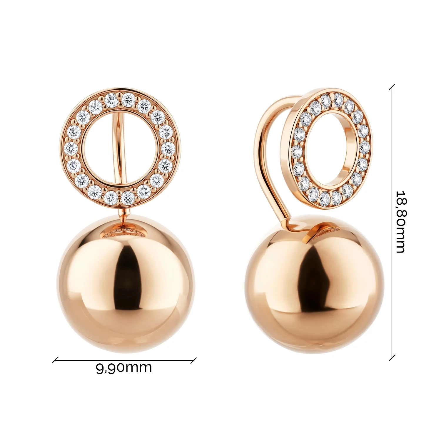 Серьги-джекеты из красного золота с фианитами - 2210736