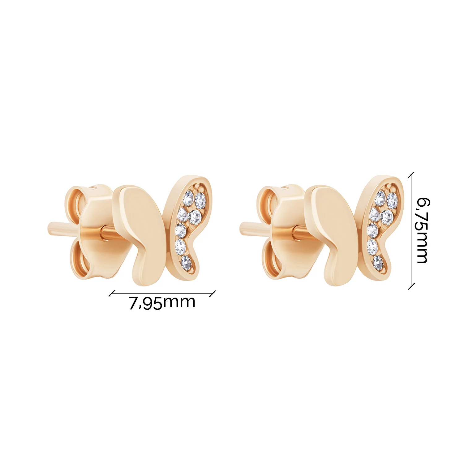 Сережки-гвоздики круглой формы из красного золота с фианитами - 1723155