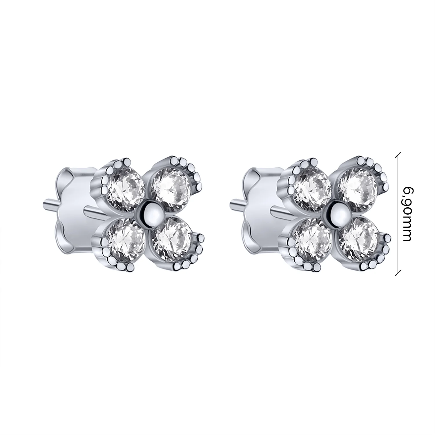 Серьги-гвоздики детские "Цветок" из серебра с фианитами - 1786964