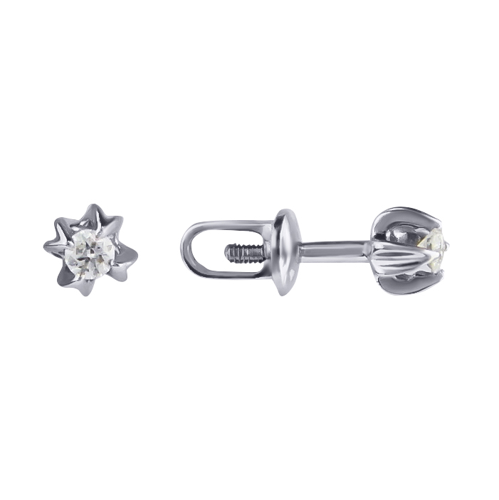 Серьги-гвоздики из белого золота с бриллиантами - 815305