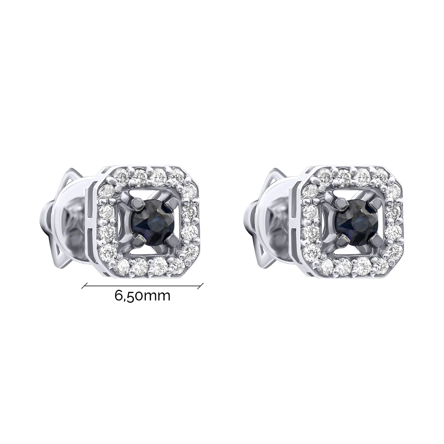 Серьги-гвоздики с россыпью бриллиантов и сапфиром в белом золоте - 1801644