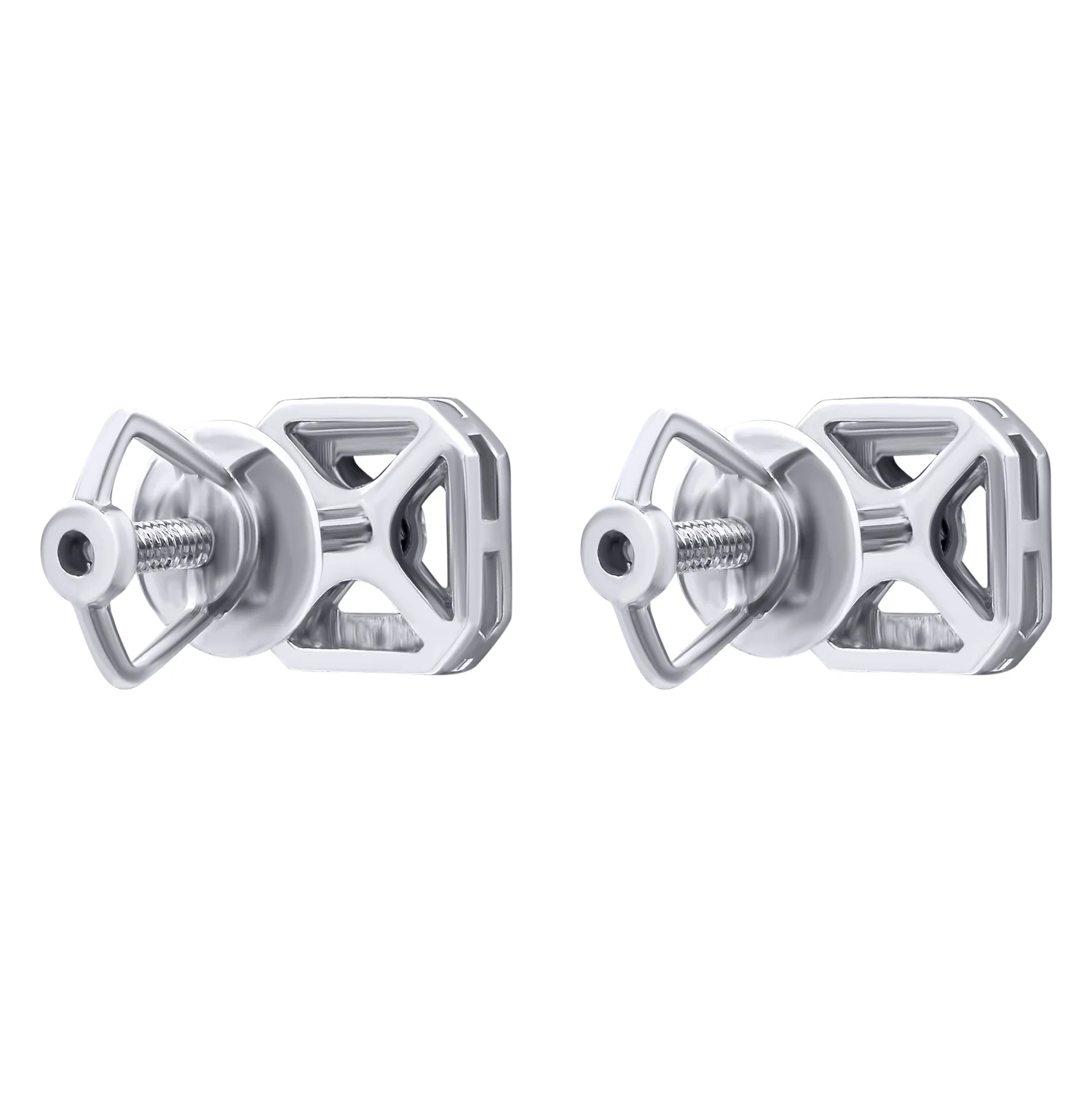 Сережки-гвоздики из белого золота с белыми и черными бриллиантами - 879814