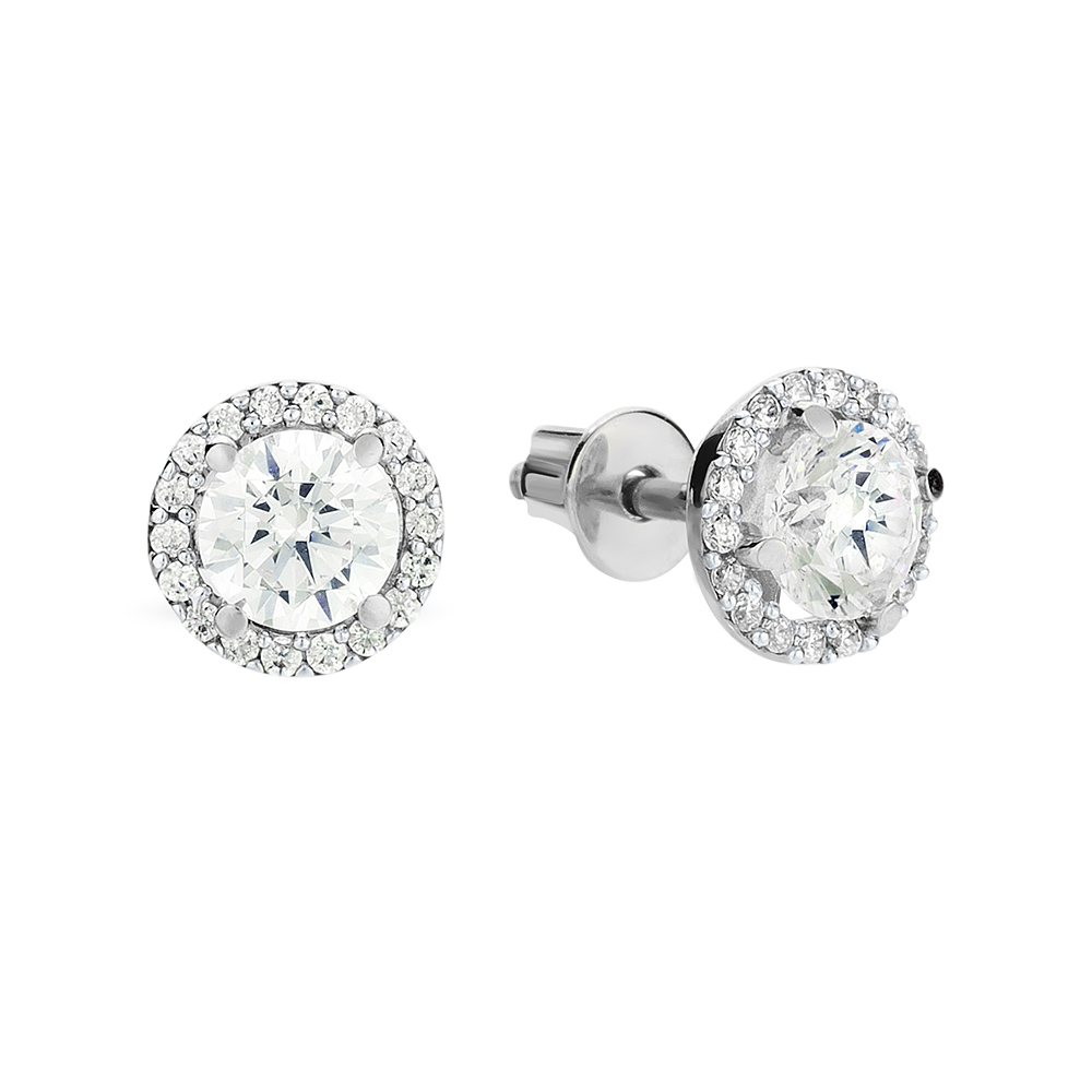 Серьги-гвоздики из белого золота с фианитами - 1504872