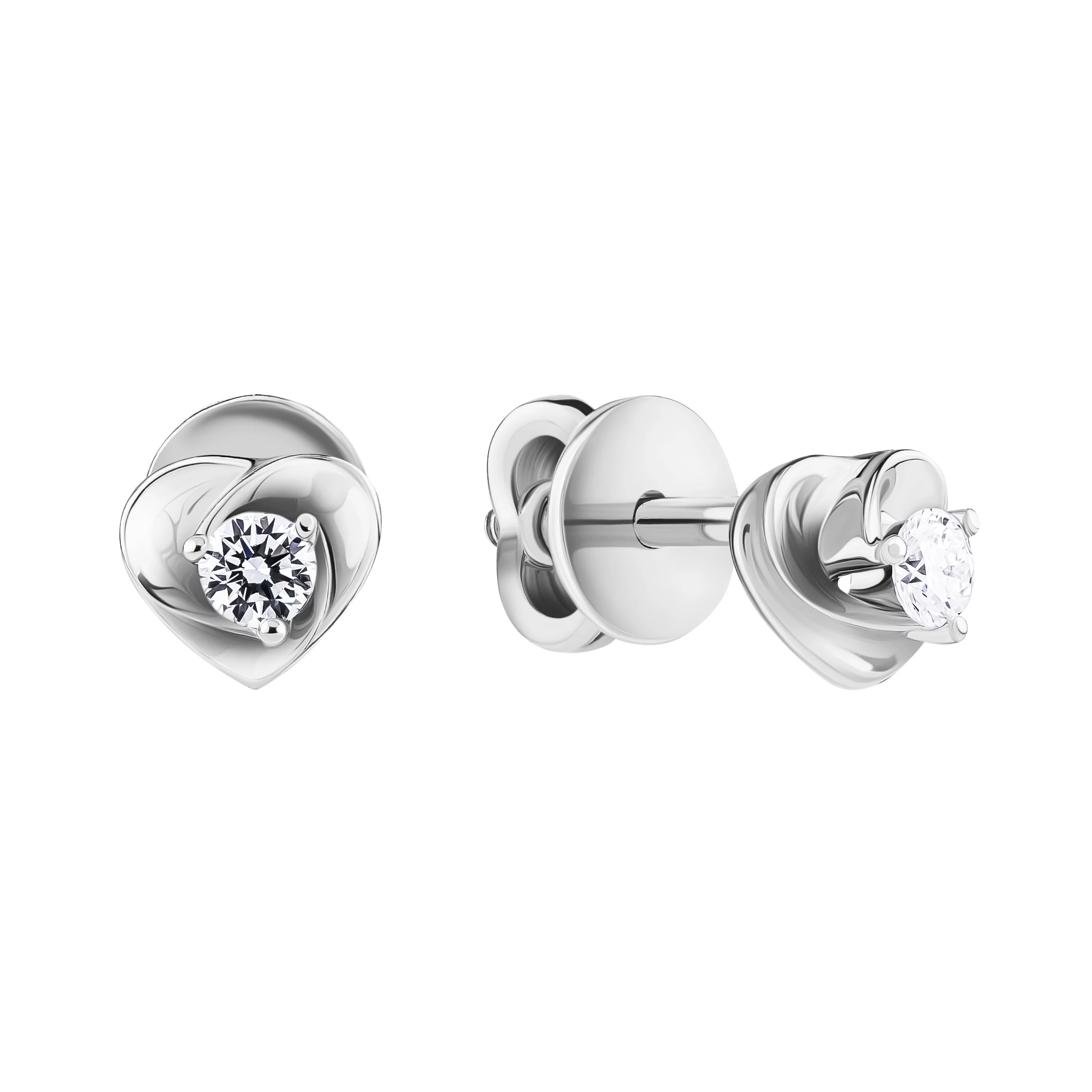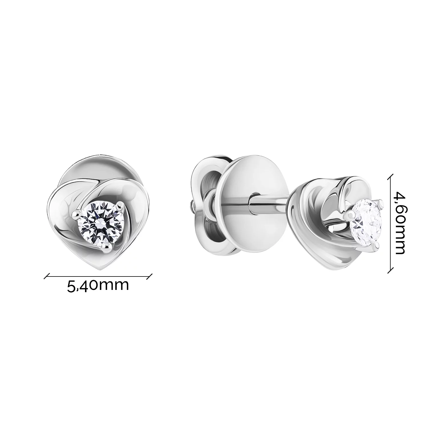 Серьги-гвоздики из белого золота "Сердечко" с бриллиантом - 1818609