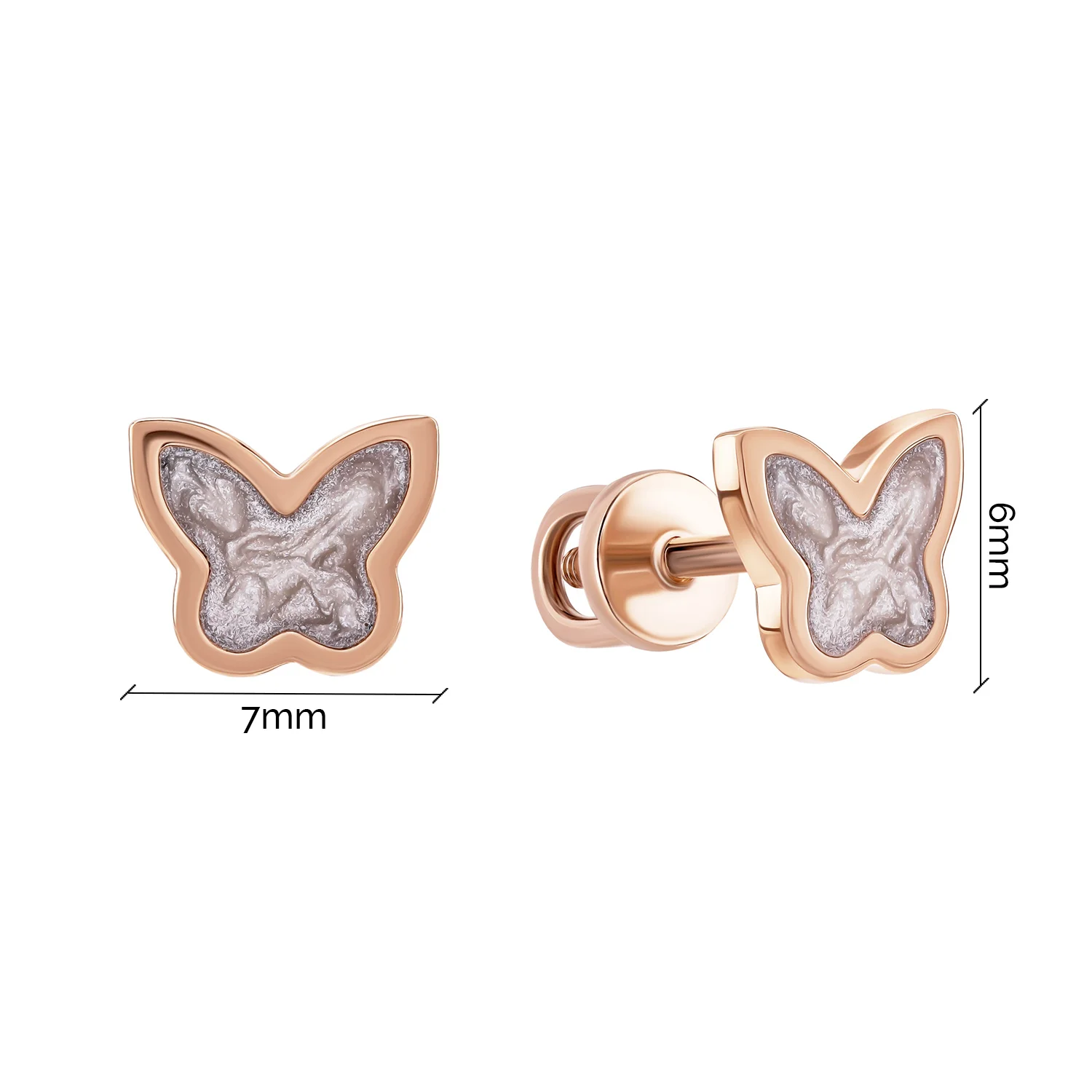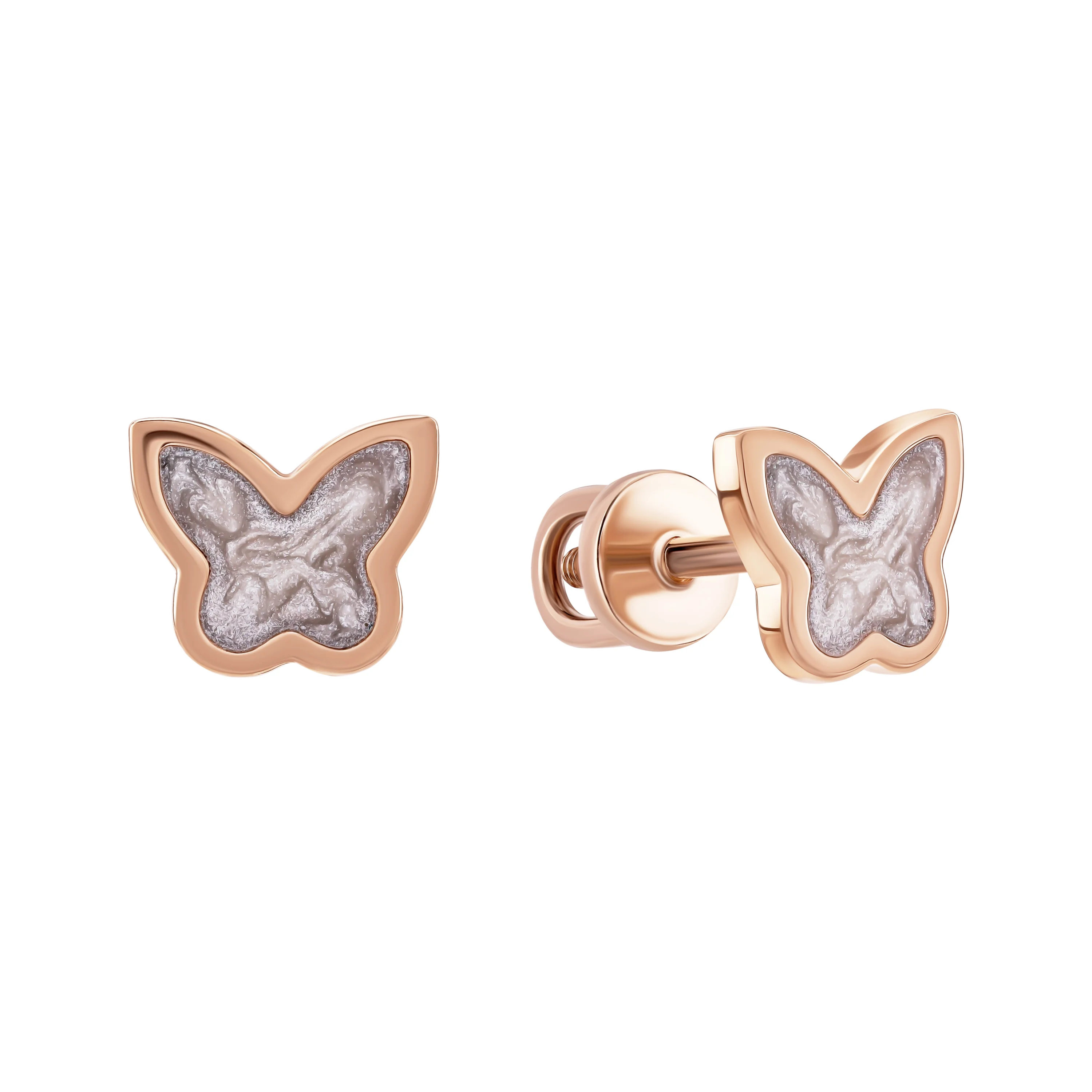 Серьги-гвоздики из красного золота "Бабочка" с эмалью - 1987413